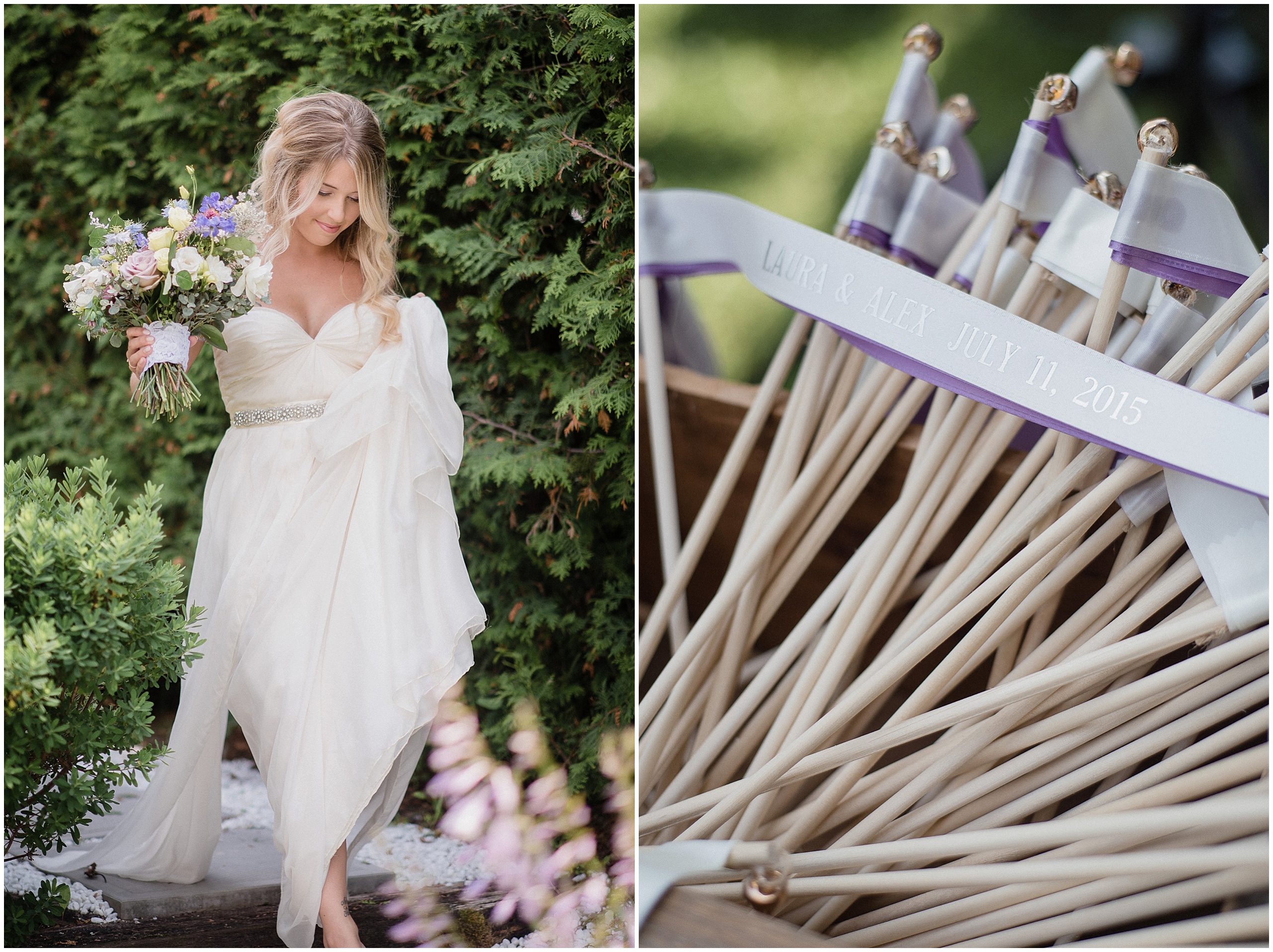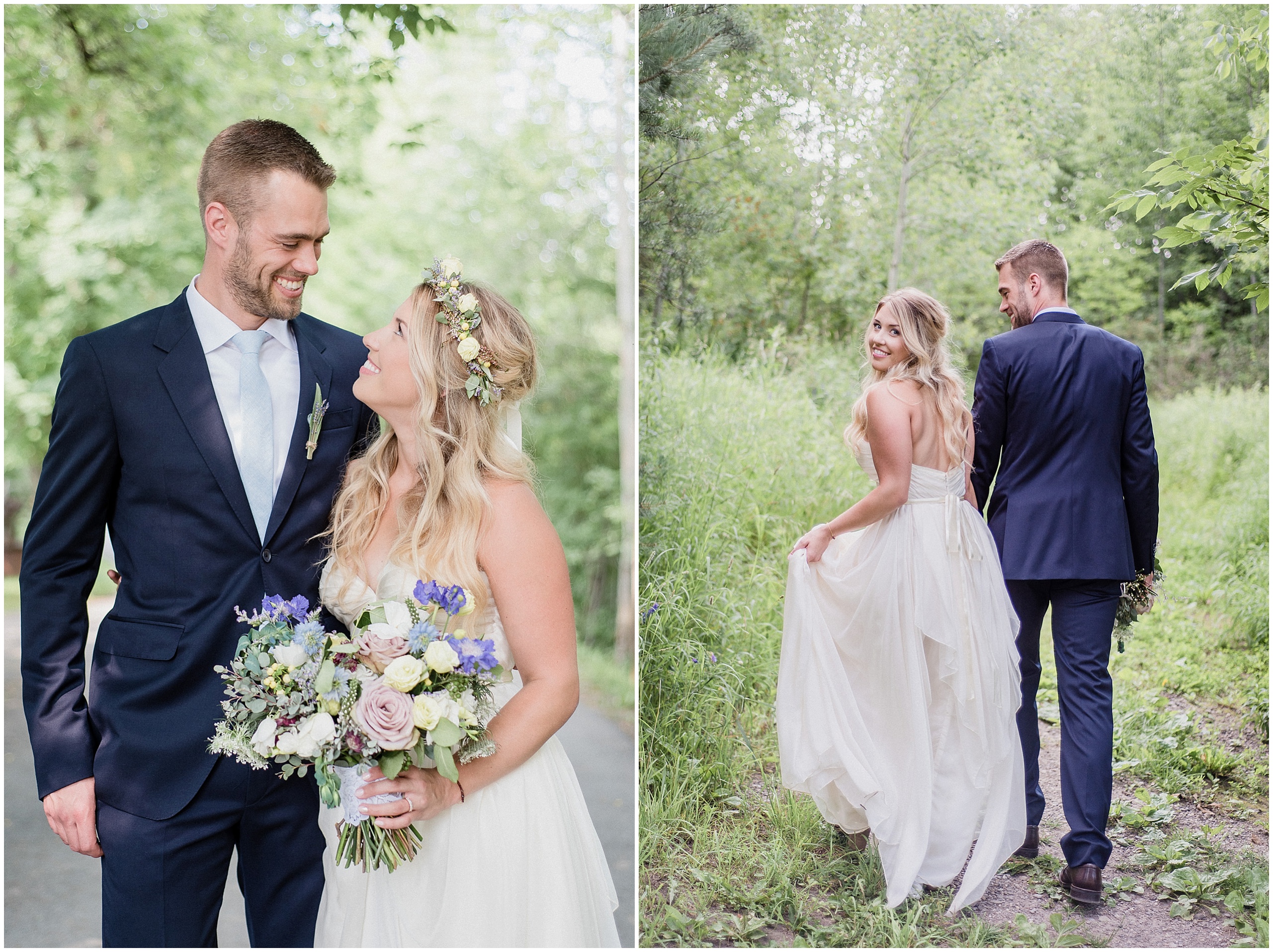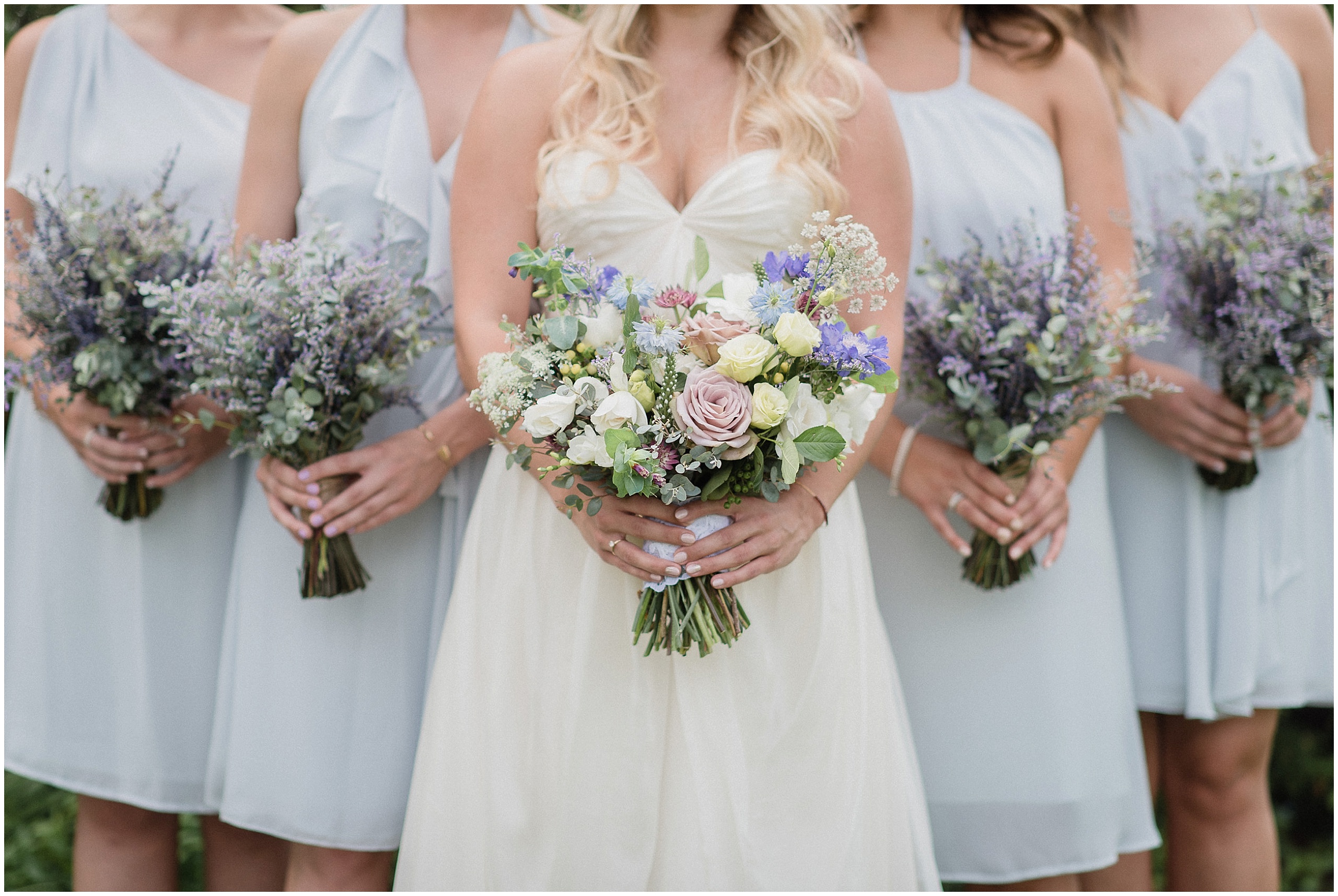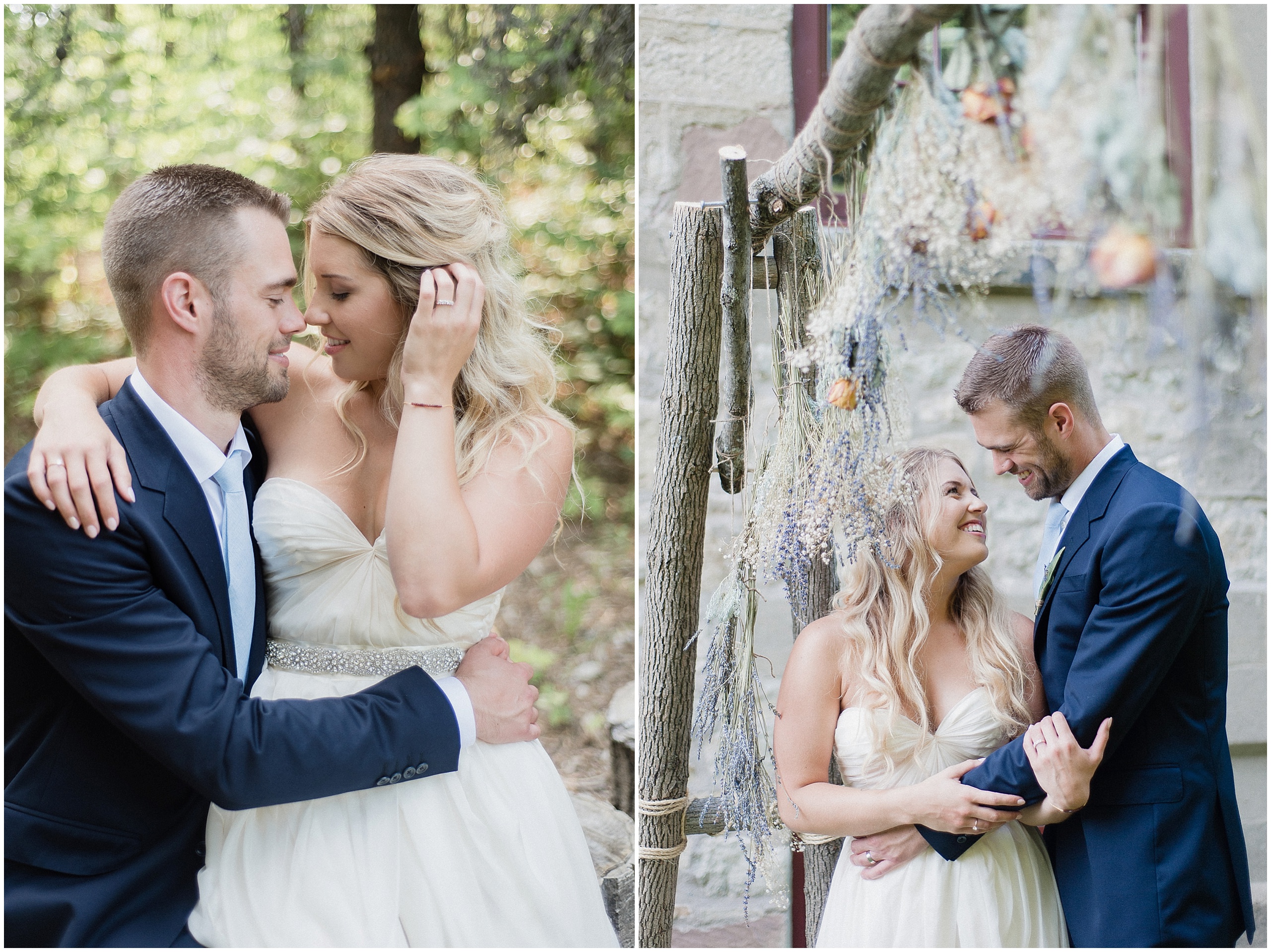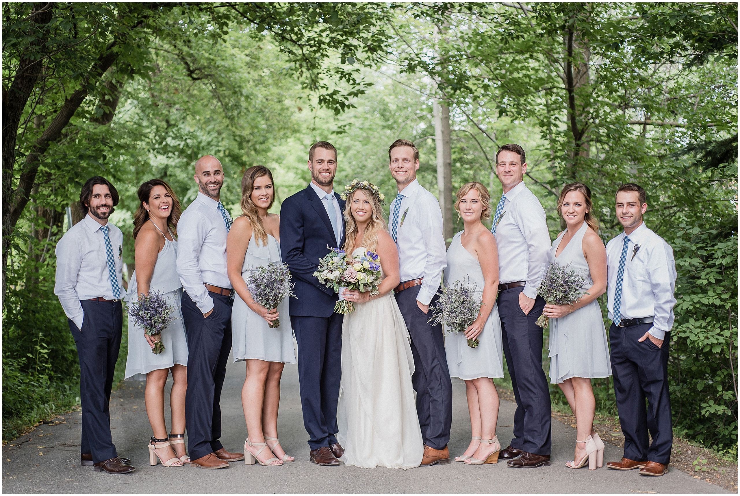 Laura and Alex hosted a stunning garden party Alton Mill wedding, and what a day it was! These two fell in love quickly, and haven’t looked back since. Their smiles are contagious and you could just feel how excited and happy all of their guests were to celebrate their big day. An outdoor ceremony beside a roaring waterfall, dinner in the old stone Annex, and s’mores by the fire- a casual approach to a special day and I loved every minute of it. A flower crown from Coriander Girl topped off Laura’s effortless bridal look, and hand gathered lavender bouquets for the maids were the perfect accompaniment to Laura’s wildflower bouquet!