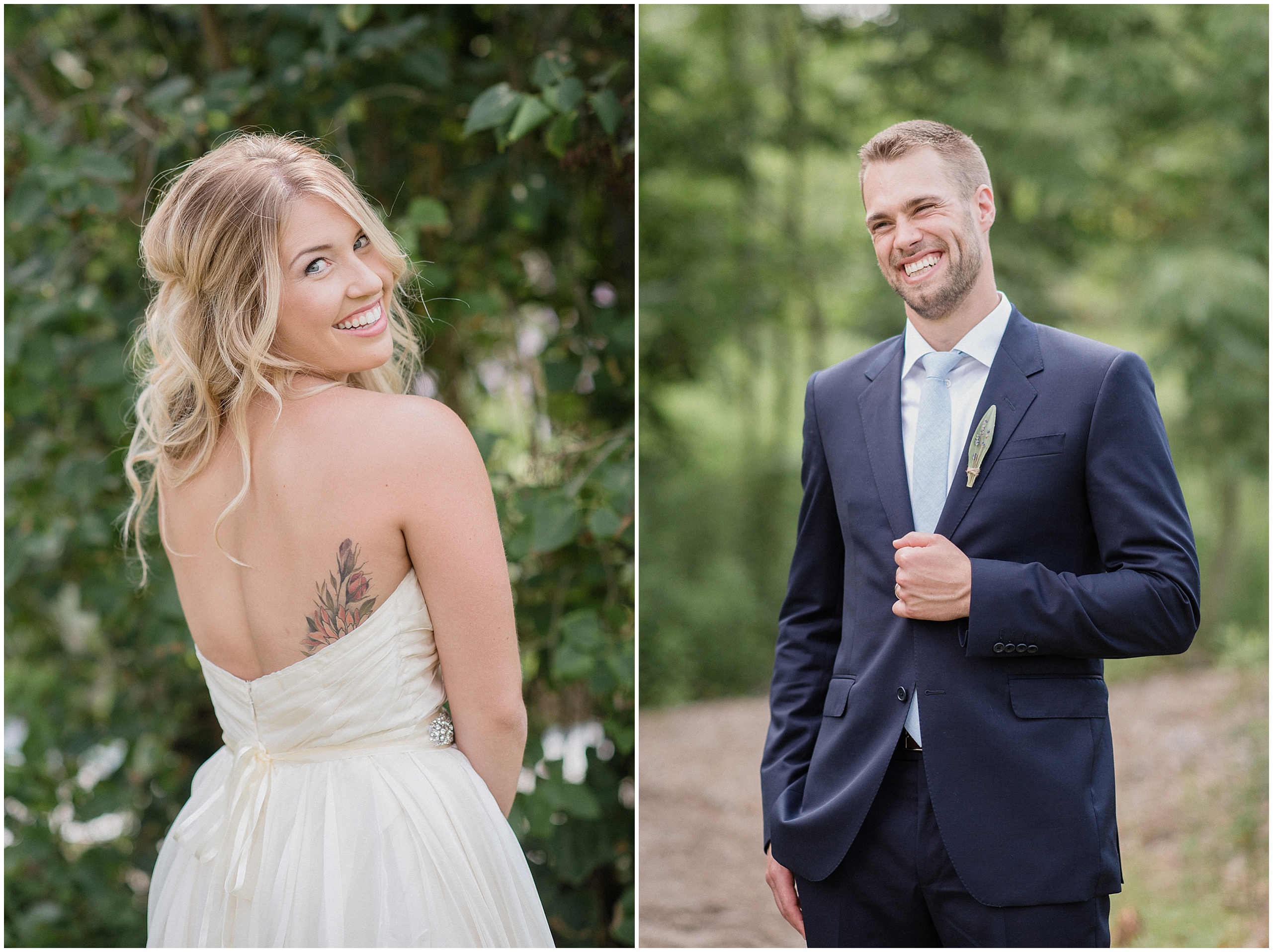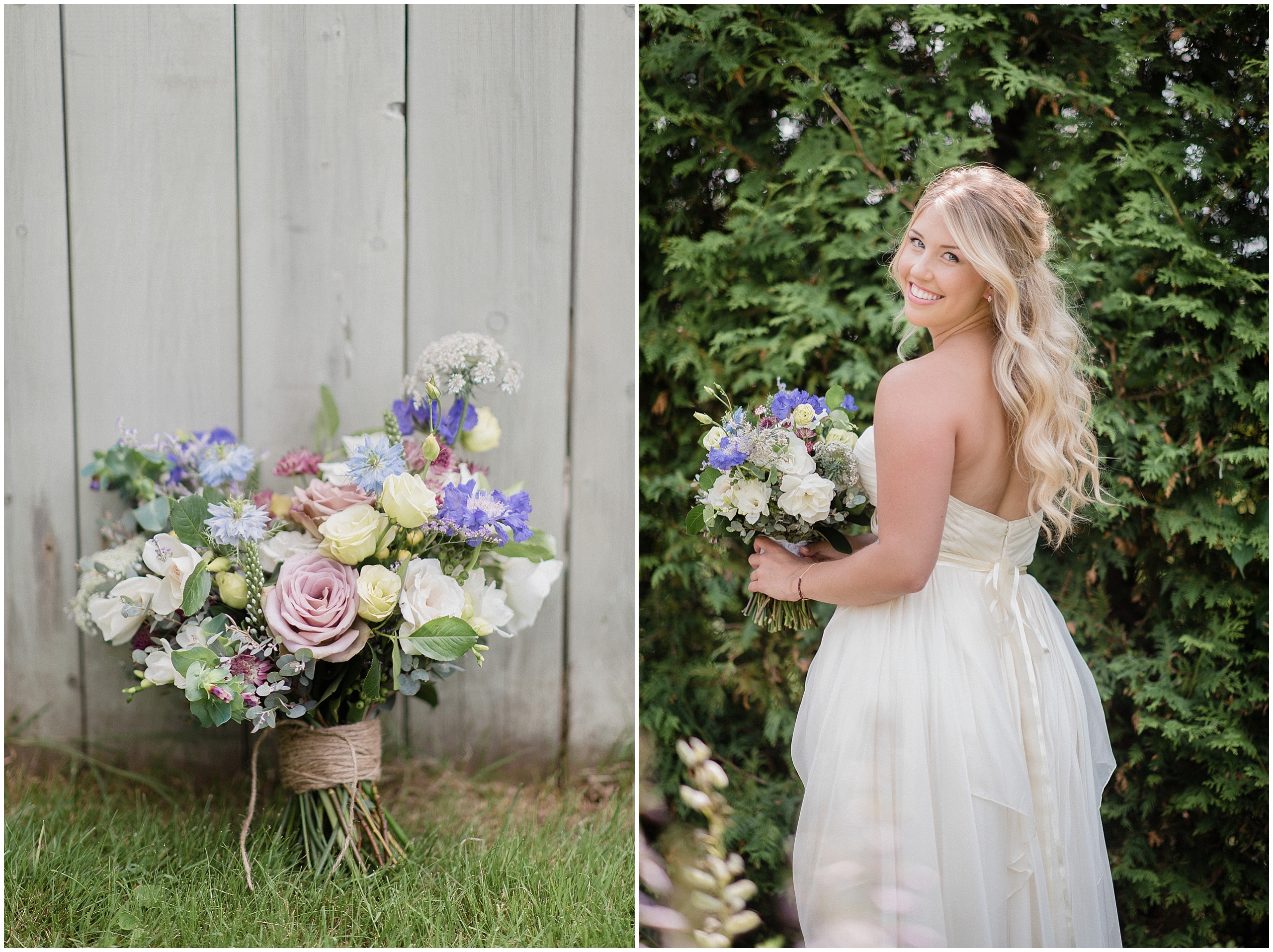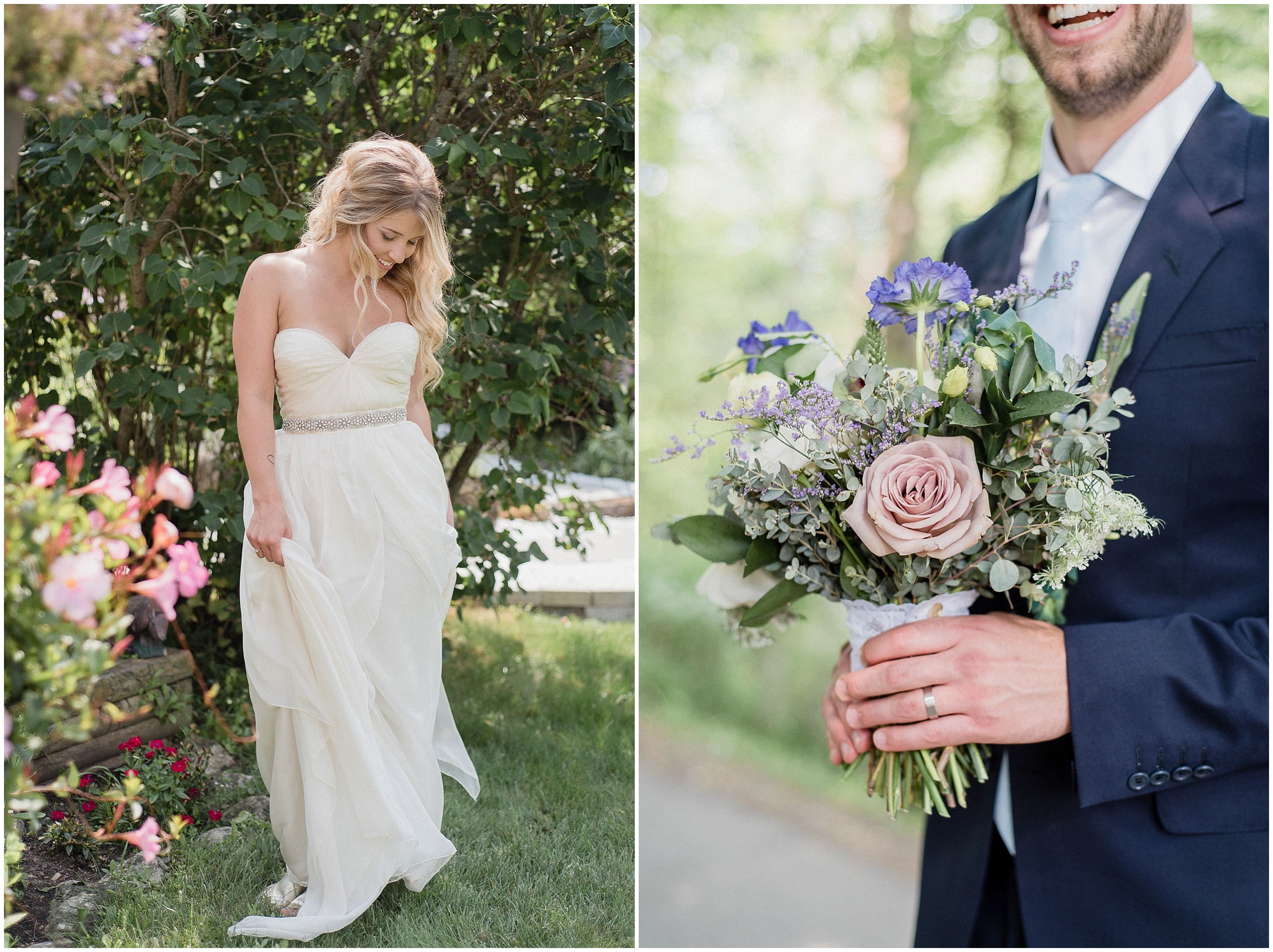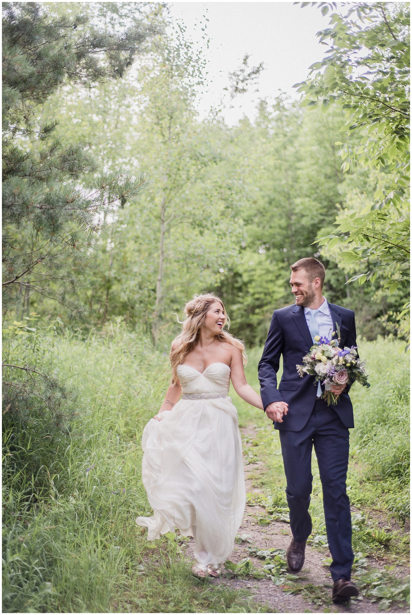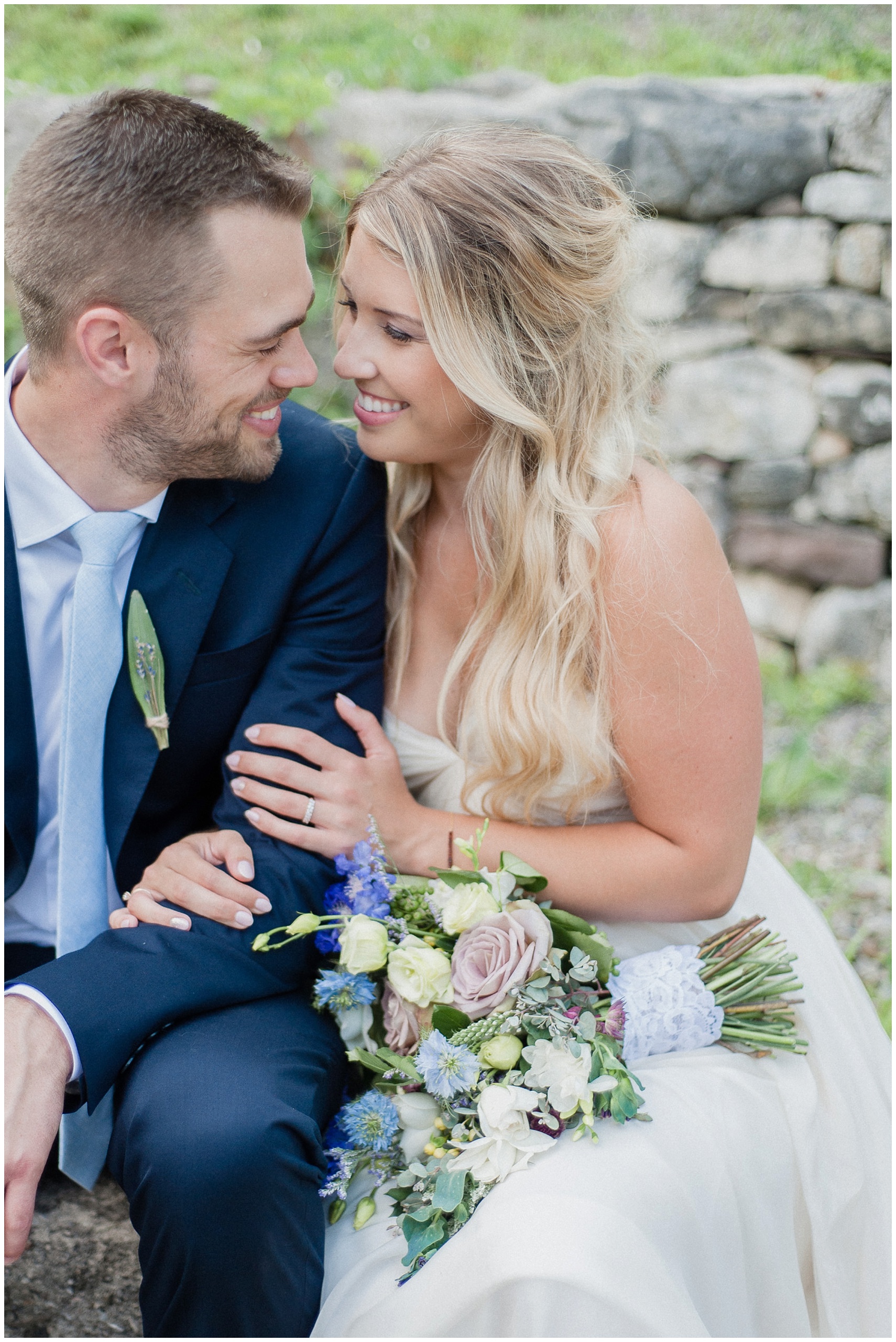 Laura and Alex hosted a stunning garden party Alton Mill wedding, and what a day it was! These two fell in love quickly, and haven’t looked back since. Their smiles are contagious and you could just feel how excited and happy all of their guests were to celebrate their big day. An outdoor ceremony beside a roaring waterfall, dinner in the old stone Annex, and s’mores by the fire- a casual approach to a special day and I loved every minute of it. A flower crown from Coriander Girl topped off Laura’s effortless bridal look, and hand gathered lavender bouquets for the maids were the perfect accompaniment to Laura’s wildflower bouquet!