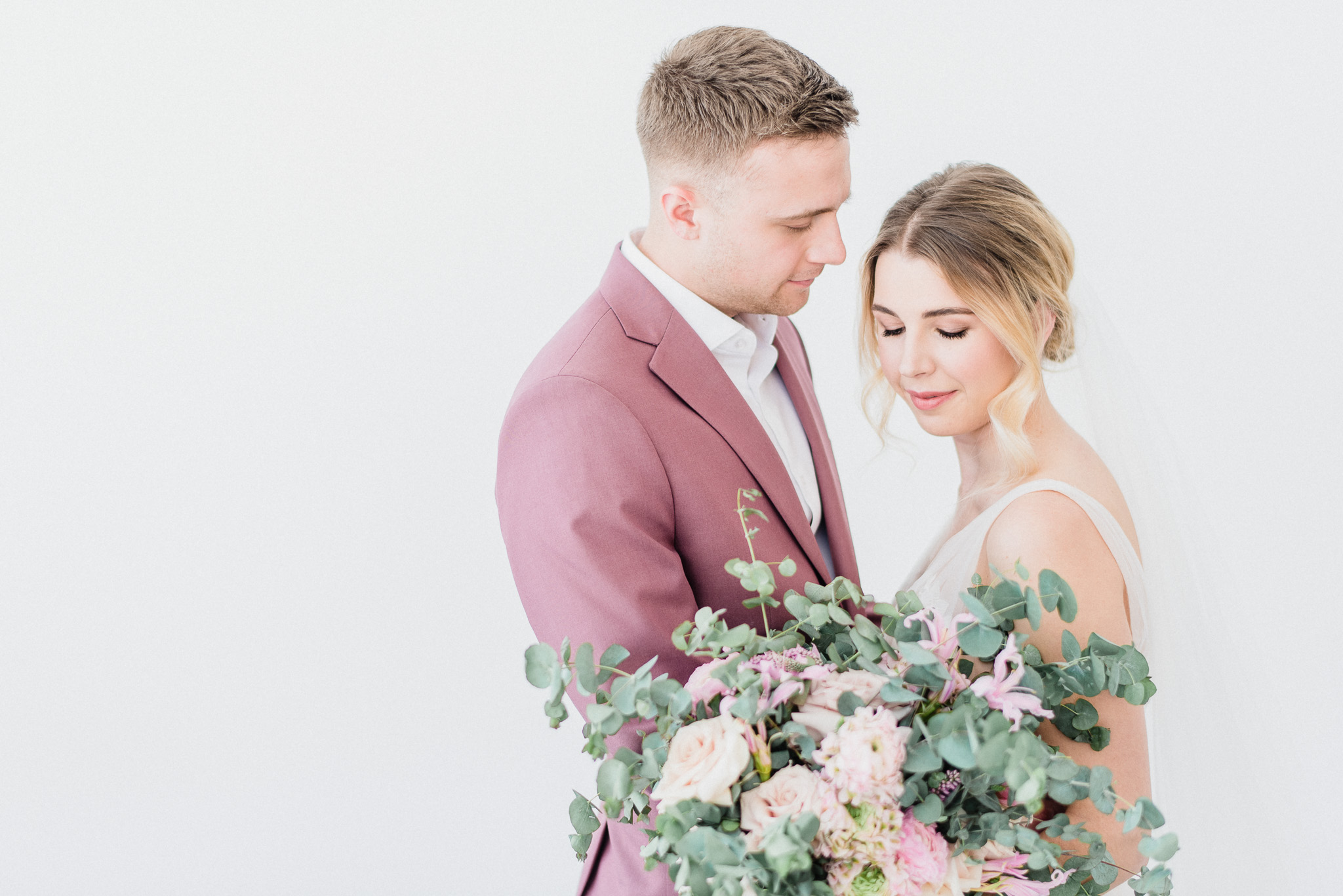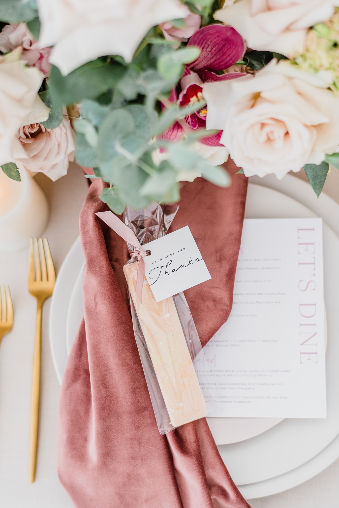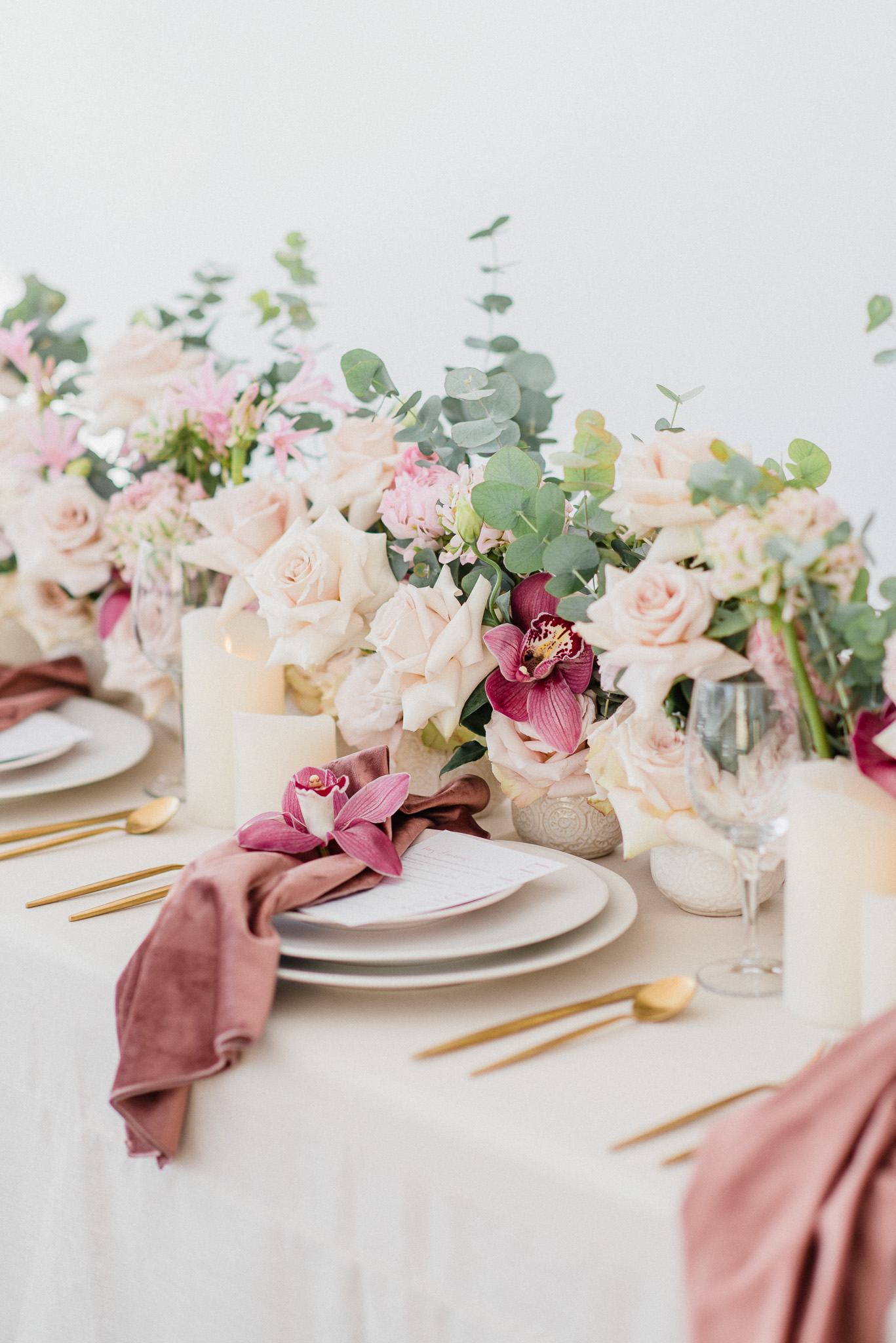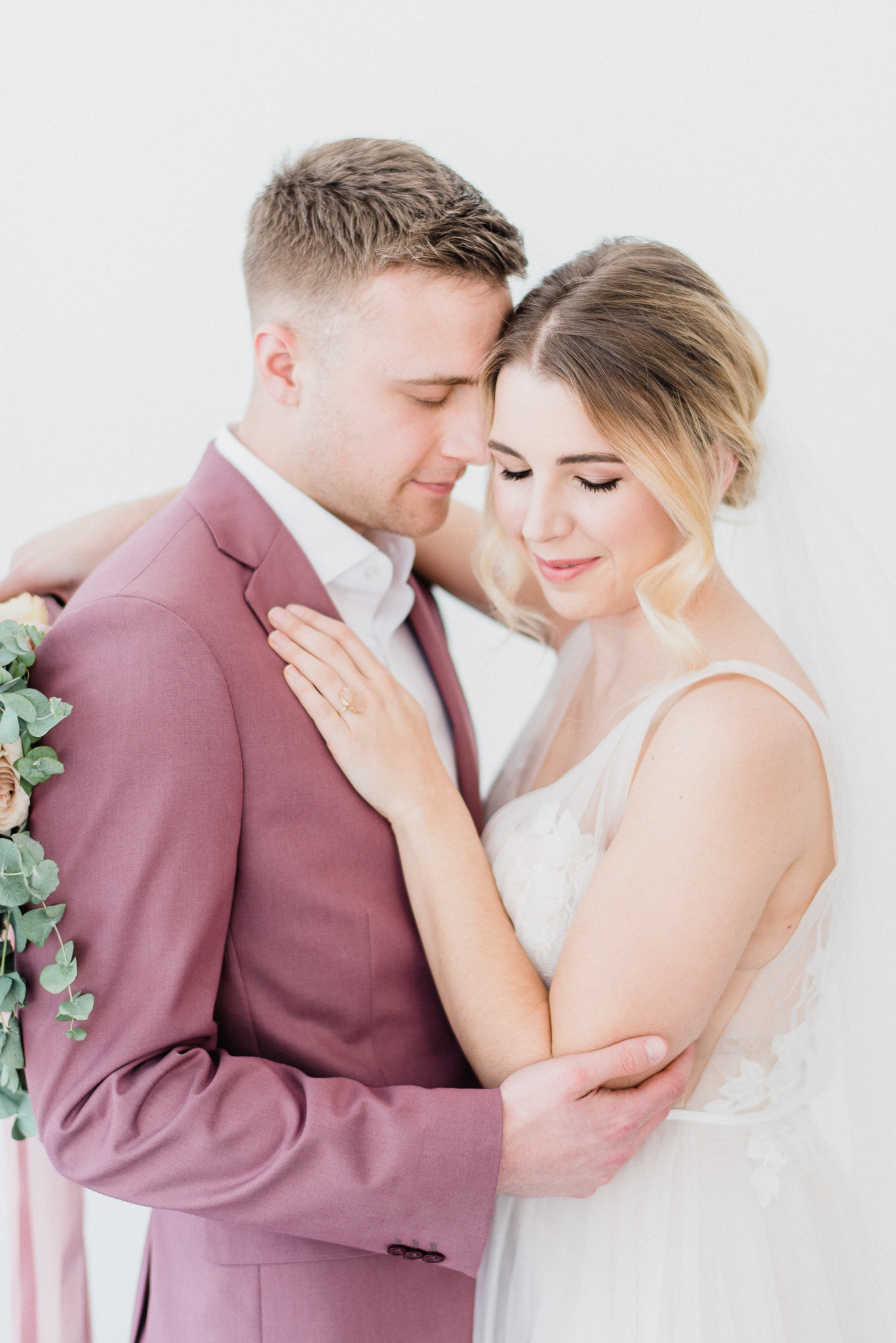 I’m so grateful that I was asked to be a part of this stunning Art Gallery of Hamilton wedding editorial, which is featured over on Weddingbells today! Creative photoshoots like this are so fun to be a part of. Sometimes ‘styled shoots’ get a bad rap, because they aren’t exactly a true representation of what weddings are like, which is true. We aren’t dealing with timeline crunches, rarely have to worry about the weather, and have full control of all lighting and setups. But the beauty in these is that they are meant to invoke inspiration for to-be-wed couples. This particular editorial highlights a new and exciting colour palette, with many layers of pinks and peaches, a bold suit colour choice for the groom (which I LOVE) and stunning tabletop ideas (I mean…velvet napkins?!)