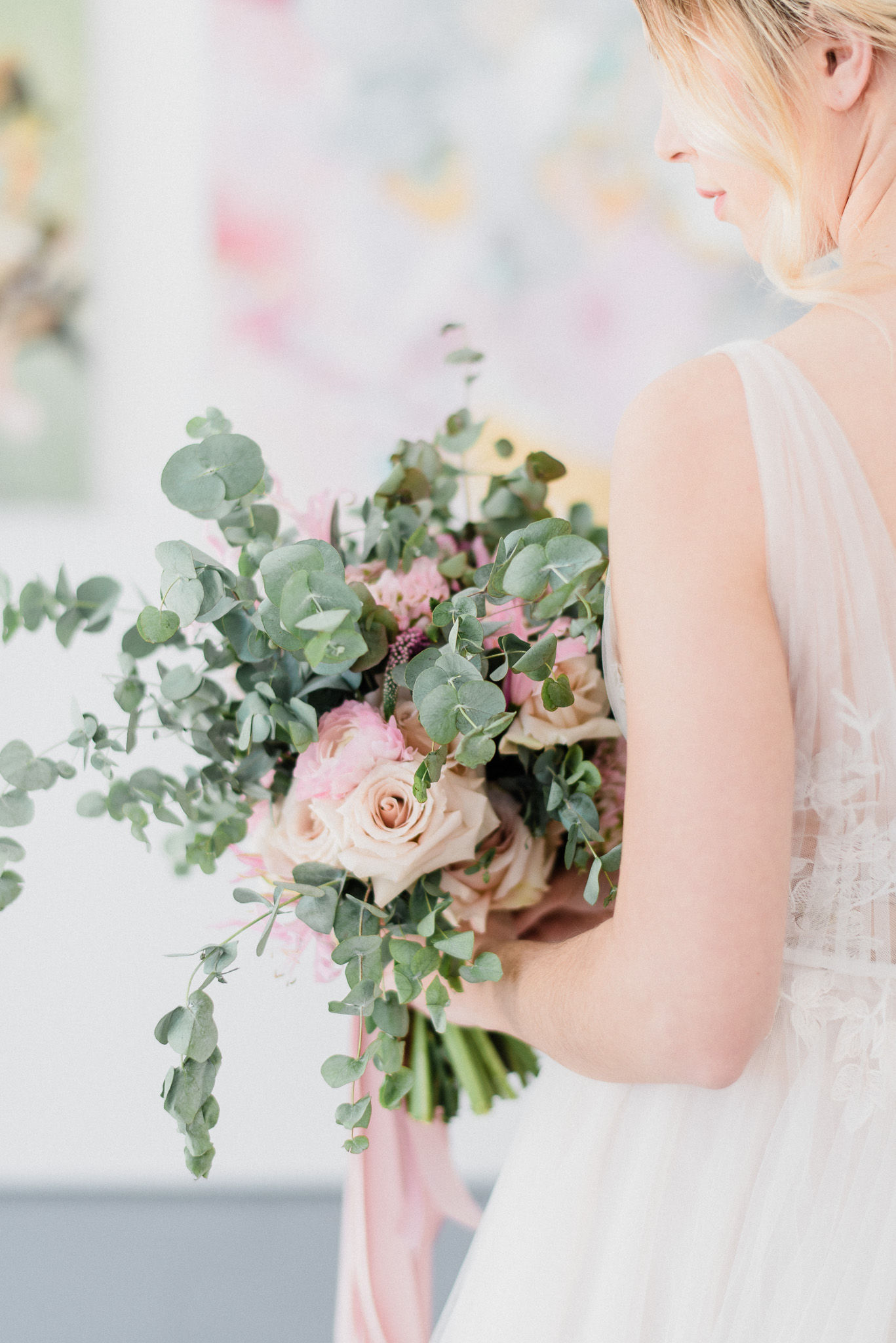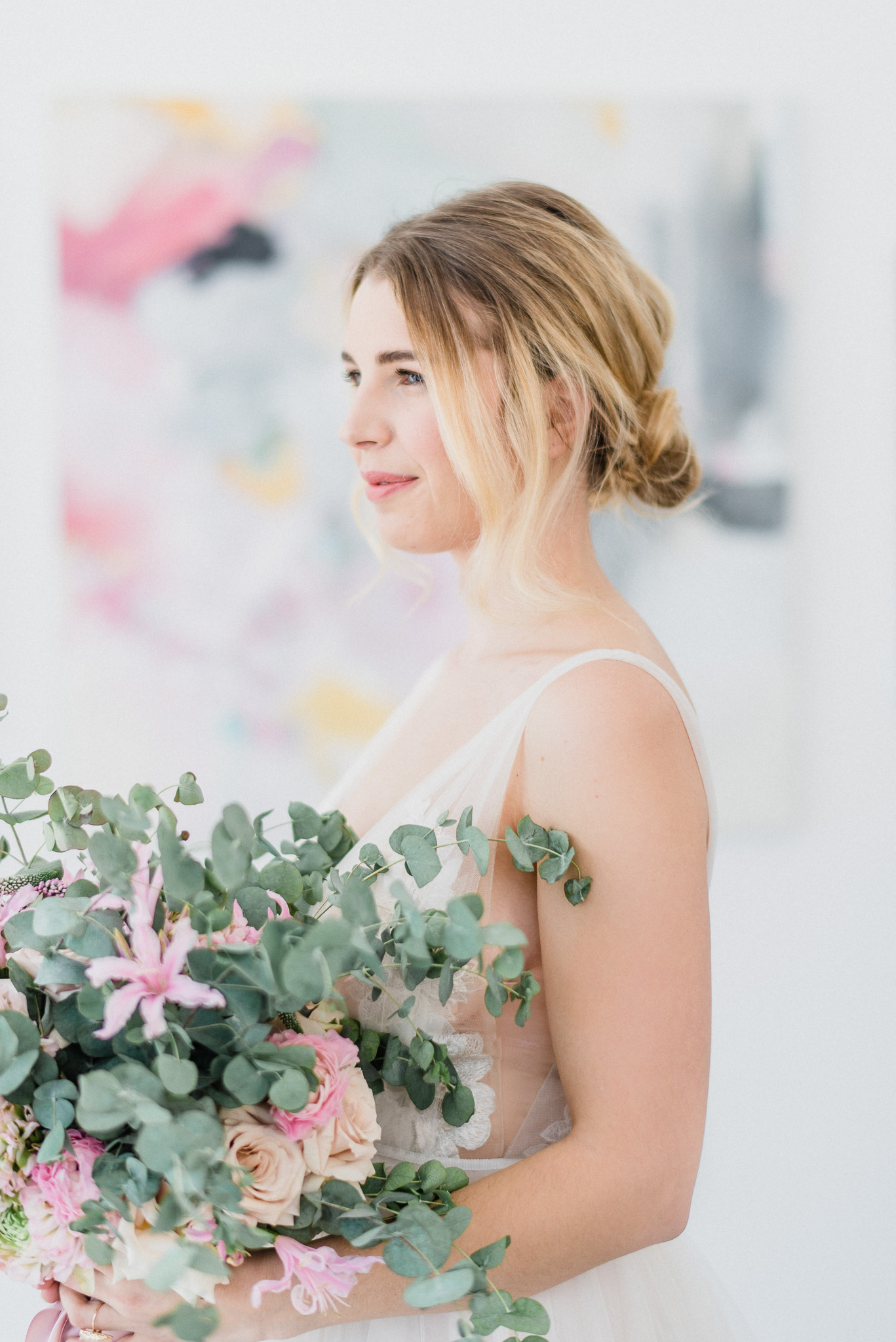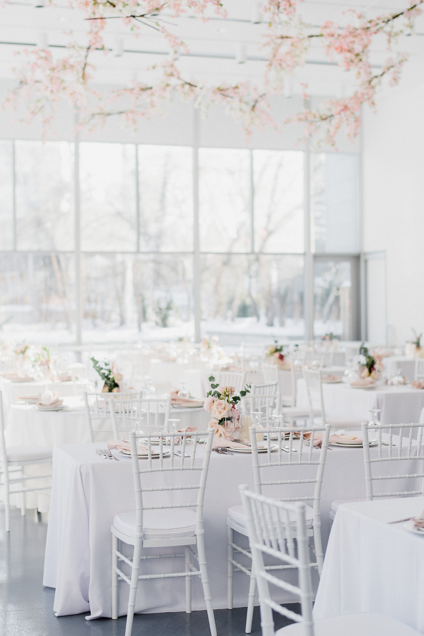 Venue: Art Gallery of Hamilton | Creative Direction, Florals & Styling: Sue Gallo Designs | Coordination & Styling: Vivian Lyttle Events | Stationery: Simply Sealed | Lounge Furniture: Warehouse 84 | Linens & | Tableware: Simply Beautiful Decor | Gown: Willow by Watters via Sash & Bustle | Veils & Accessories: Noon on the Moon | Bridal Shoes: Ted Baker | Suit: RW&CO. | Hair & Make-up: Bespoke Beauty | Cake & Treats: The Dessert Room | Artwork: Cathy Yantsis via Art Gallery of Hamilton Sales | Models: Magna Arnott & Terry Molinaro
