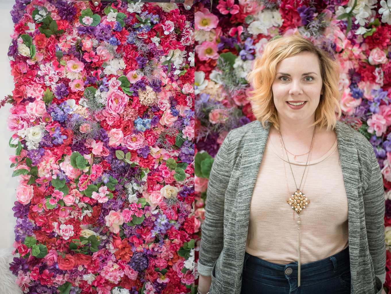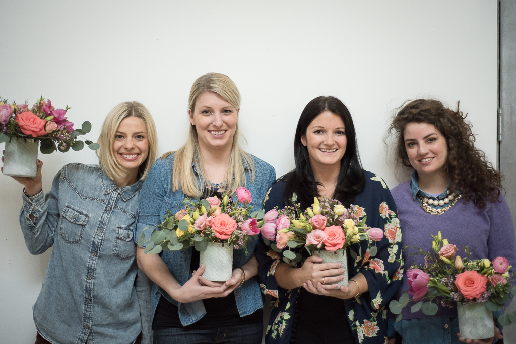 Today I had the pleasure of attending a Blush and Bloom floral workshop, which is a lively (and busy!) floral company with Becky De Oliveira at the helm of it all. Becky just took over the unit next to her original studio, so she now has plenty of place to play with and even some natural light. I’m pretty obsessed with her floral wall! We got to design our own pieces after a short (and very informative) intro from Becky, who made it look so easy (which it actually isn’t!)