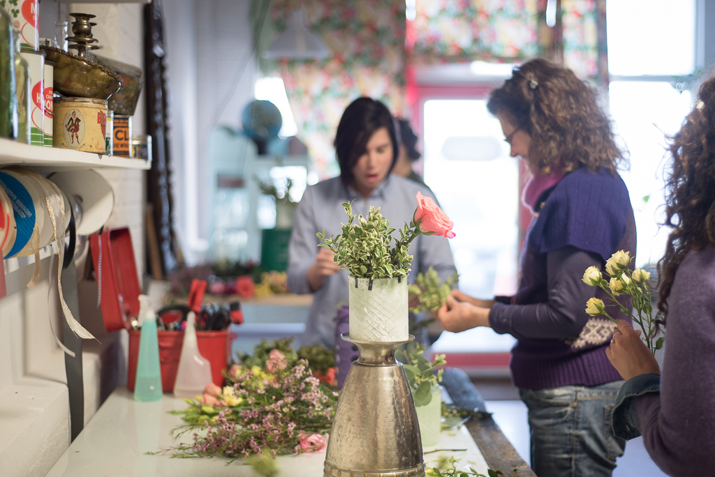 There were plenty of creative ladies on the scene though, who all made some amazing floral arrangements. Hattie, who designs custom jewellery, was definitely in the running for ‘should maybe switch careers to floral design.’ We were also joined by Blaire Nadeau, who has a very busy millinery business (brides, check her out for veils and headpieces!) One of my 2014 brides, Laura, also came along, with her sister -and they all brought their Moms! Becky, thank you for such a nice way to spend my Saturday and for such lovely florals to take home!