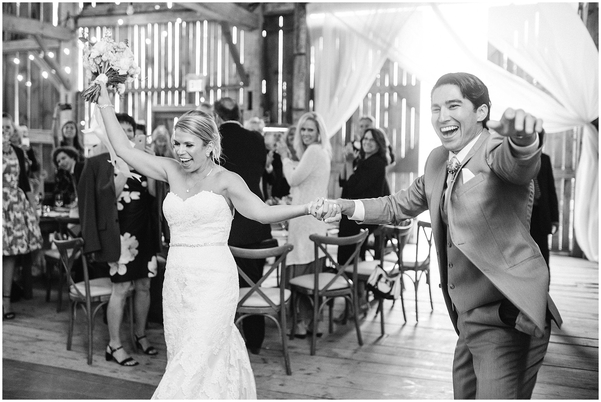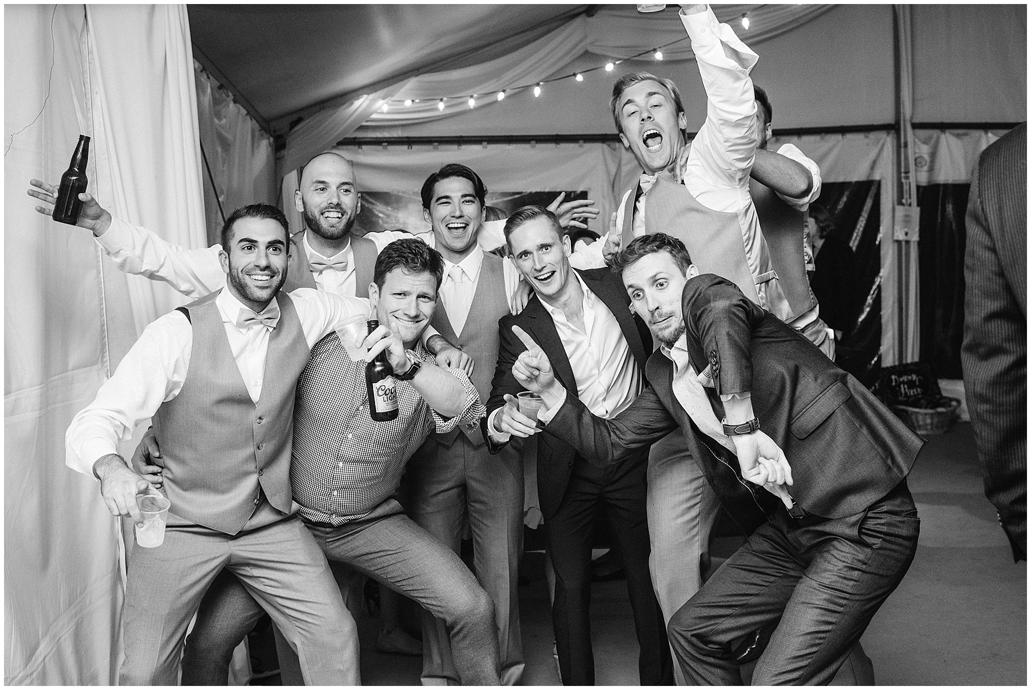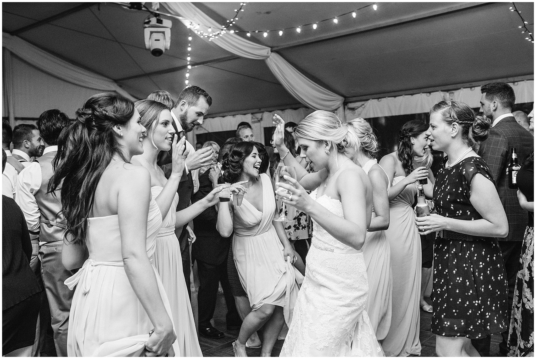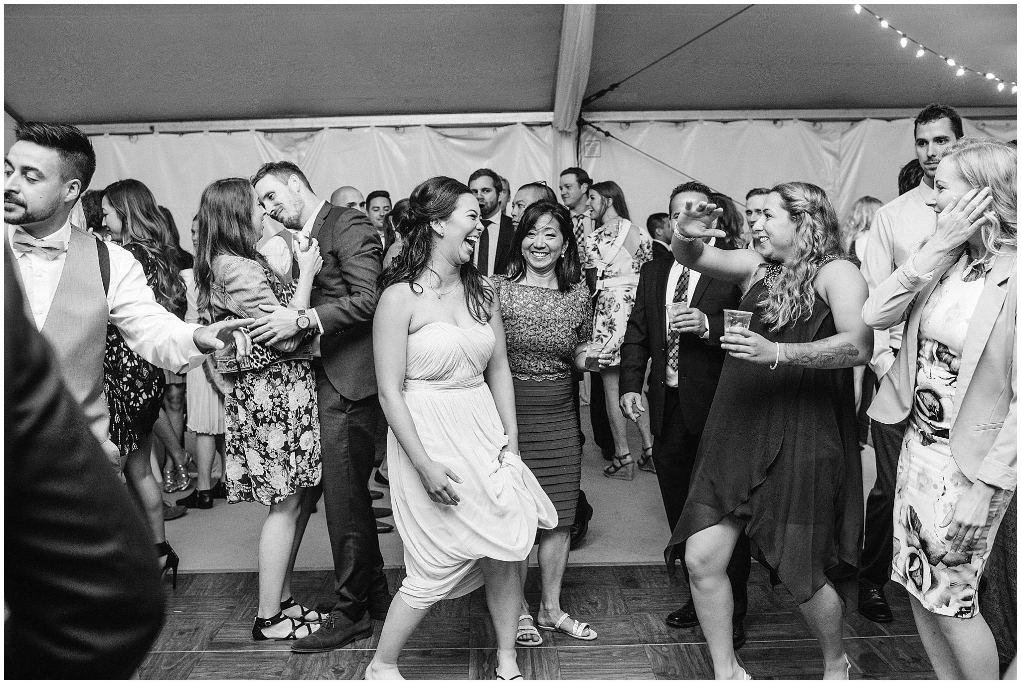 Jenna and Eric had an intimate First Look, and it worked out to be incredibly useful for our timeline. The weather on Canada Day was not exactly ideal (although I’m sure you can’t tell in the photos!) We battled off and on rain, plus some incredibly high winds, so when the sky grew dark just minutes from the ceremony start time, we knew we’d be totally fine to wait a few minutes until it cleared so we could have the outdoor ceremony they’d dreamed of, without having to worry about portrait time being delayed afterwards! Jenna and Eric then got to enjoy their entire cocktail hour with their guests! After dinner in the barn, the party really got started in the tent and I felt like I had to include some of these hilarious dance floor shots!