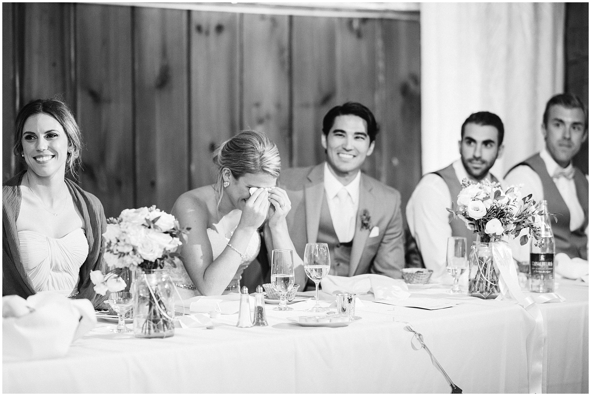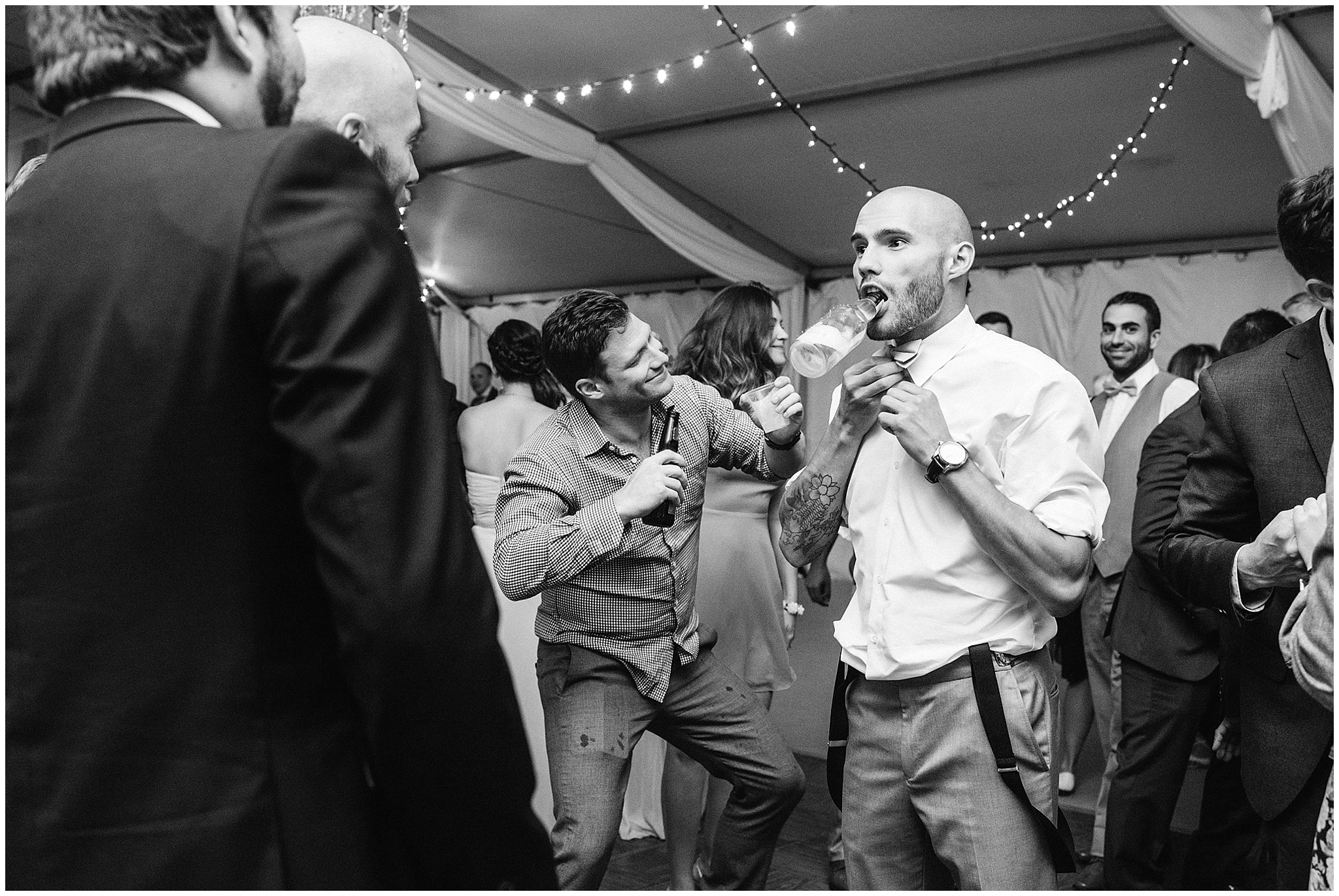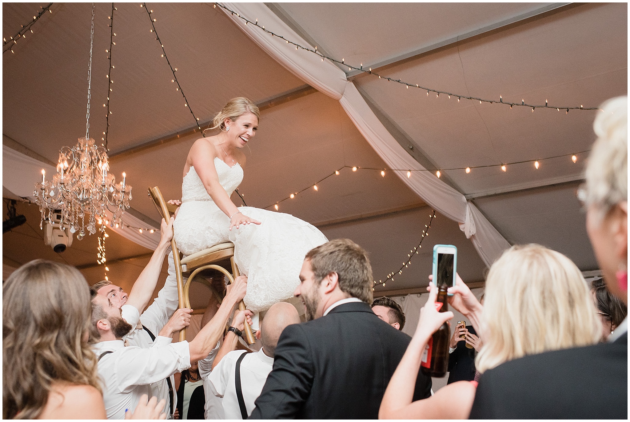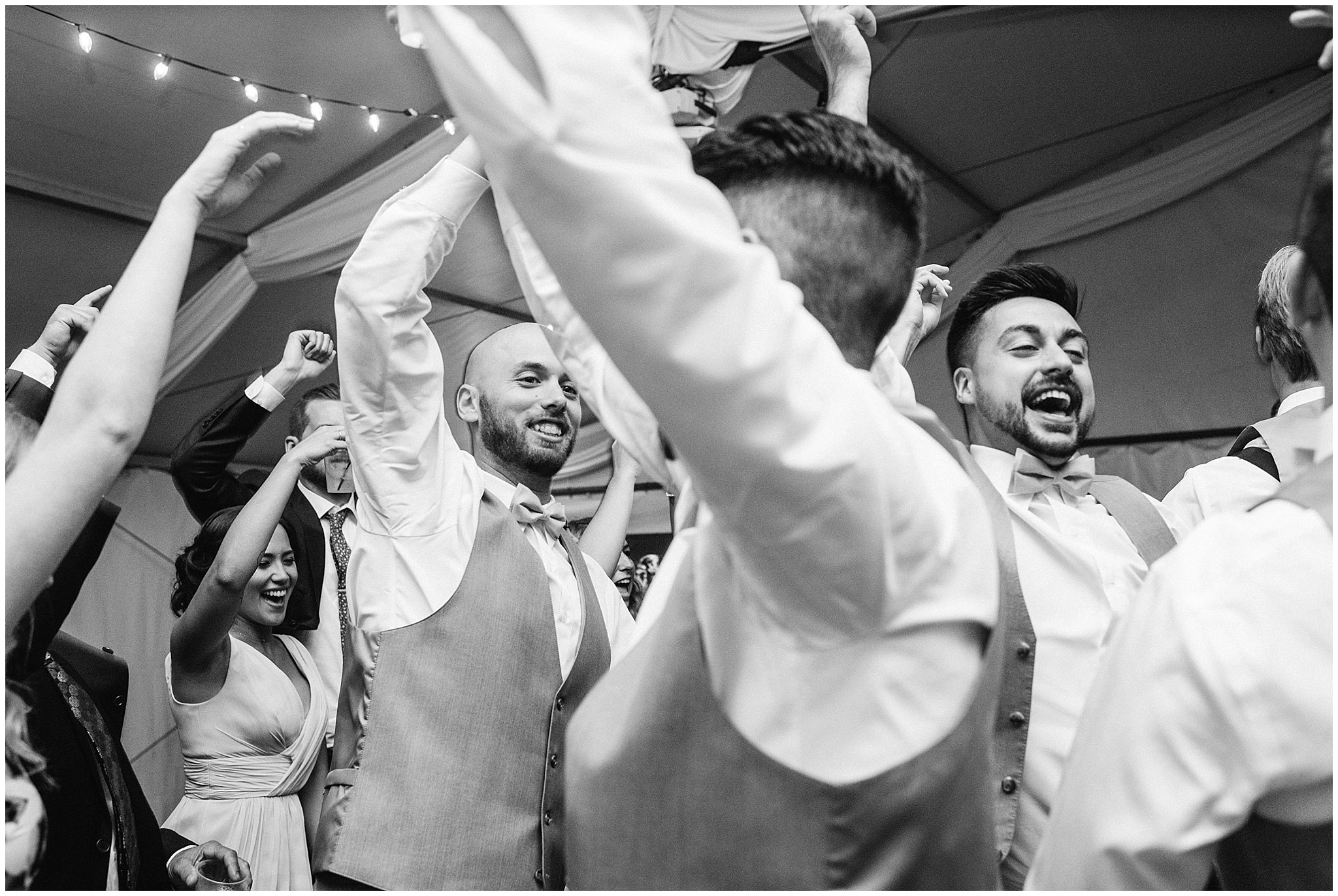 Jenna and Eric had an intimate First Look, and it worked out to be incredibly useful for our timeline. The weather on Canada Day was not exactly ideal (although I’m sure you can’t tell in the photos!) We battled off and on rain, plus some incredibly high winds, so when the sky grew dark just minutes from the ceremony start time, we knew we’d be totally fine to wait a few minutes until it cleared so we could have the outdoor ceremony they’d dreamed of, without having to worry about portrait time being delayed afterwards! Jenna and Eric then got to enjoy their entire cocktail hour with their guests! After dinner in the barn, the party really got started in the tent and I felt like I had to include some of these hilarious dance floor shots!