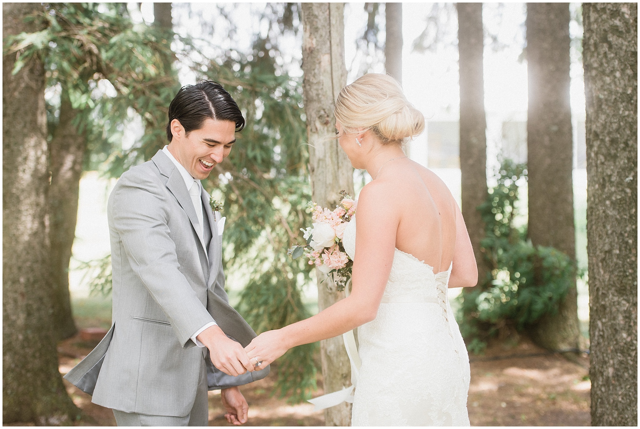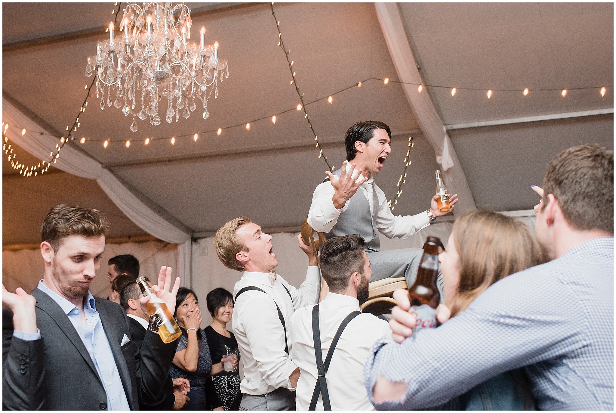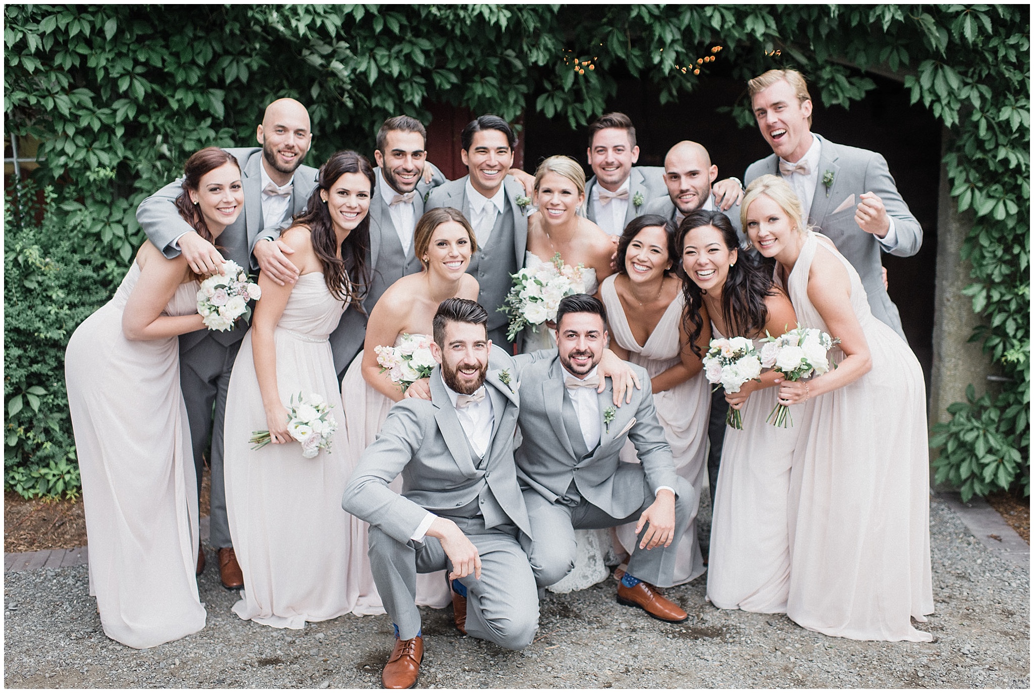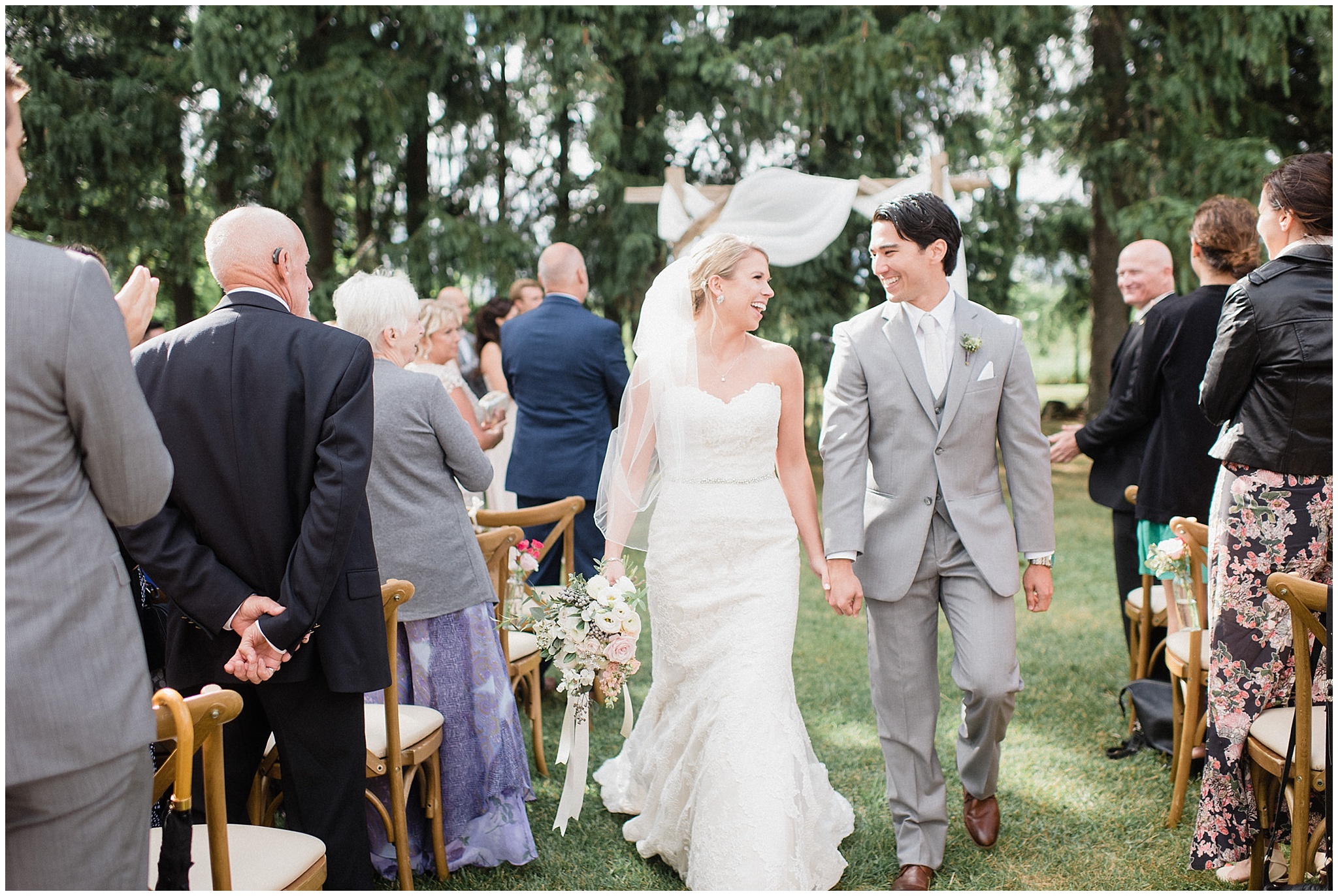 Jenna and Eric had an intimate First Look, and it worked out to be incredibly useful for our timeline. The weather on Canada Day was not exactly ideal (although I’m sure you can’t tell in the photos!) We battled off and on rain, plus some incredibly high winds, so when the sky grew dark just minutes from the ceremony start time, we knew we’d be totally fine to wait a few minutes until it cleared so we could have the outdoor ceremony they’d dreamed of, without having to worry about portrait time being delayed afterwards! Jenna and Eric then got to enjoy their entire cocktail hour with their guests! After dinner in the barn, the party really got started in the tent and I felt like I had to include some of these hilarious dance floor shots!
