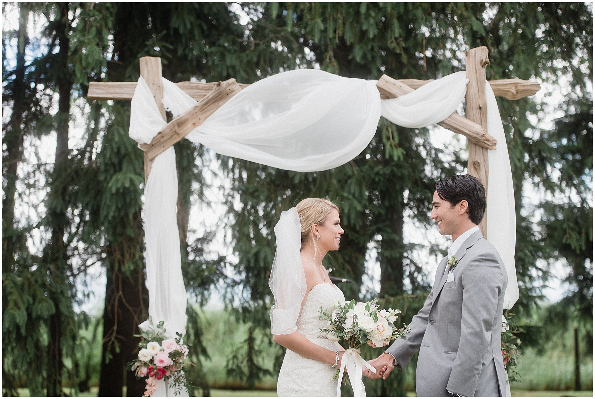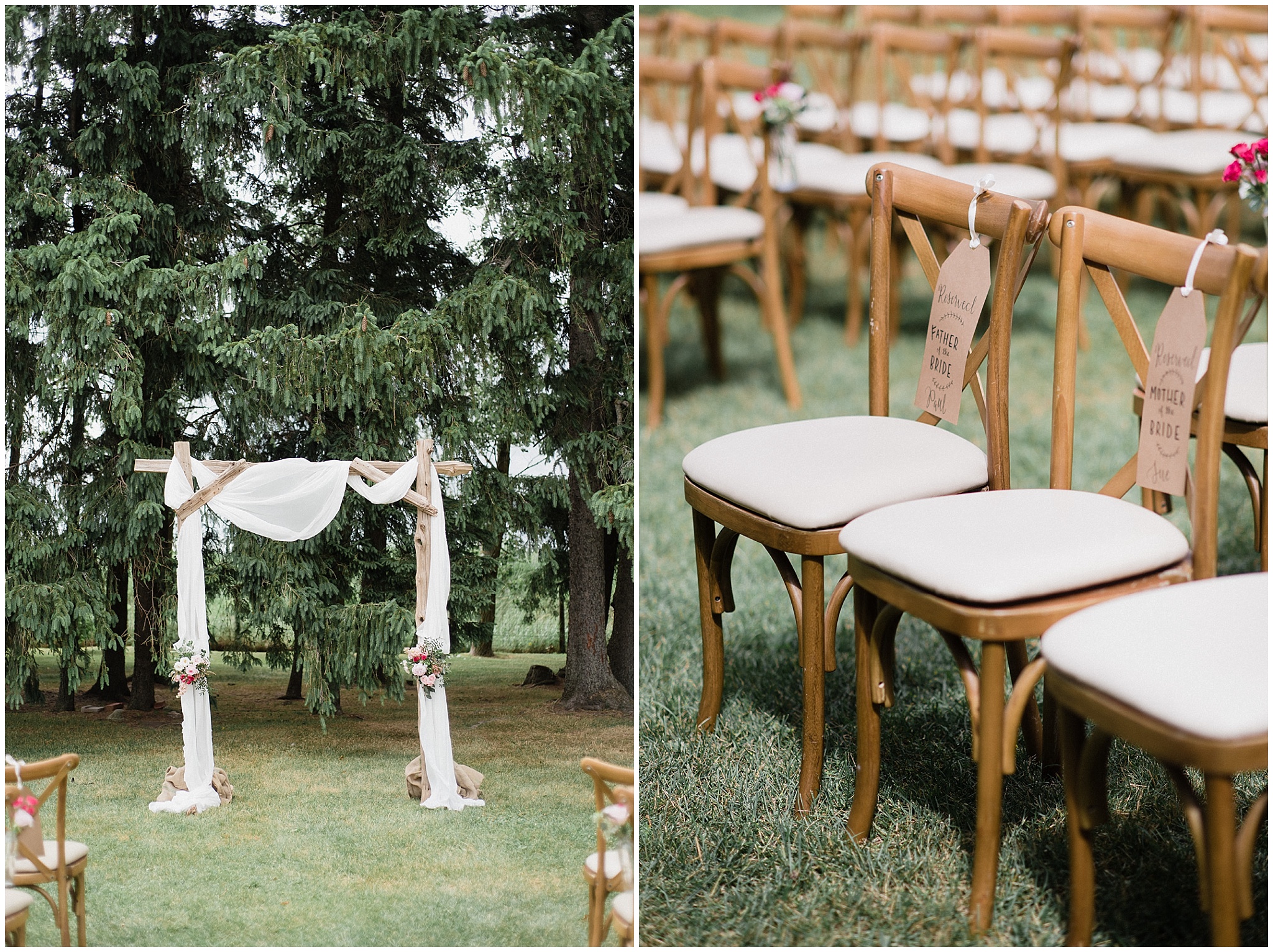 Jenna and Eric’s Cambium Farms wedding on Canada Day was a day that was near and dear to my heart- I have known these two for quite a few years now, and was so happy to be the one they chose to document their stunning day. I have to start off by giving Jenna some huge props- this girl taught herself how to do beautiful calligraphy and signage, and then successfully tackled taking care of her own name cards, welcome signs, reserved seat signs, etc etc! There were so many special details that were thought of, so it was so fun to capture them all. They even had personalized beer cans as a take home gift (with our engagement photos on them!) I’m just sad I forgot to grab one as a souvenir!