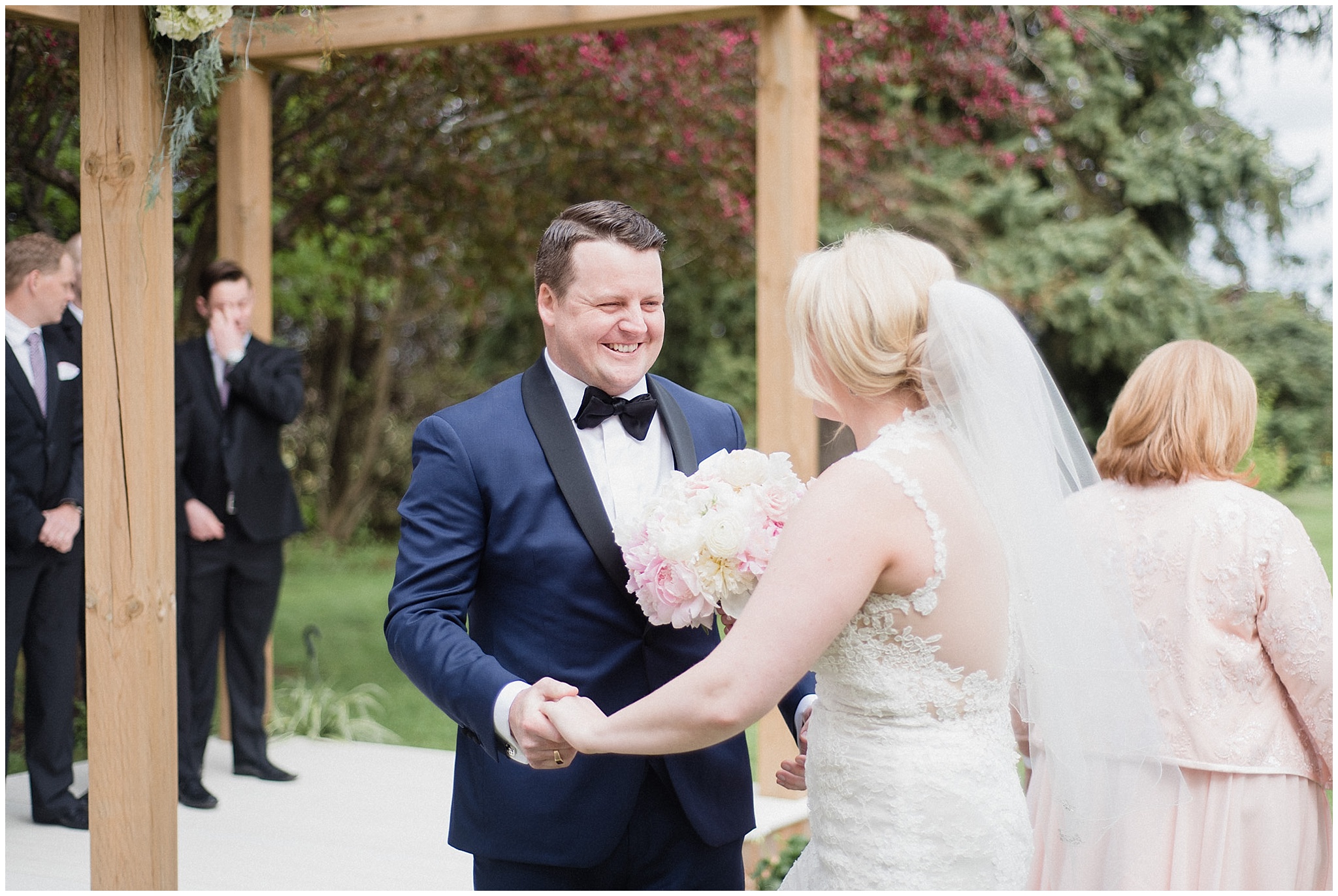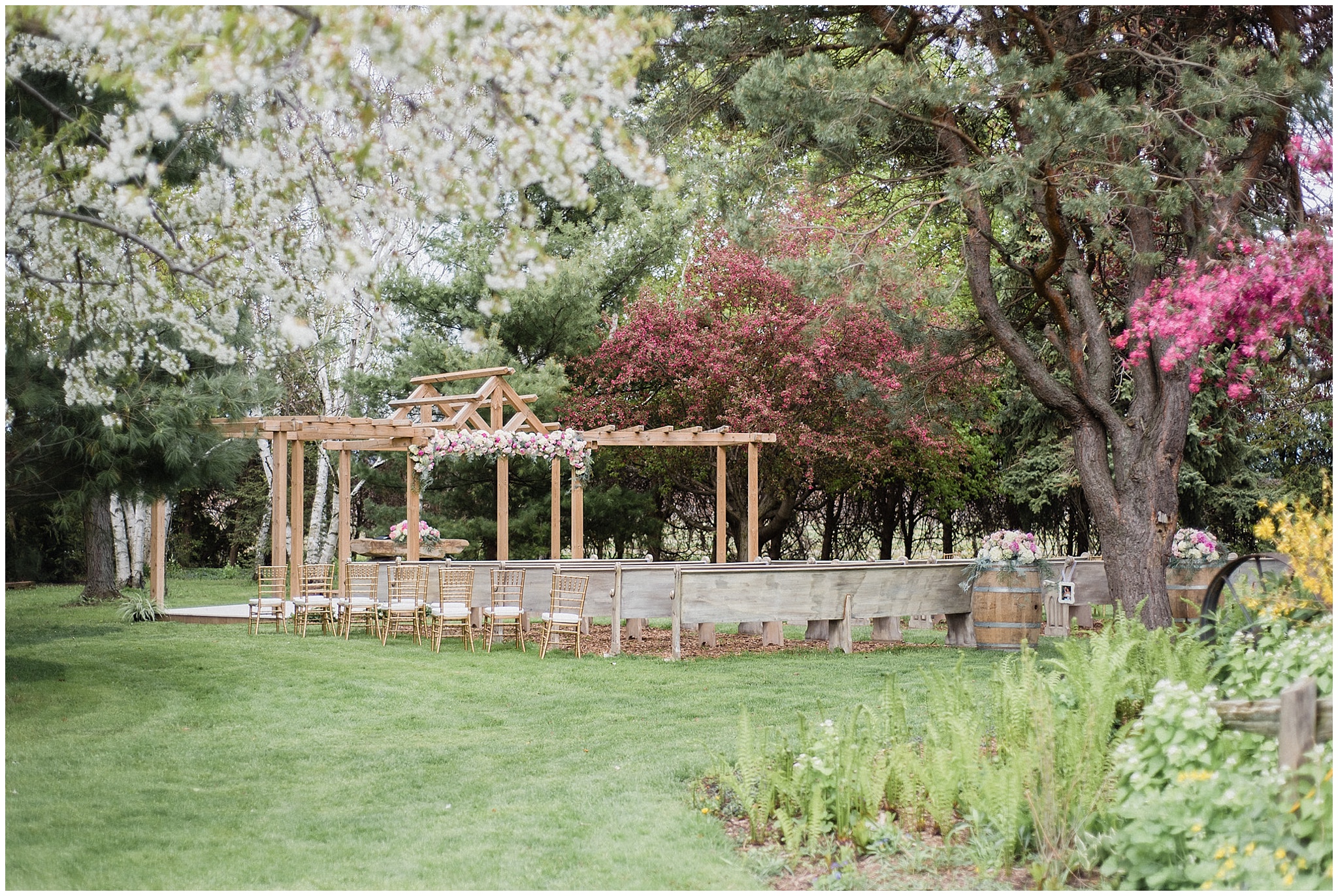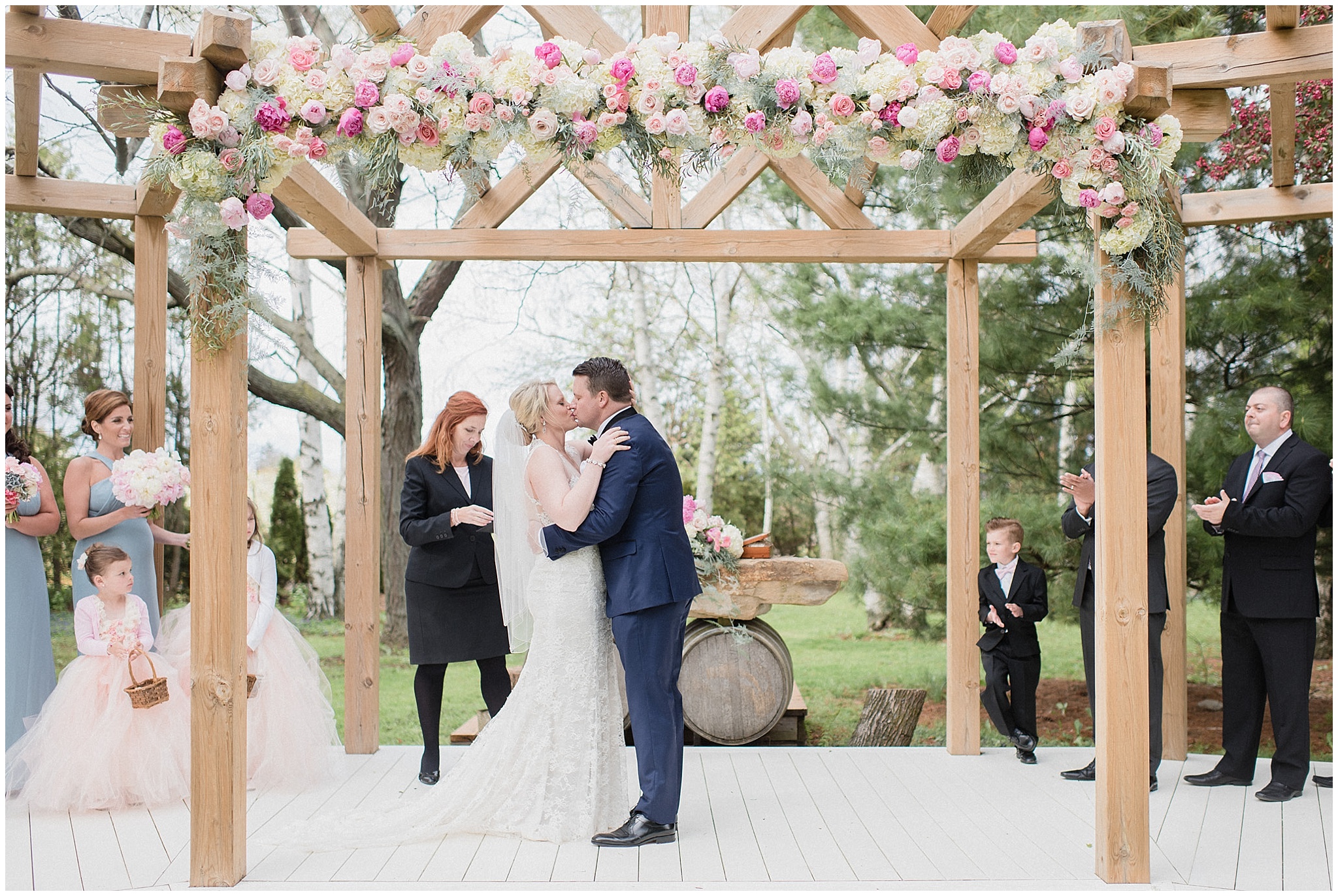 This weekend’s Honsberger Estate wedding was one for the books! Allie and Jon had the biggest smiles on their faces all day long and for good reason. Just over 100 of their closest friends and family travelled from all over to gather on the beautiful Honsberger Estate property to watch them say ‘I do’ underneath an incredible floral arch created by Lush Florals. We were incredibly lucky with the weather- the rain held off and we managed to create some beautiful portraits among the blossoming trees on the lawns. A cheeky kissing game that involved tequila got the party started and a donut tower and late night pizza kept everyone fuelled for the dance floor!