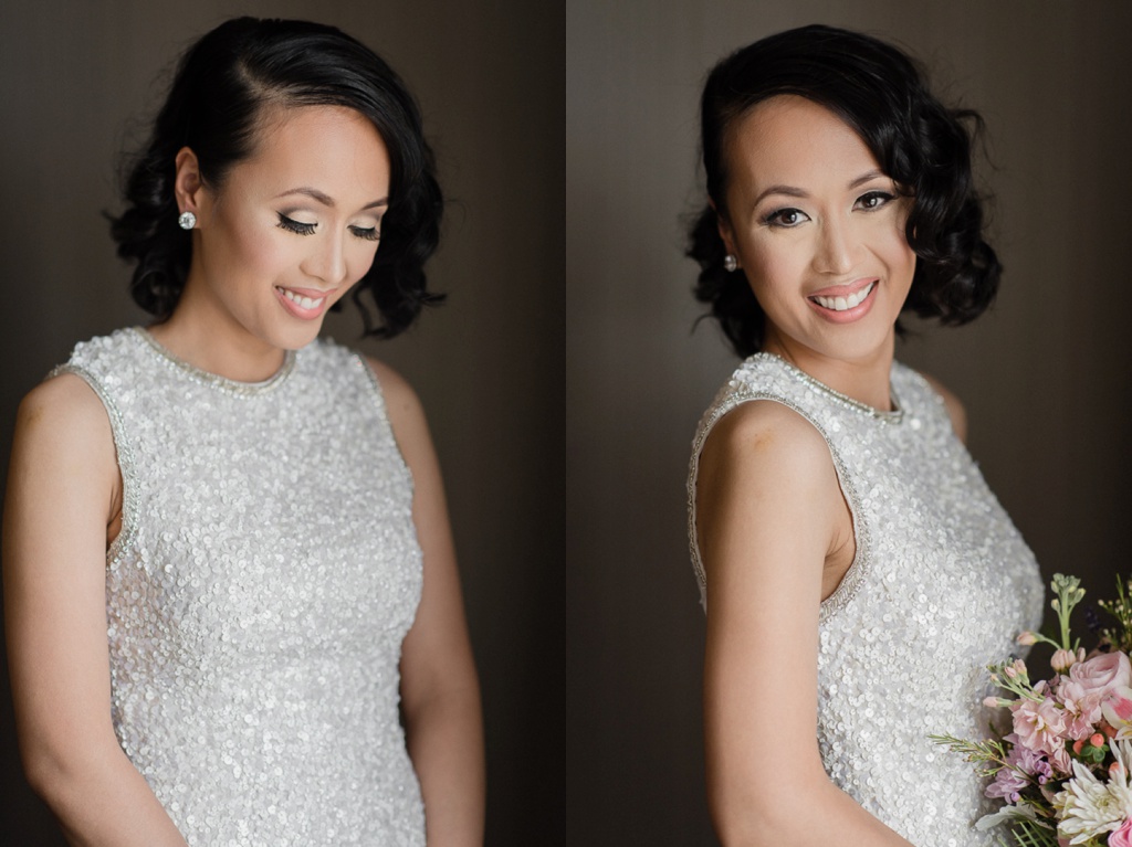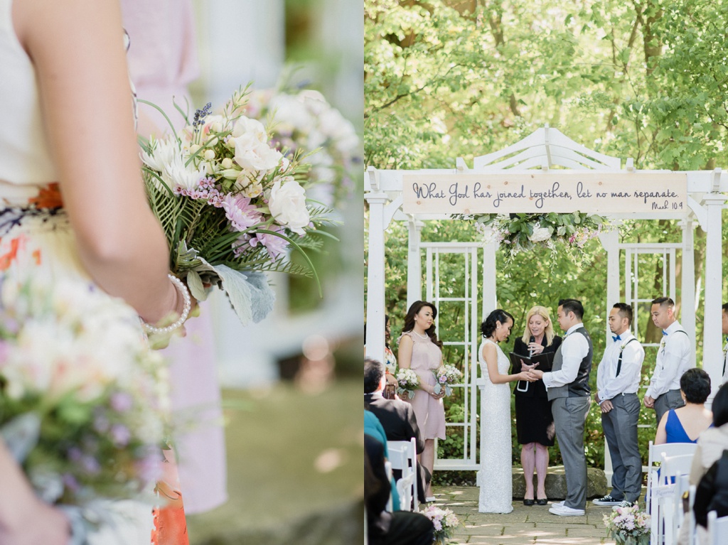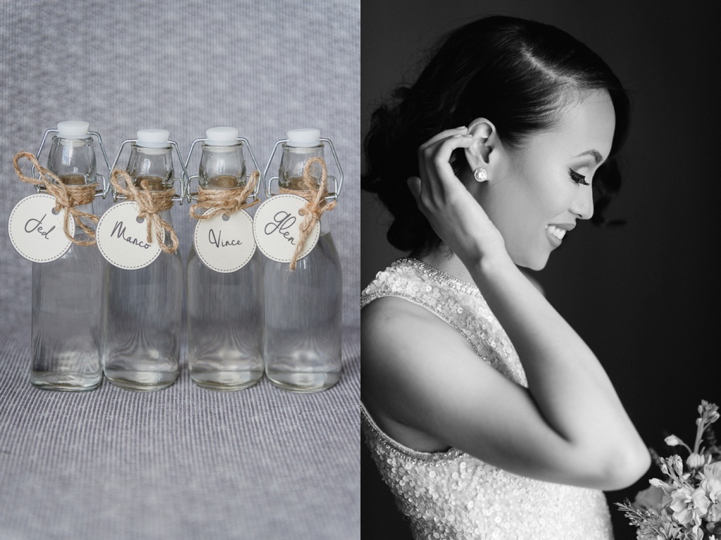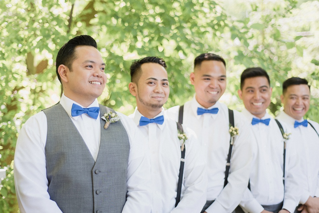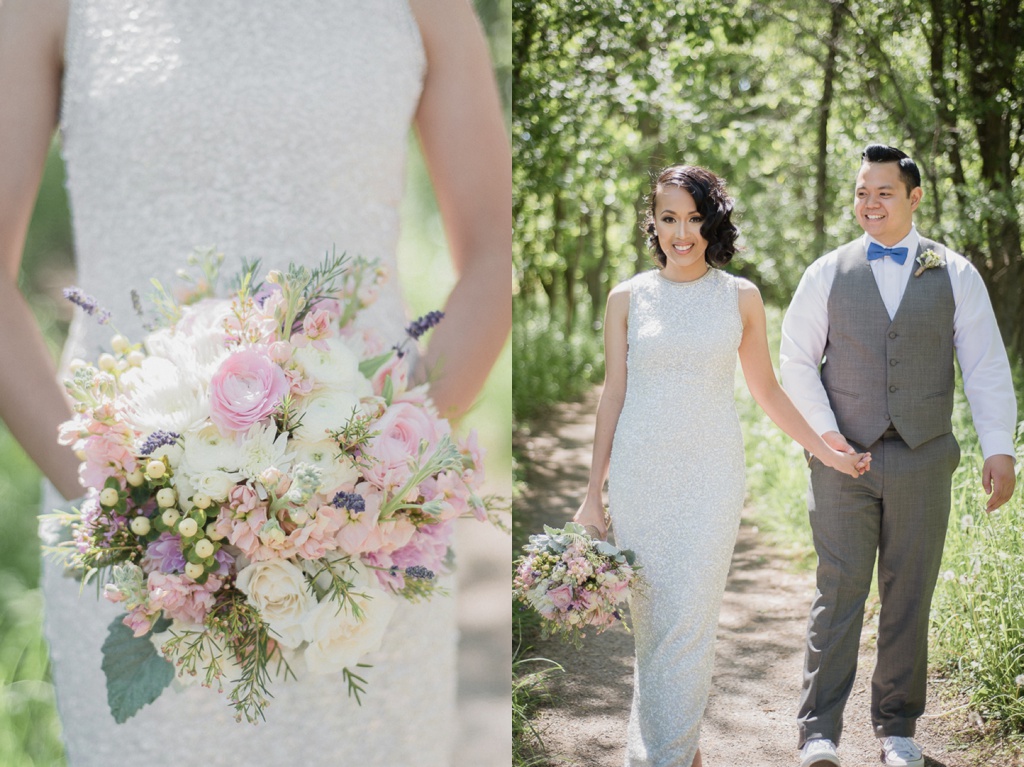 Oh, what a day! Katrina and Aron were all smiles on their wedding day, and for good reason. They are both SO sweet and were surrounded by people who truly wanted to celebrate the kickoff of their marriage (like really, really excited to celebrate…this was the loudest group of wedding guests I’ve ever had!) Katrina pulled off such a stunning bridal look with her sequin ‘Samantha’ gown by Rachel Gilbert, and neutral Nine West shoes, paired with her gorgeous cropped hair- it was quite the winning combo! Katrina’s ladies wore a great combination of mismatched dresses and Aron and the groomsmen were just having a blast all day. The rustic florals provided by PlushFlowers were the perfect addition to Katrina and Aron’s already beautifully natural looking venue.