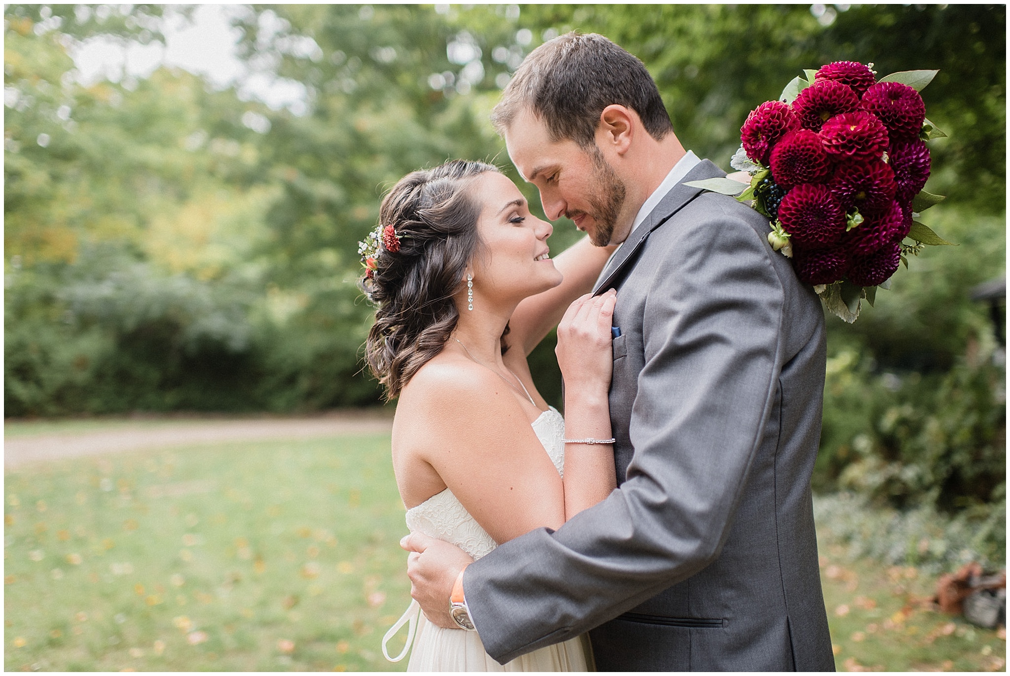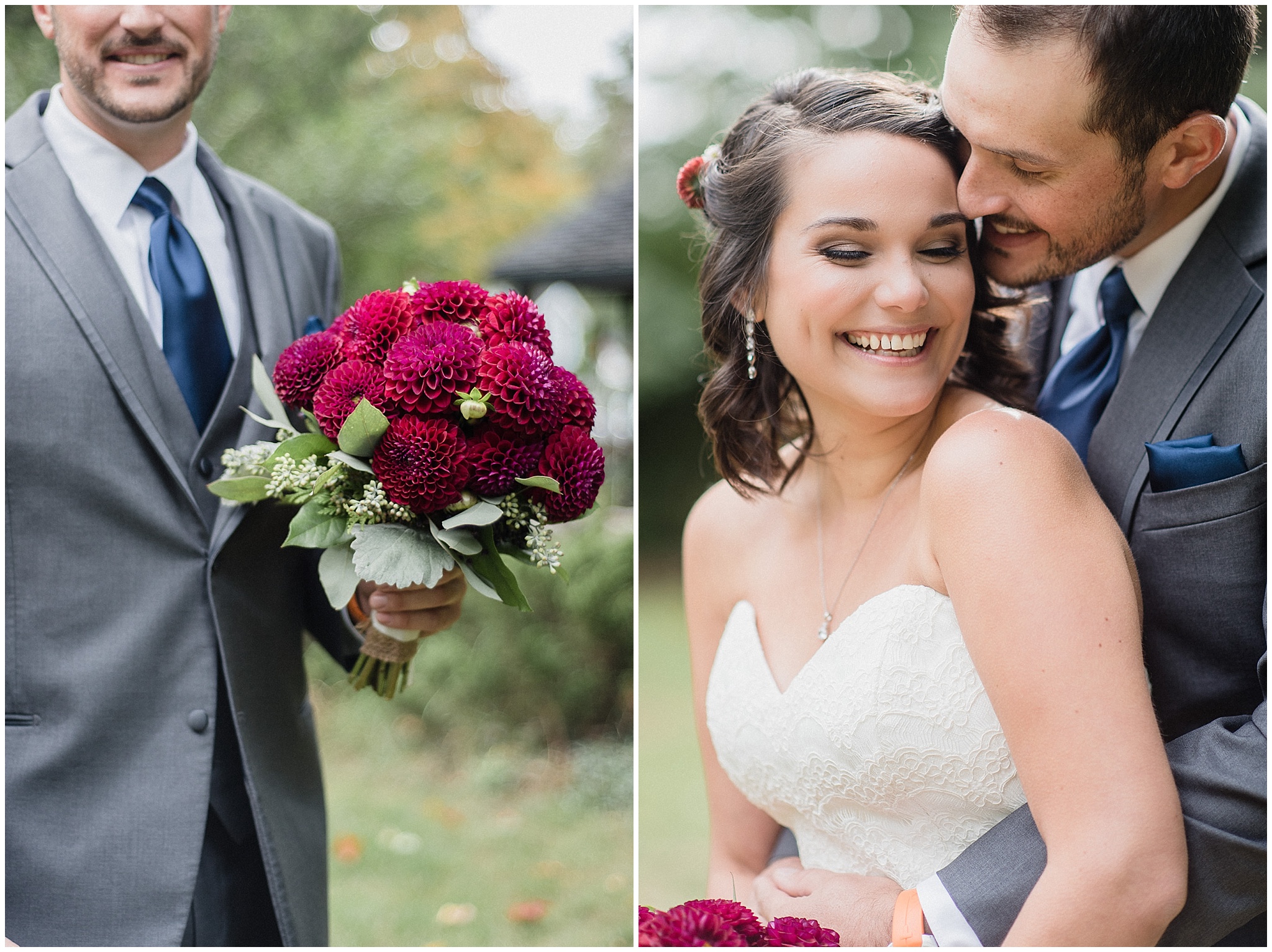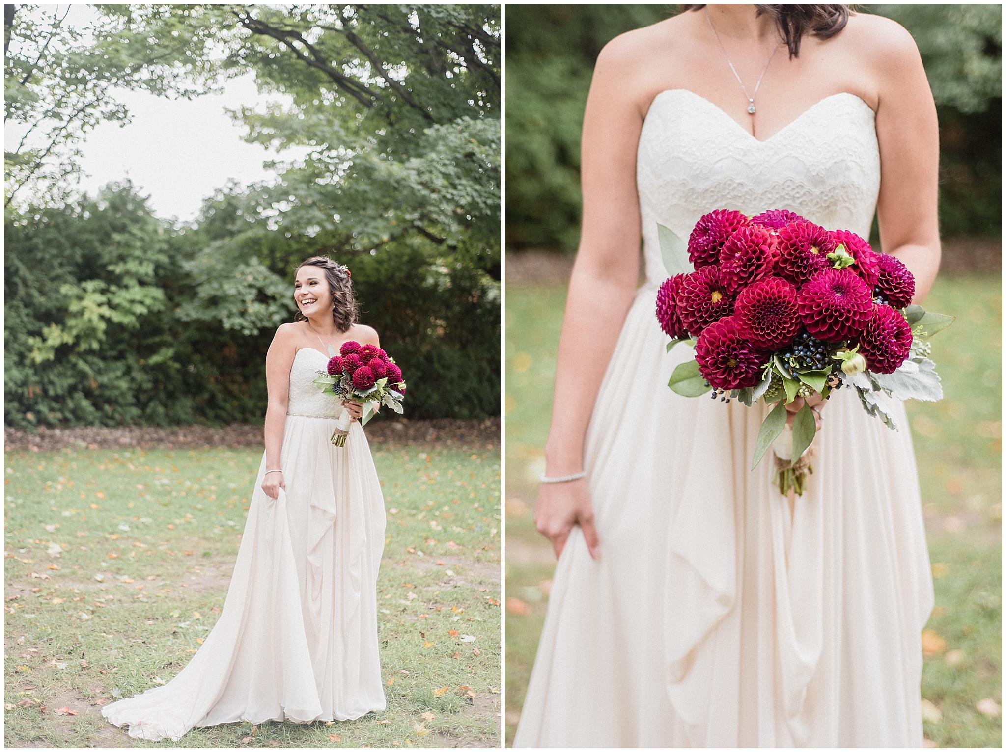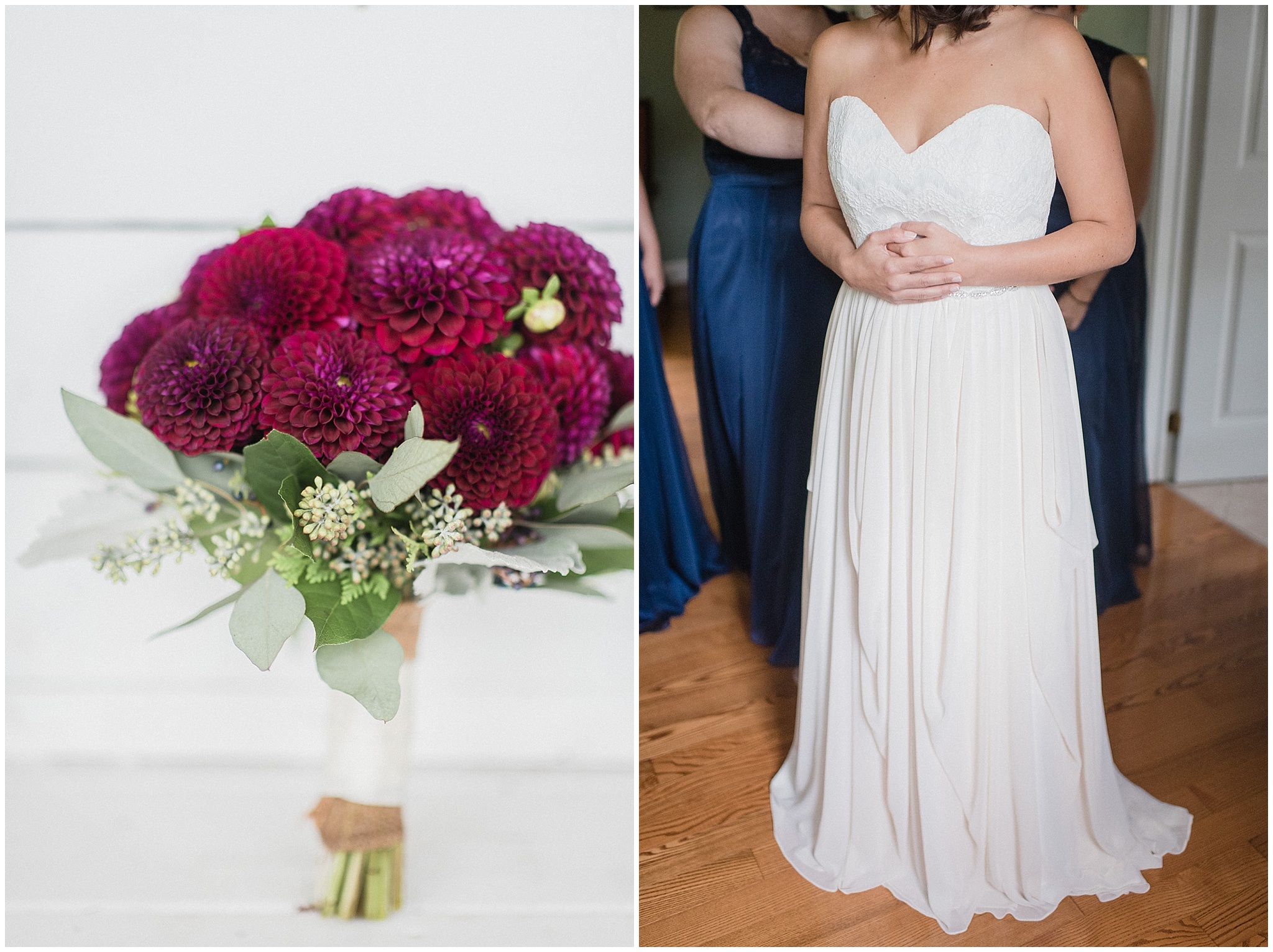 LazyDayz Bed & Breakfast rustic barn wedding feauturing a maroon dahlia bouquet by Jenn Kavanagh Photography