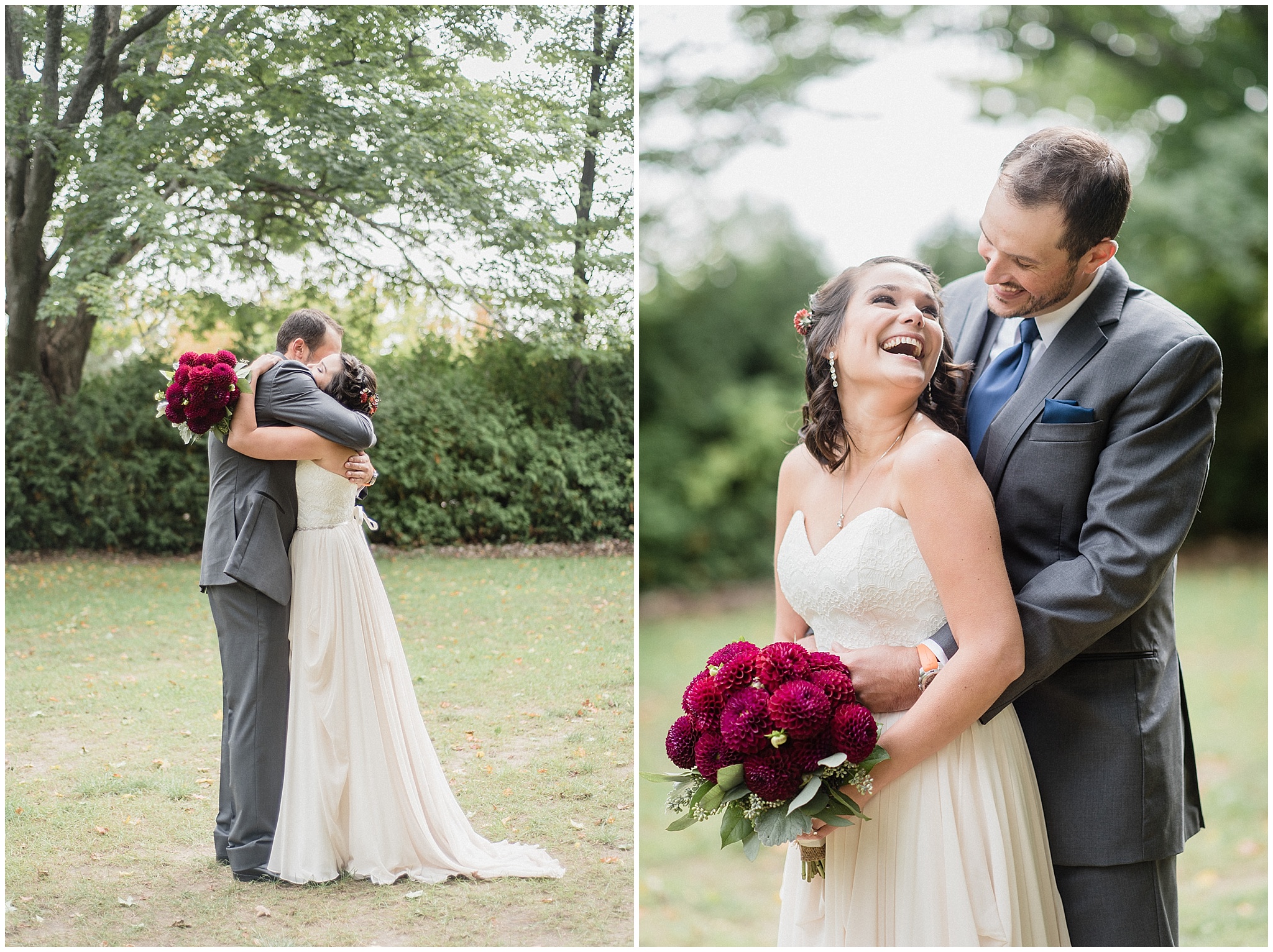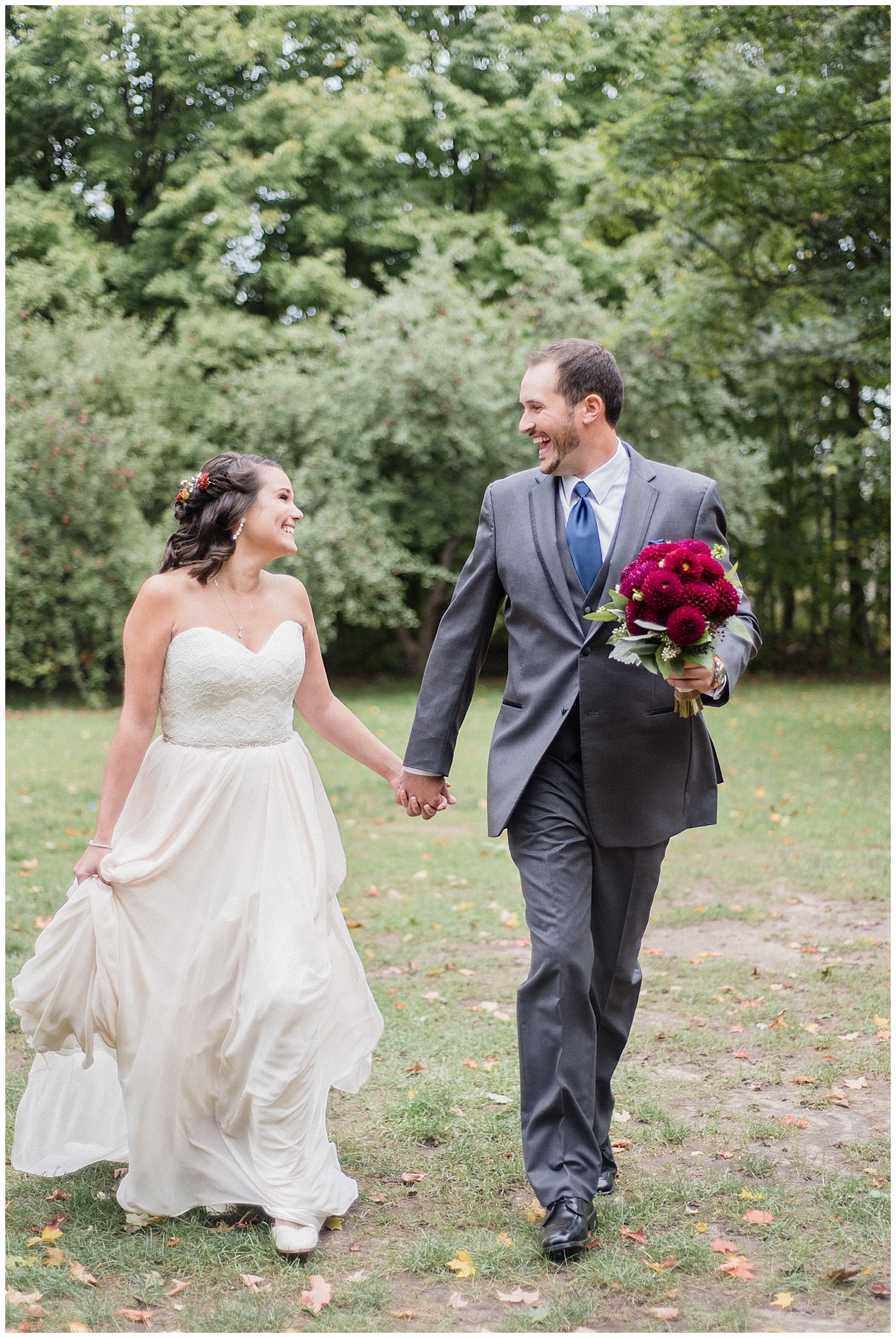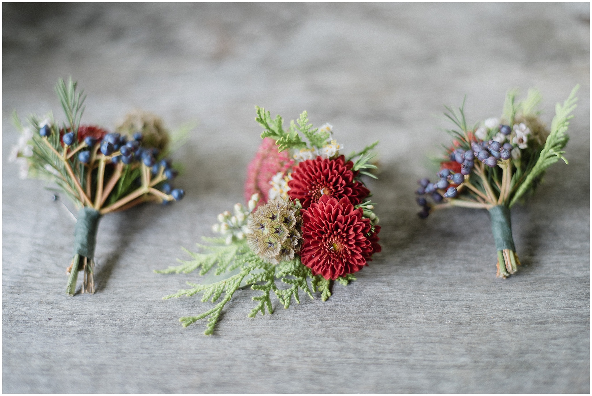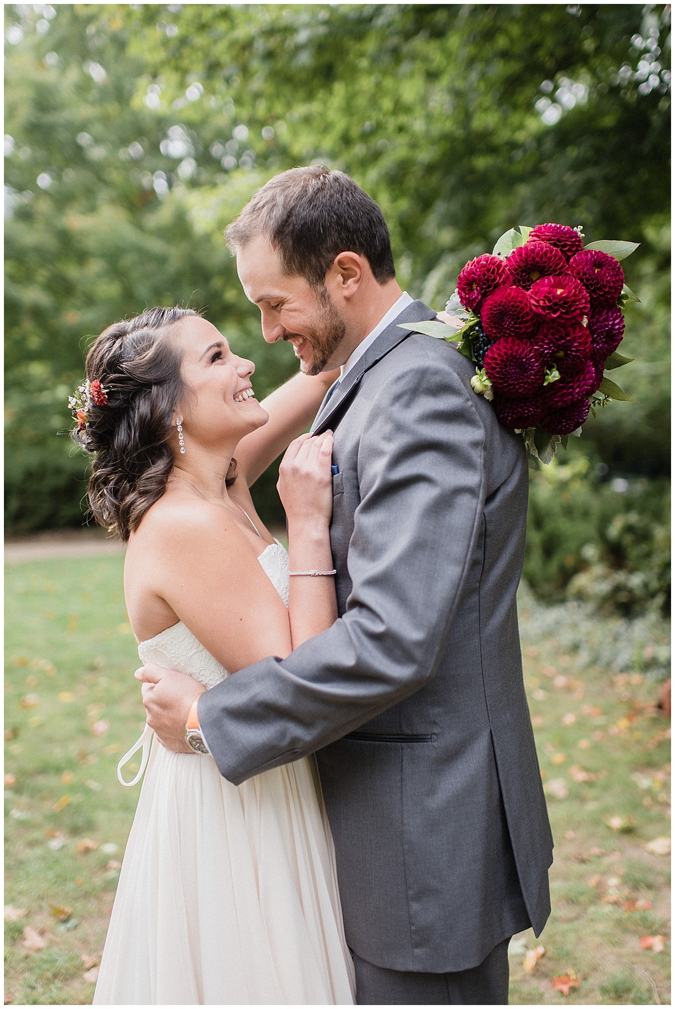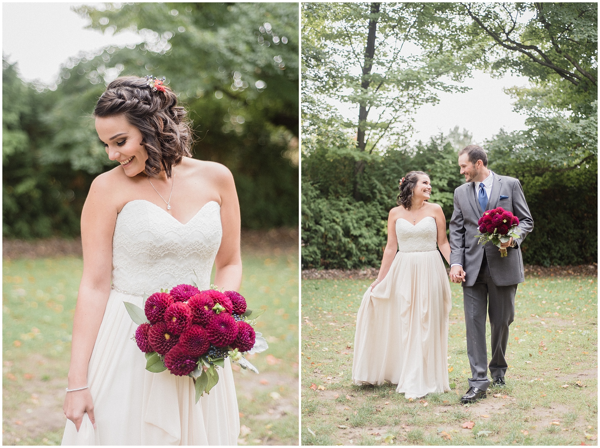 LazyDayz Bed & Breakfast rustic barn wedding feauturing a maroon dahlia bouquet by Jenn Kavanagh Photography