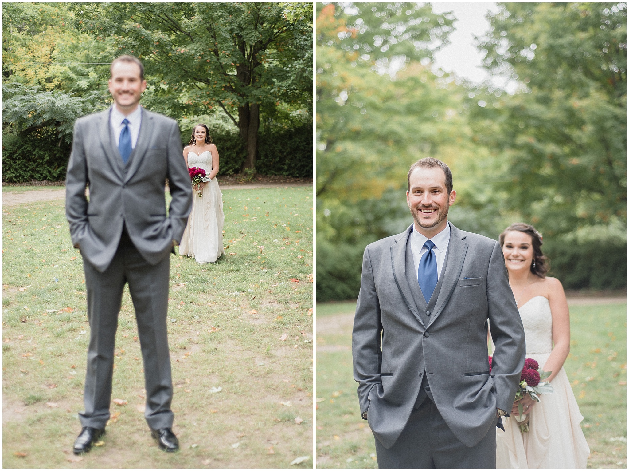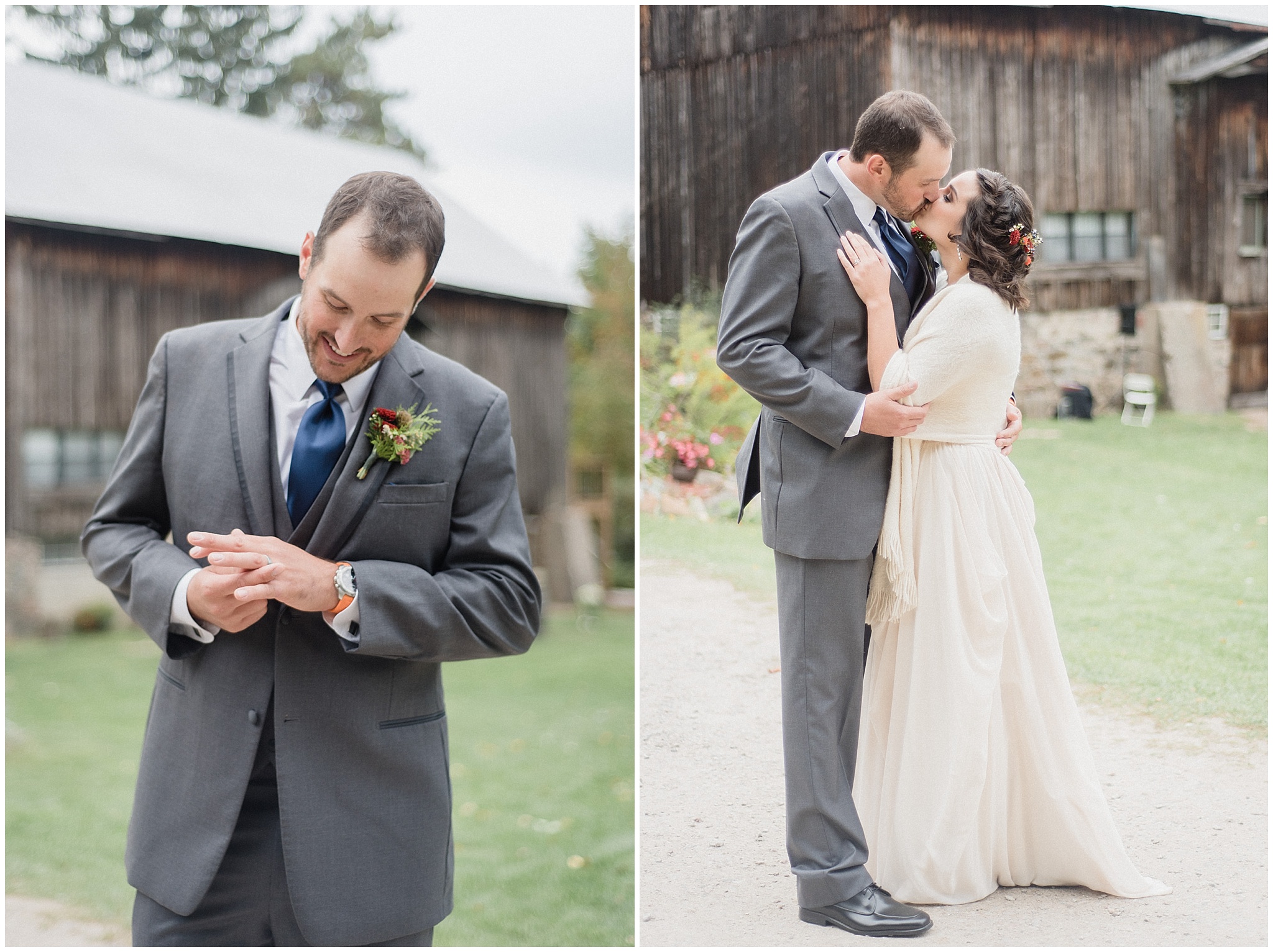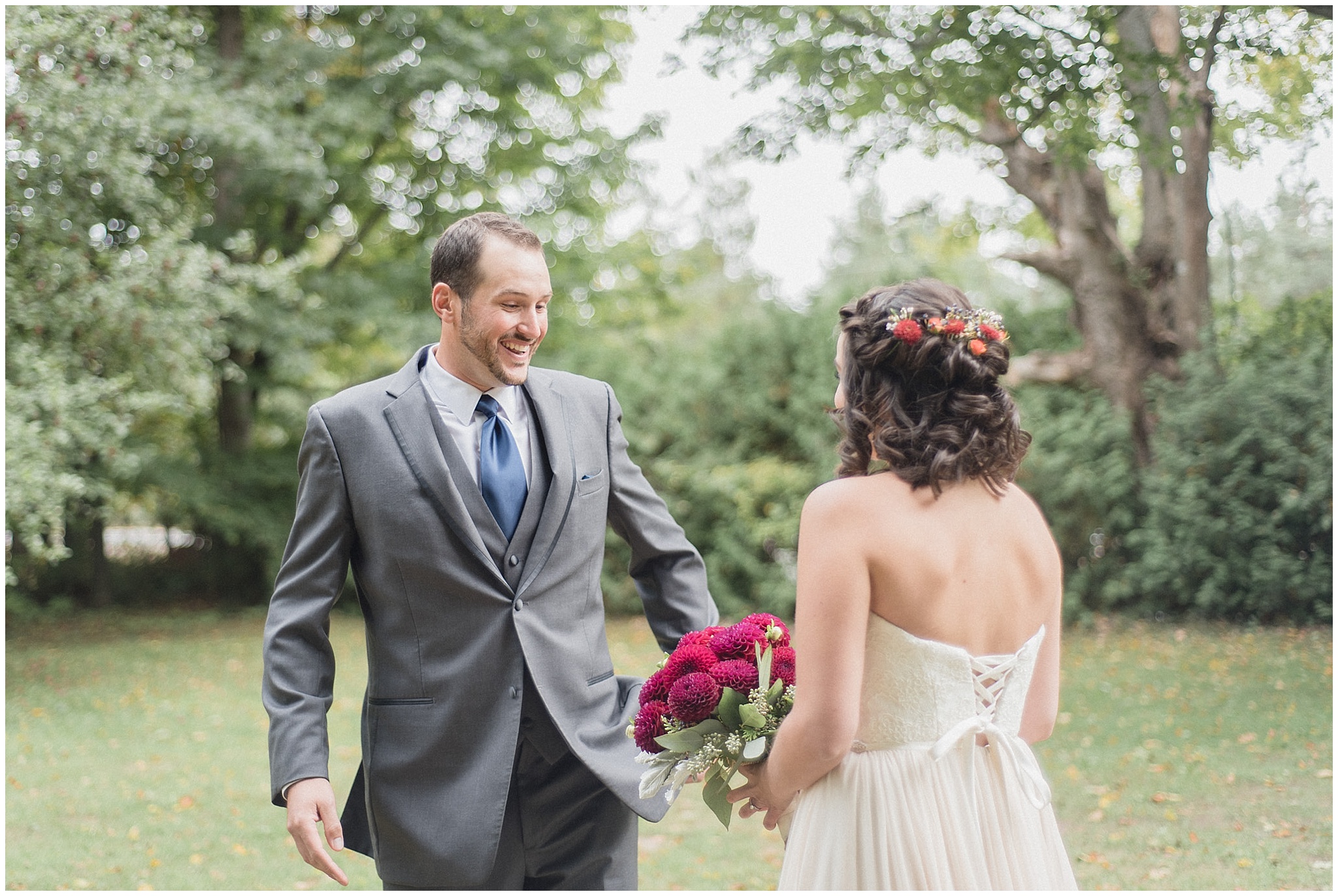 Bride and groom first look | LazyDayz Bed & Breakfast rustic barn wedding by Jenn Kavanagh Photography