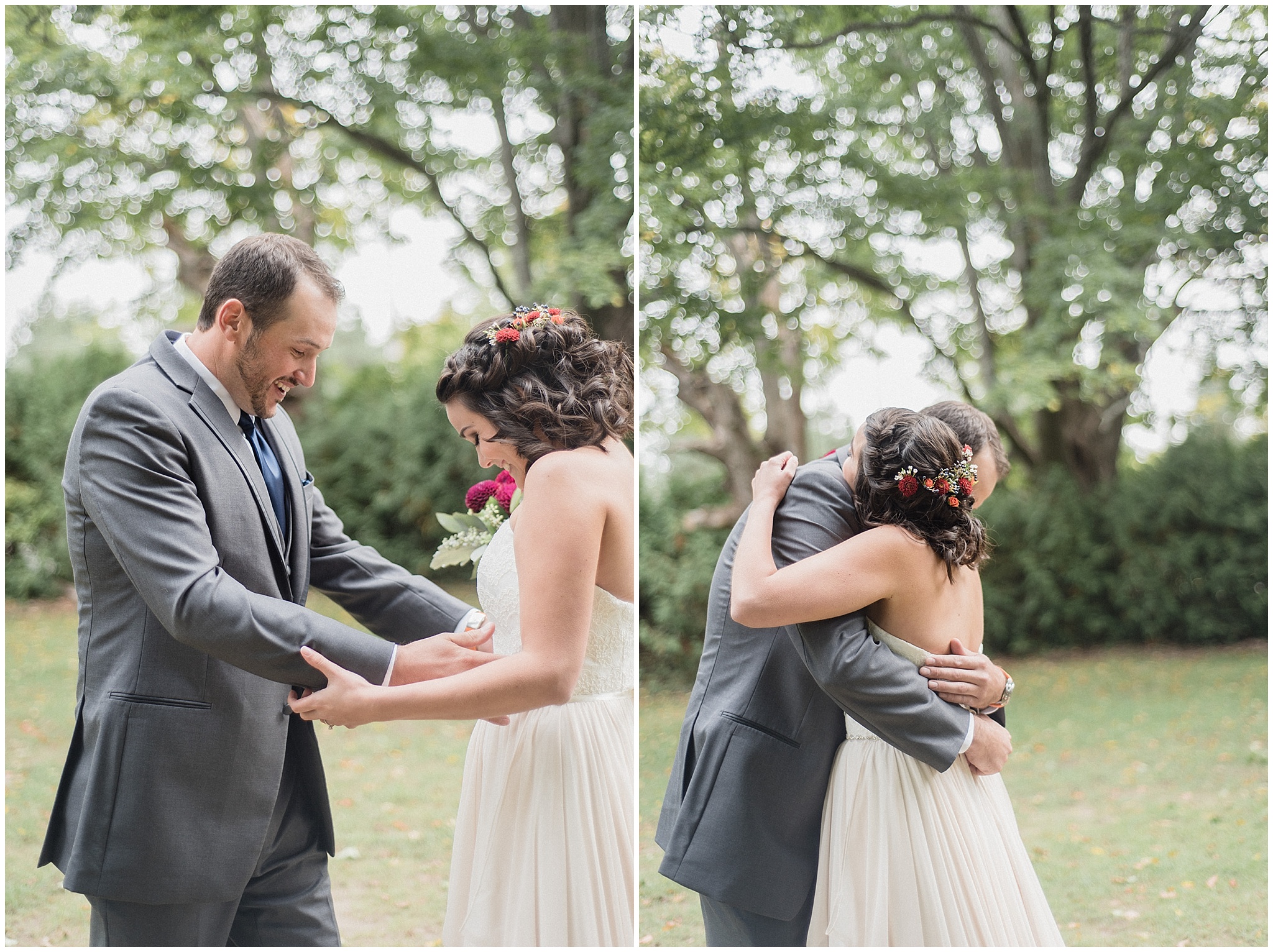 Bride and groom first look | The first look at this LazyDayz Bed & Breakfast wedding by Jenn Kavanagh Photography