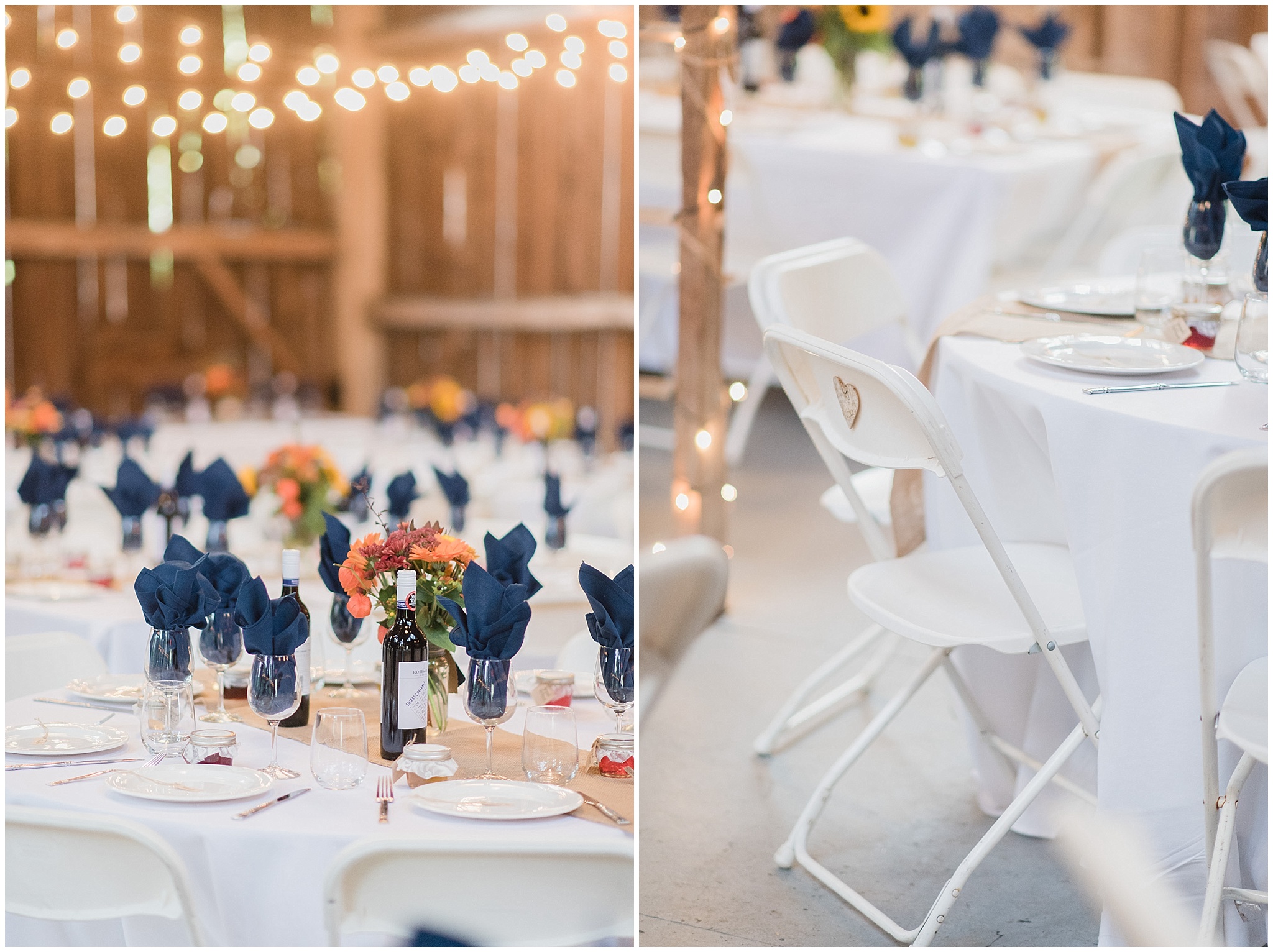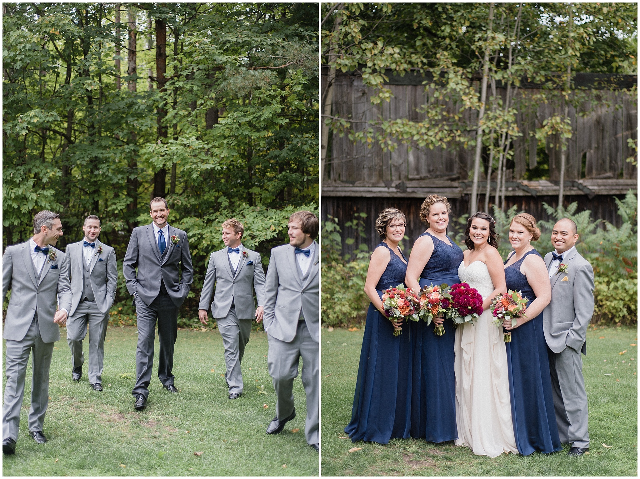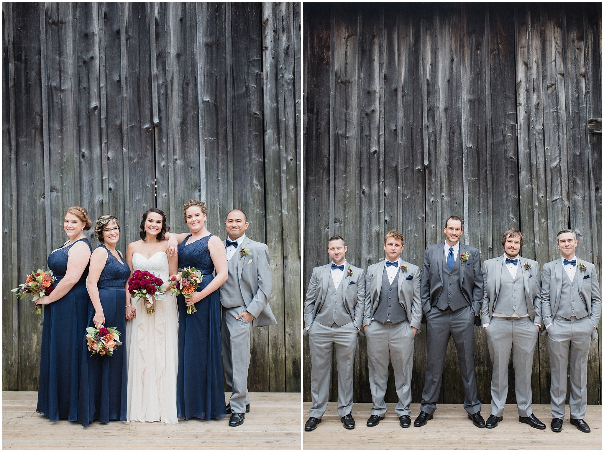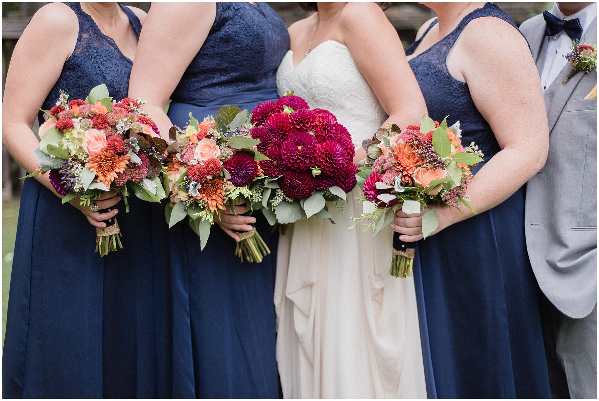 LazyDayz Bed & Breakfast wedding featuring navy blue bridesmaids dresses with orange and red florals by Jenn Kavanagh Photography