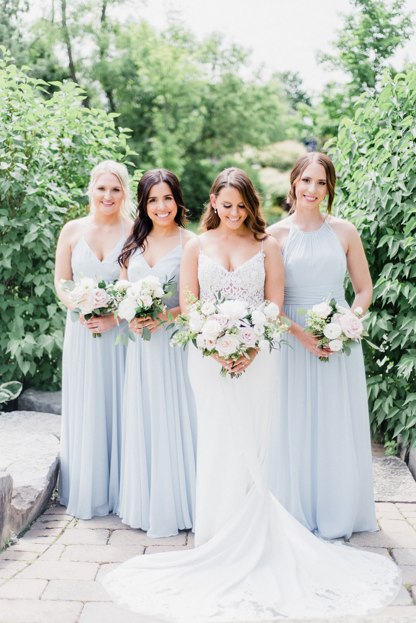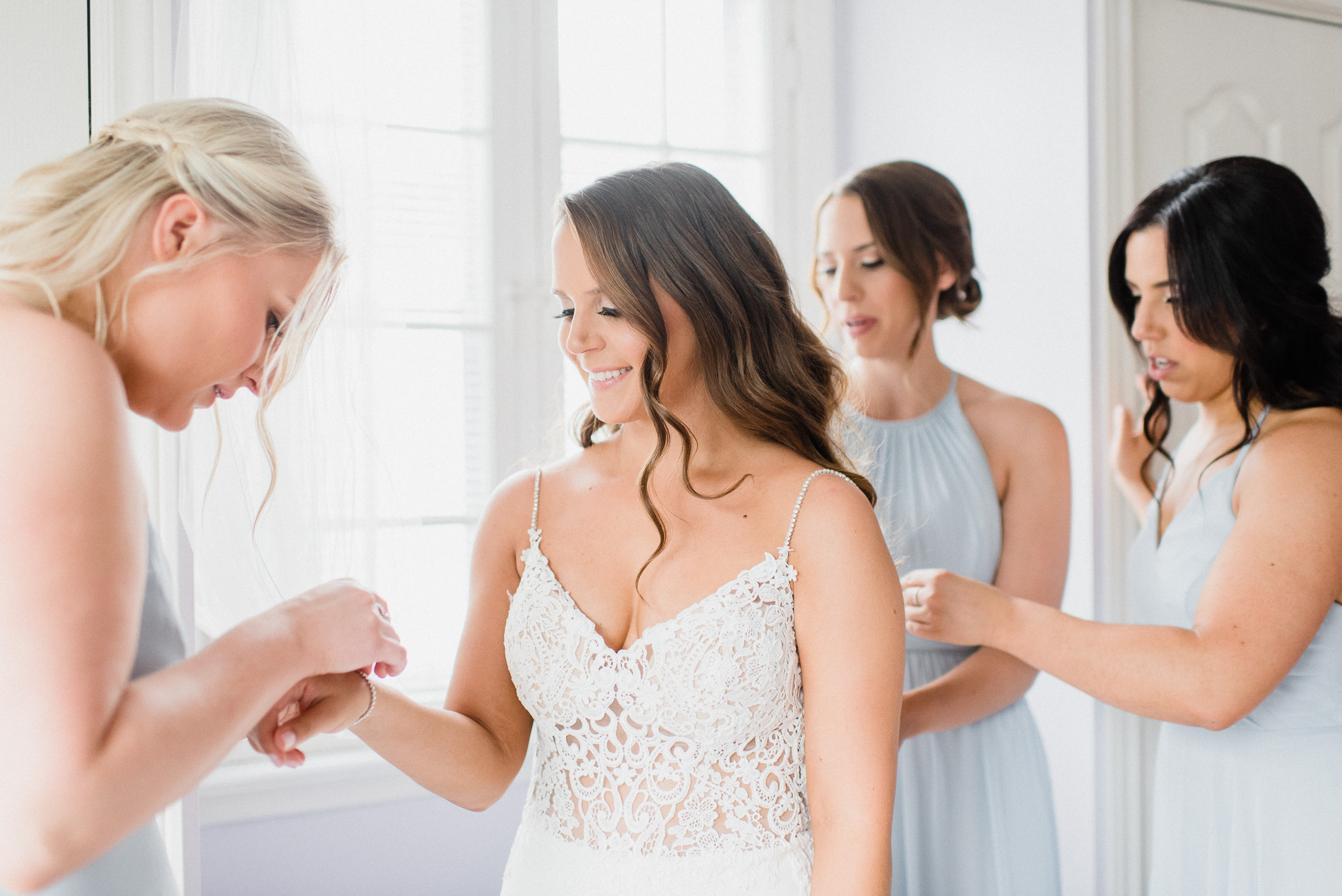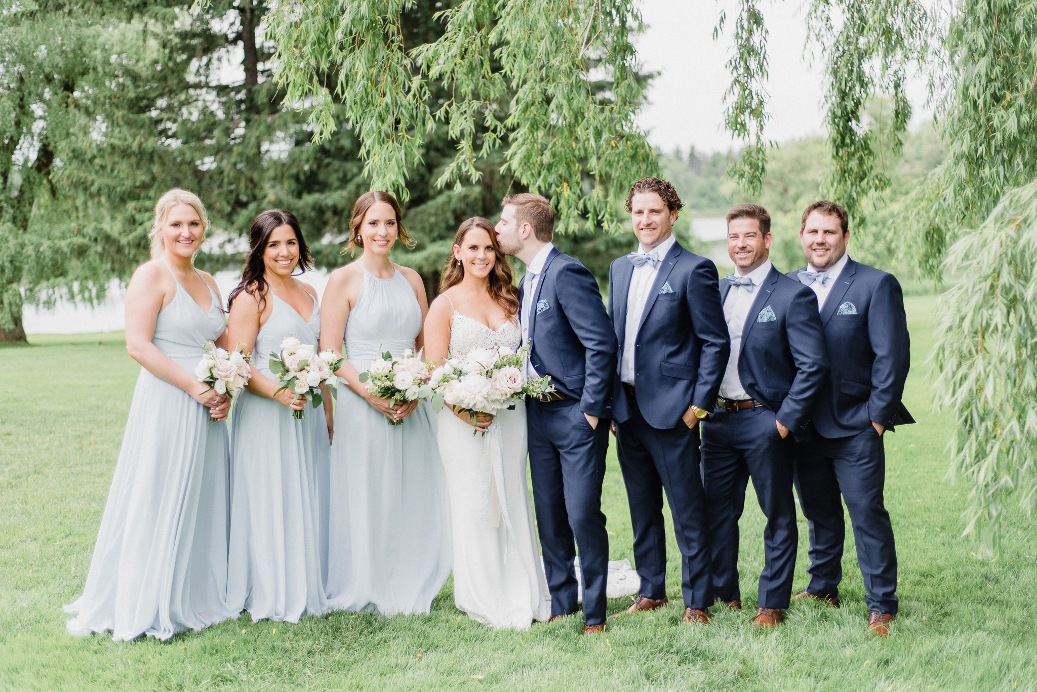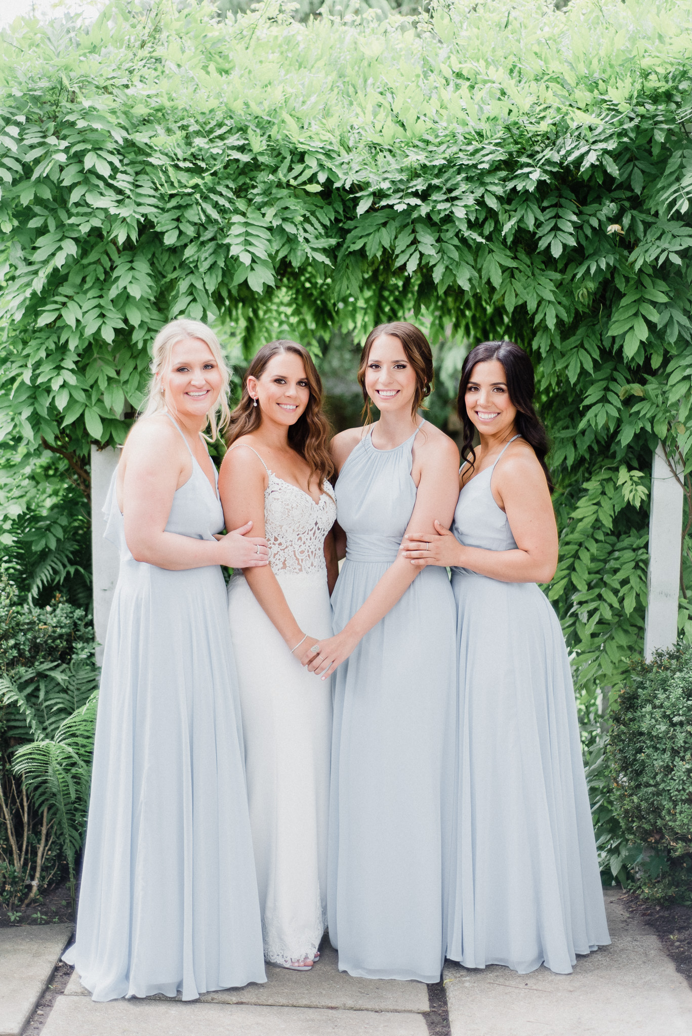 Now, onto our little chat about wedding day timelines. Kyla and Phil made a great choice and made sure to have a wedding planner on board, which is a huge step towards making sure your day goes smoothy and all the nitty gritty details can be handled by someone else on the day of. Jackie Penner Events and her associate Alicia did a magnificent job of handling the coordination of the day, and ensured everything looked perfect. They also took my requests and suggestions prior to the wedding in stride, making sure I had enough time to capture the memories and portraits that I knew Kyla and Phil wanted. Not all of my weddings have a planner to help them out with this, so that’s where I am happy to step in and assist in the timeline management! I certainly cannot do the job of a planner, but I love helping out pre-wedding to make sure we are setting ourselves up for success with a realistic timeline and one that allows my couples to really enjoy their day. Often, this means doing a First Look and portraits all before the ceremony. Kyla and Phil opted for this structure, and it meant that they could be at their entire cocktail hour and also to avoid feeling rushed on their big day. I could go on and on about First Looks and the advantages they offer, but I feel like I talk about it all the time so I won’t say anything more on that specifically! In the morning, as hair and makeup were wrapping up, I realized that Kyla was the last gal in the makeup chair and that things were starting to look a little tight on our ‘getting ready’ timeline. She still had about 10-15 minutes left of makeup, and we were due to be leaving in 25 minutes. We had wanted to get a photo of Kyla and her girls all in their matching robes and shirts once they were all done hair and makeup, but I knew we had to prioritize. We decided together to scrap that photo so we could maximize our time, and we instead got the bridesmaids all dressed and ready so we could quickly get Kyla dressed and have those nice moments with her girls and her parents. We even had enough time to grab a few quick portraits outside of her family home, in the beautiful greenery covered archway! We ended up leaving her parents’ house 15 minutes later than planned, but in the end I knew we didn’t need to stress because we had padded the timeline for portraits a bit and we still had hours until the ceremony. I think the main takeaway from an experience like this is that it’s important for couples to recognize that even with the most careful planning, things just happen and the timeline can start to run behind schedule, but we need to be flexible and make decisions on the fly sometimes. This obviously isn’t an extreme example but I’m confident that an even greater delay still could have been managed and dealt with, with very little added stress and we still would have had a wonderful wedding day!