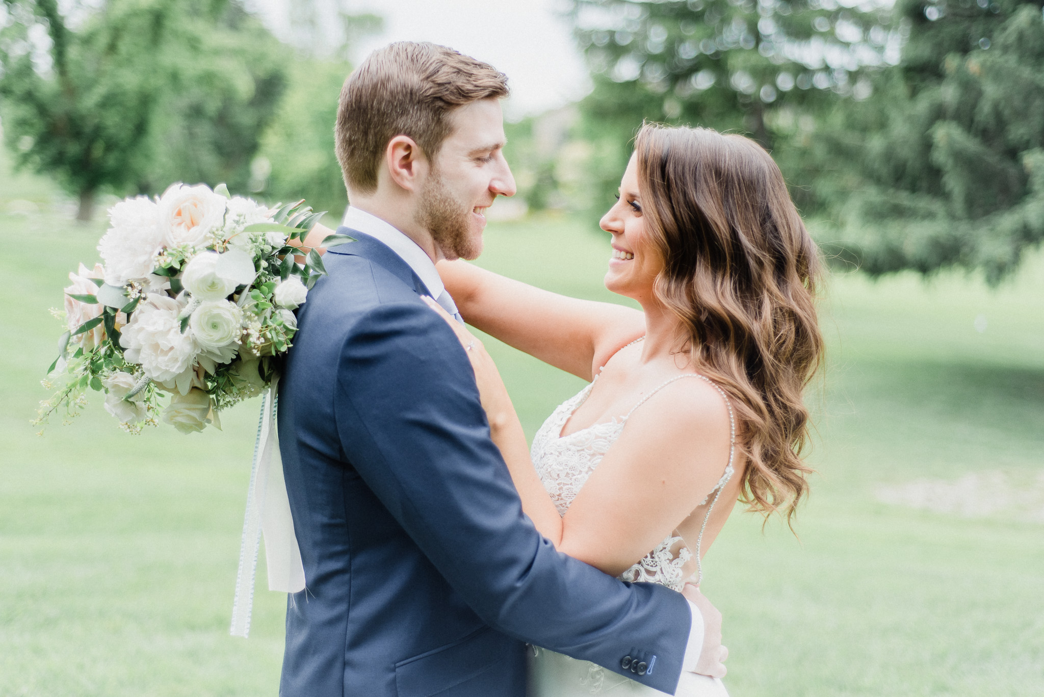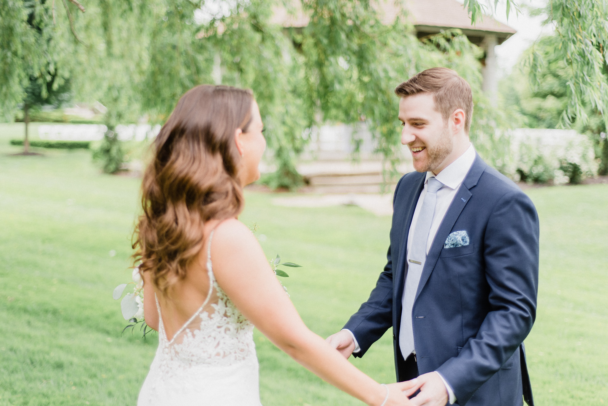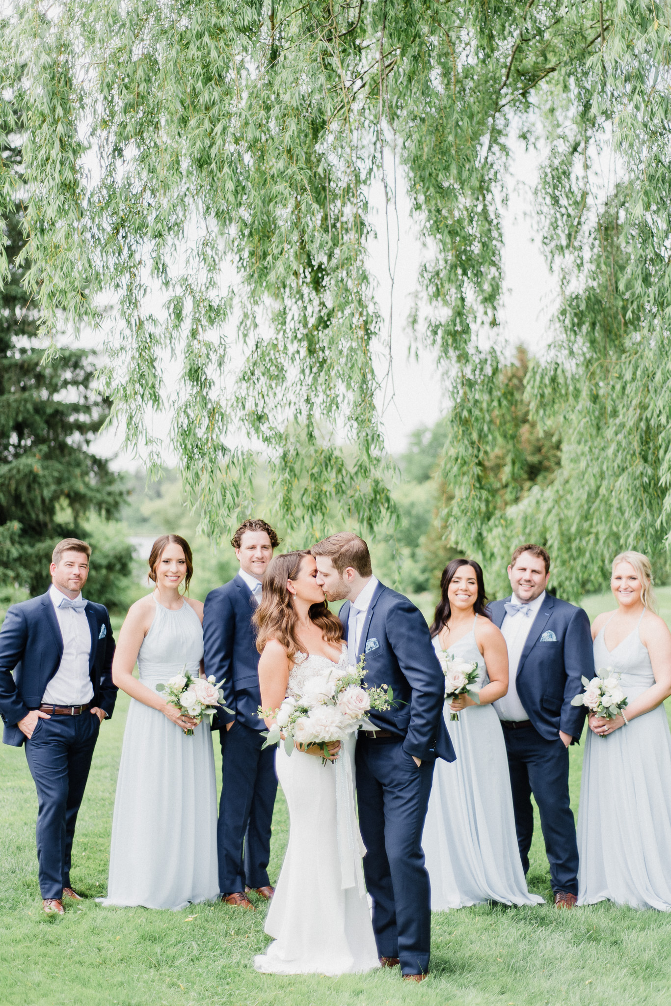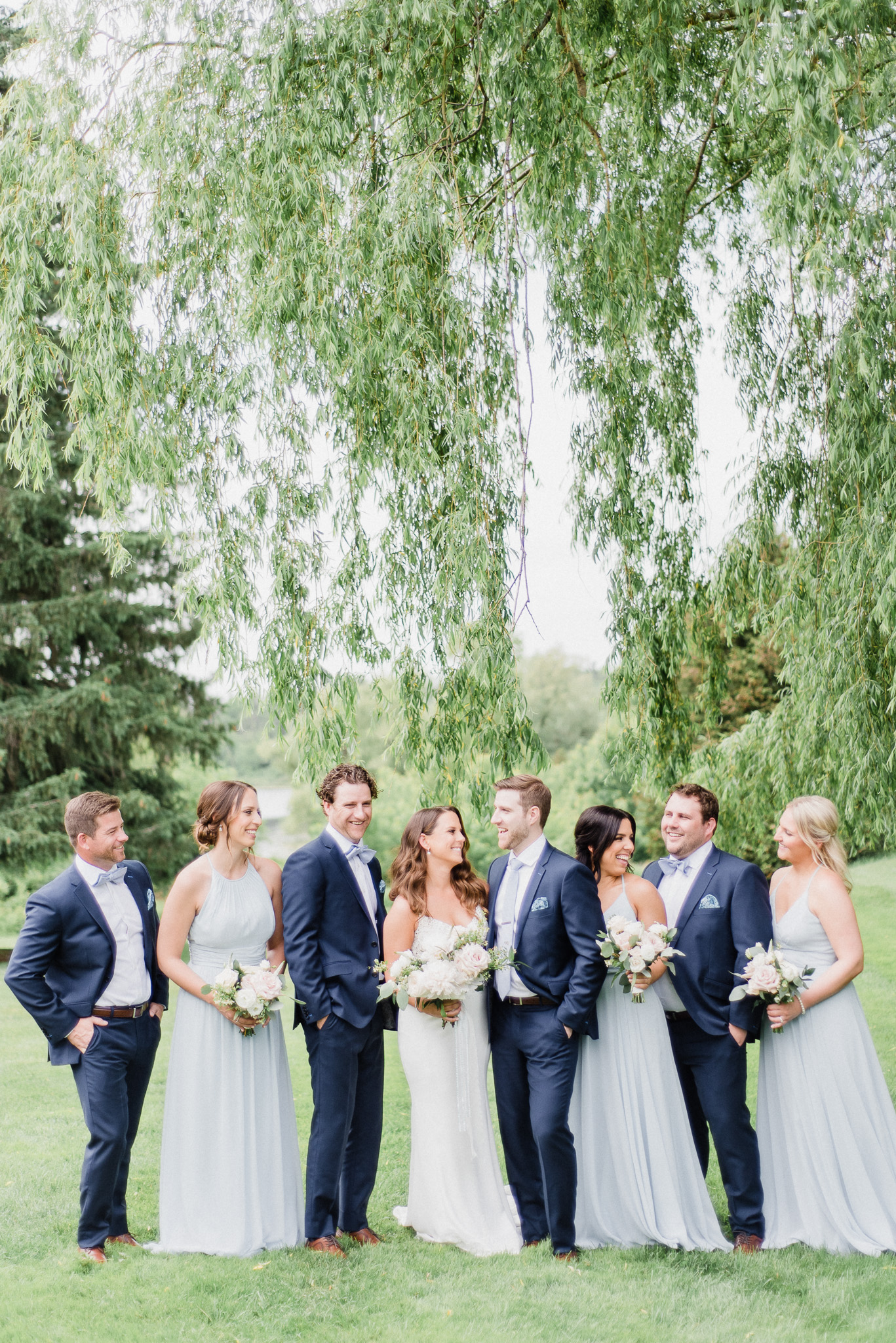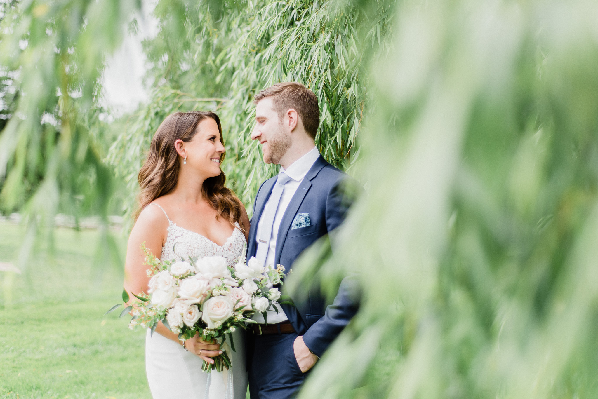 Now, onto our little chat about wedding day timelines. Kyla and Phil made a great choice and made sure to have a wedding planner on board, which is a huge step towards making sure your day goes smoothy and all the nitty gritty details can be handled by someone else on the day of. Jackie Penner Events and her associate Alicia did a magnificent job of handling the coordination of the day, and ensured everything looked perfect. They also took my requests and suggestions prior to the wedding in stride, making sure I had enough time to capture the memories and portraits that I knew Kyla and Phil wanted. Not all of my weddings have a planner to help them out with this, so that’s where I am happy to step in and assist in the timeline management! I certainly cannot do the job of a planner, but I love helping out pre-wedding to make sure we are setting ourselves up for success with a realistic timeline and one that allows my couples to really enjoy their day. Often, this means doing a First Look and portraits all before the ceremony. Kyla and Phil opted for this structure, and it meant that they could be at their entire cocktail hour and also to avoid feeling rushed on their big day. I could go on and on about First Looks and the advantages they offer, but I feel like I talk about it all the time so I won’t say anything more on that specifically! In the morning, as hair and makeup were wrapping up, I realized that Kyla was the last gal in the makeup chair and that things were starting to look a little tight on our ‘getting ready’ timeline. She still had about 10-15 minutes left of makeup, and we were due to be leaving in 25 minutes. We had wanted to get a photo of Kyla and her girls all in their matching robes and shirts once they were all done hair and makeup, but I knew we had to prioritize. We decided together to scrap that photo so we could maximize our time, and we instead got the bridesmaids all dressed and ready so we could quickly get Kyla dressed and have those nice moments with her girls and her parents. We even had enough time to grab a few quick portraits outside of her family home, in the beautiful greenery covered archway! We ended up leaving her parents’ house 15 minutes later than planned, but in the end I knew we didn’t need to stress because we had padded the timeline for portraits a bit and we still had hours until the ceremony. I think the main takeaway from an experience like this is that it’s important for couples to recognize that even with the most careful planning, things just happen and the timeline can start to run behind schedule, but we need to be flexible and make decisions on the fly sometimes. This obviously isn’t an extreme example but I’m confident that an even greater delay still could have been managed and dealt with, with very little added stress and we still would have had a wonderful wedding day!