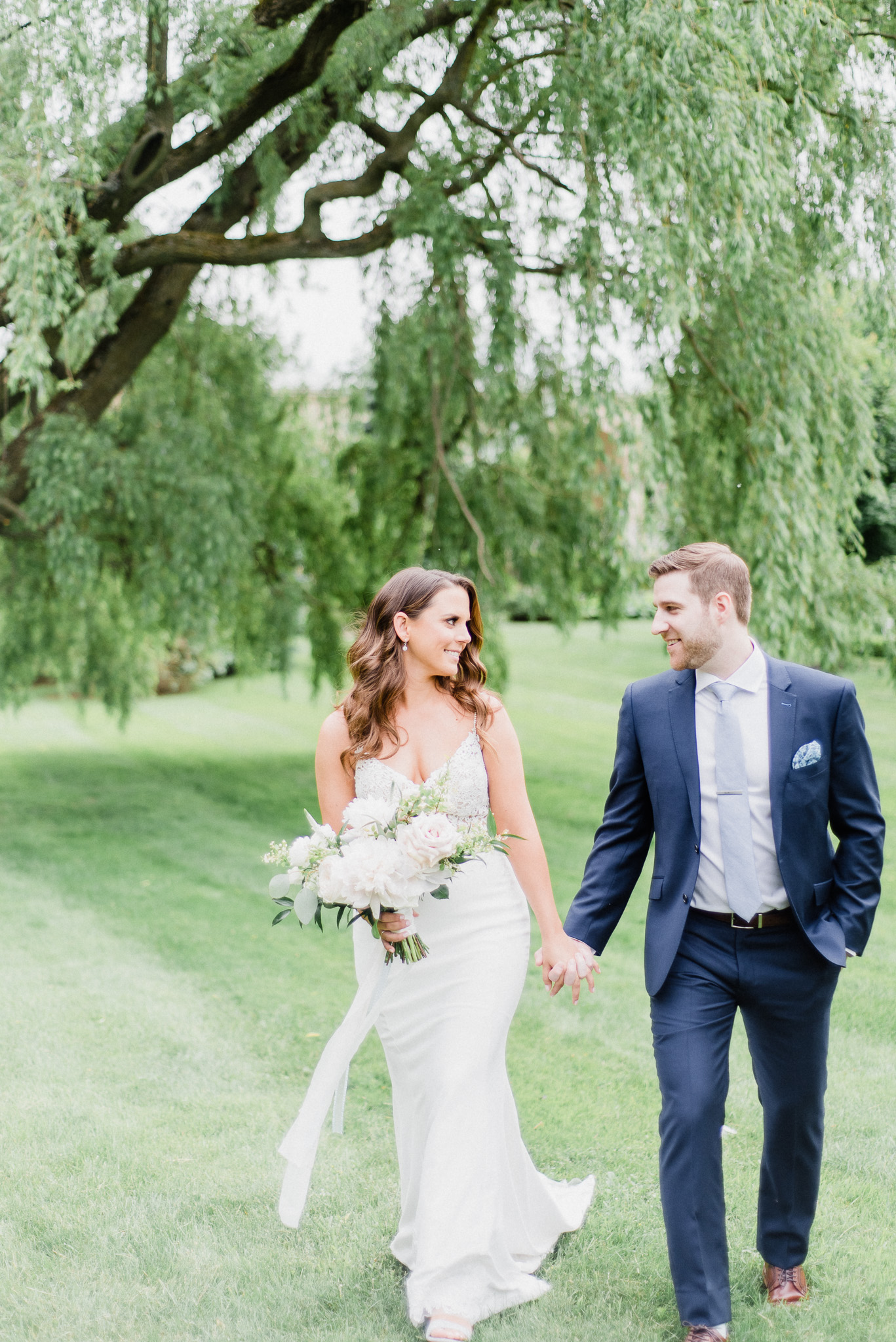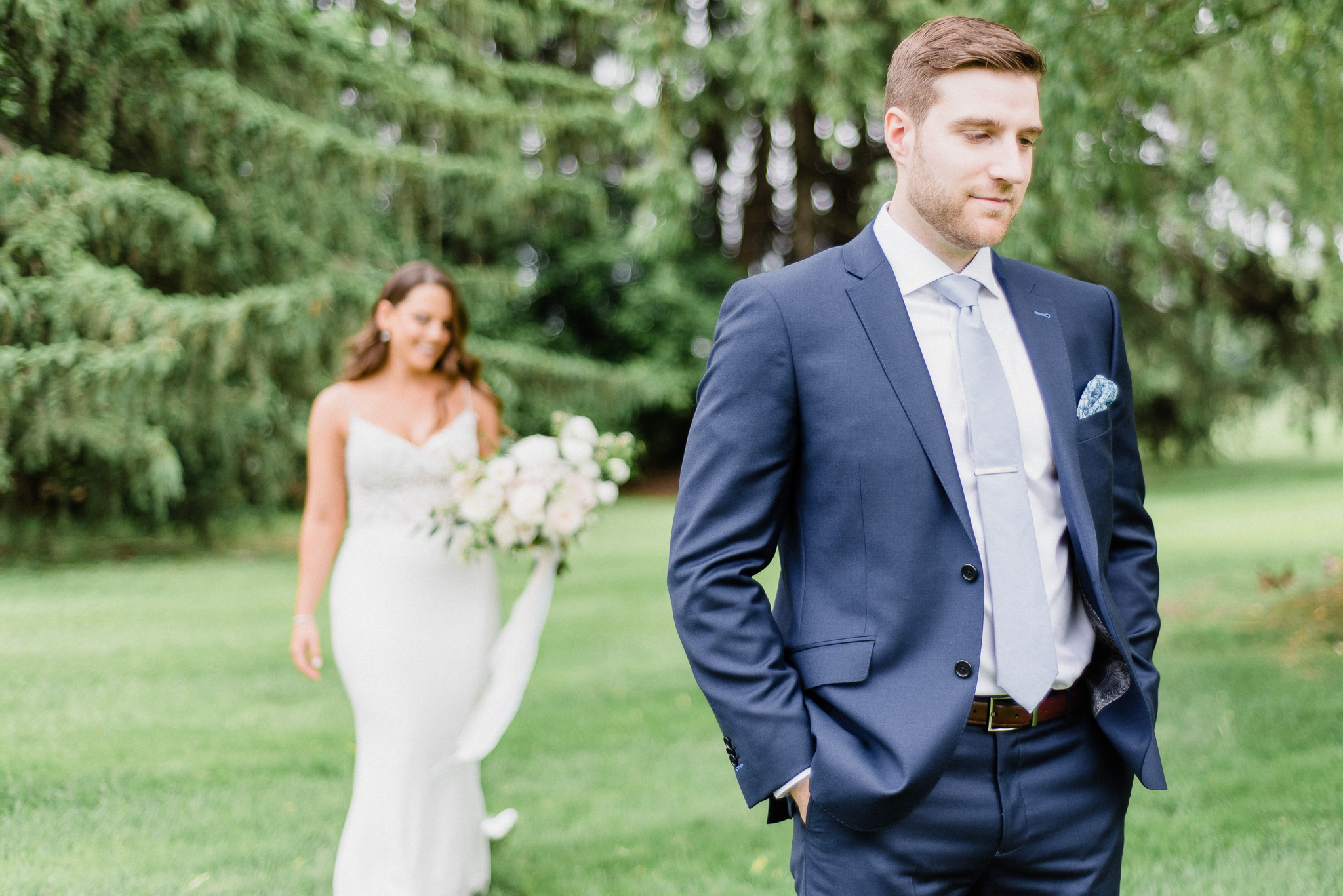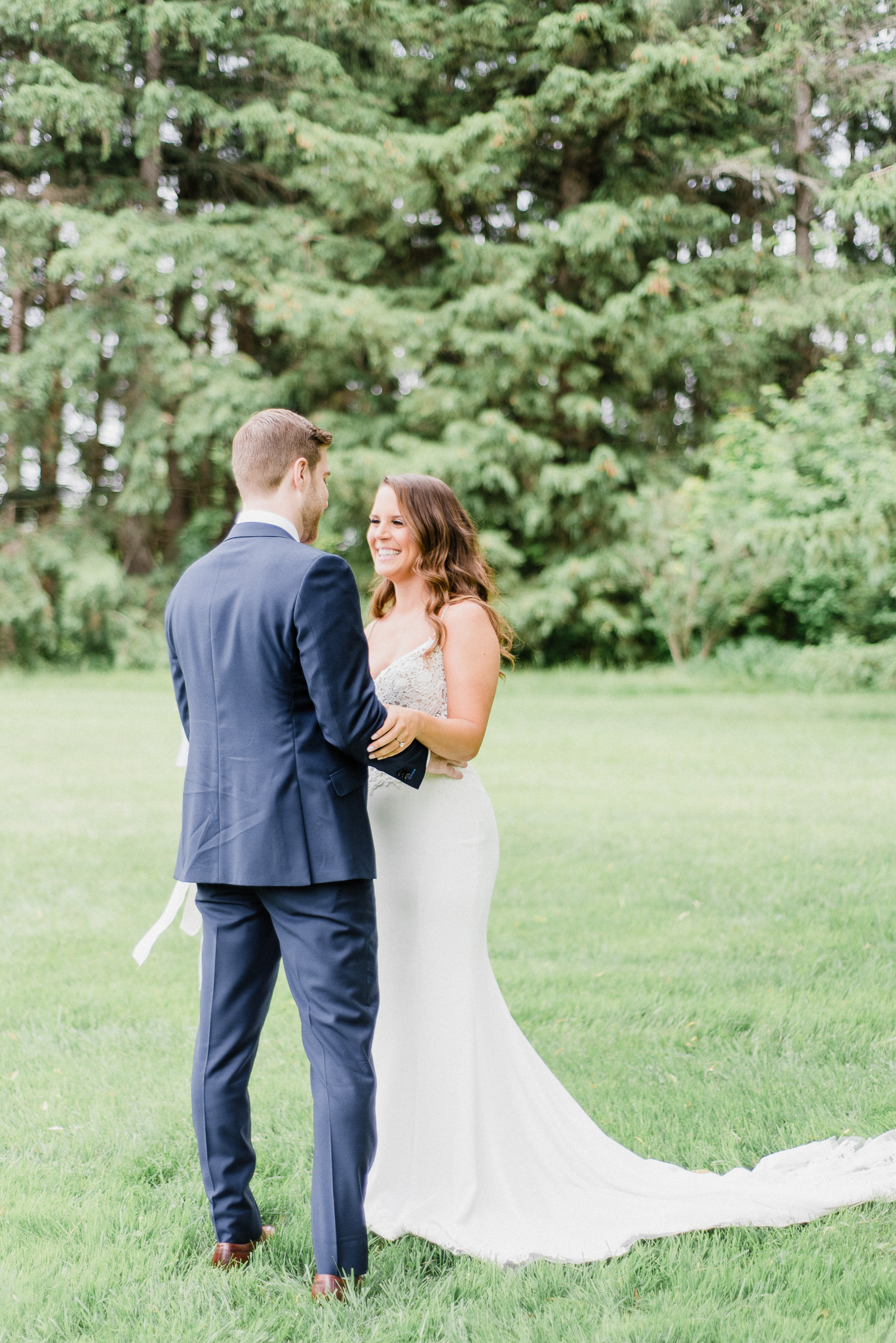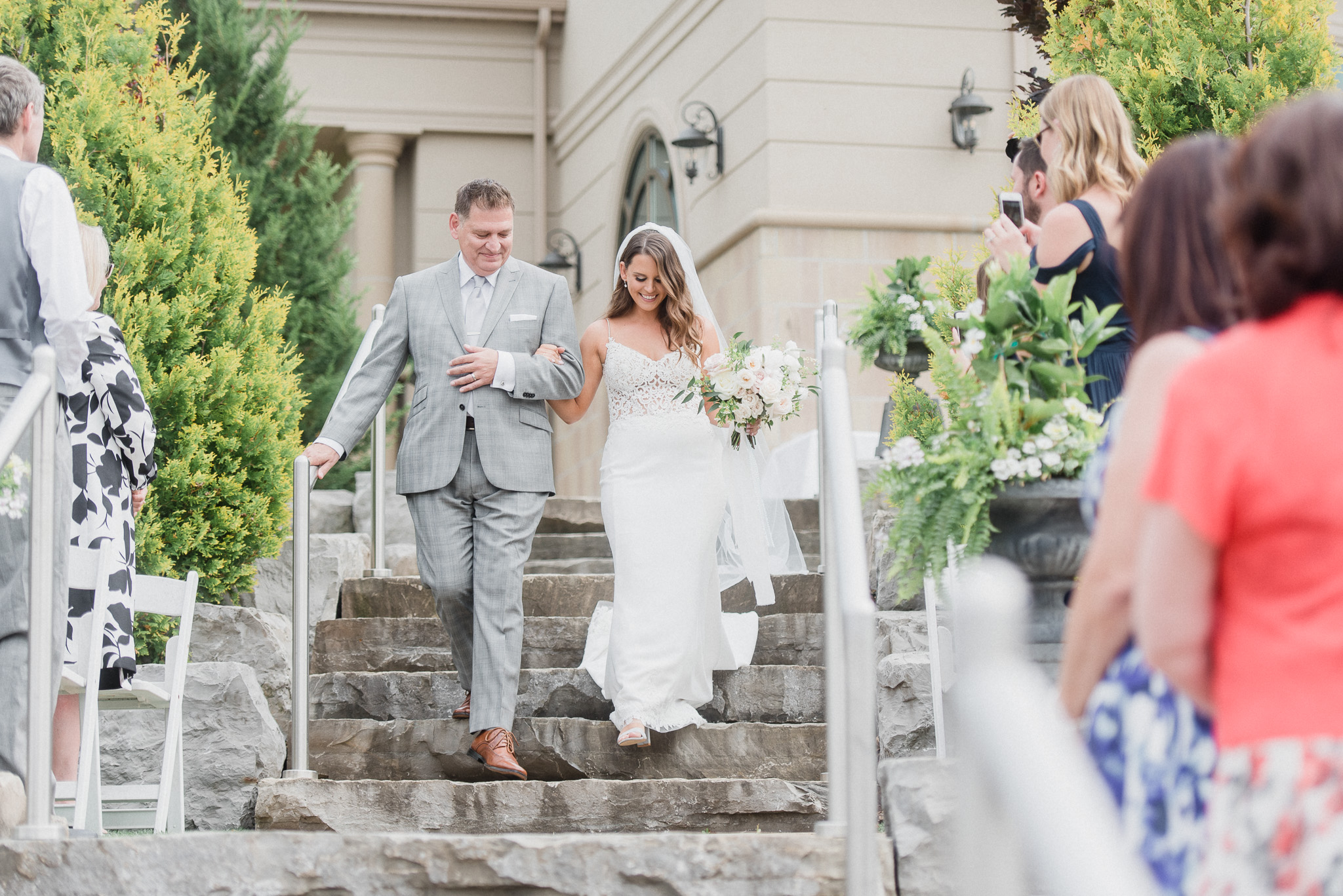 Now, onto our little chat about wedding day timelines. Kyla and Phil made a great choice and made sure to have a wedding planner on board, which is a huge step towards making sure your day goes smoothy and all the nitty gritty details can be handled by someone else on the day of. Jackie Penner Events and her associate Alicia did a magnificent job of handling the coordination of the day, and ensured everything looked perfect. They also took my requests and suggestions prior to the wedding in stride, making sure I had enough time to capture the memories and portraits that I knew Kyla and Phil wanted. Not all of my weddings have a planner to help them out with this, so that’s where I am happy to step in and assist in the timeline management! I certainly cannot do the job of a planner, but I love helping out pre-wedding to make sure we are setting ourselves up for success with a realistic timeline and one that allows my couples to really enjoy their day. Often, this means doing a First Look and portraits all before the ceremony. Kyla and Phil opted for this structure, and it meant that they could be at their entire cocktail hour and also to avoid feeling rushed on their big day. I could go on and on about First Looks and the advantages they offer, but I feel like I talk about it all the time so I won’t say anything more on that specifically! In the morning, as hair and makeup were wrapping up, I realized that Kyla was the last gal in the makeup chair and that things were starting to look a little tight on our ‘getting ready’ timeline. She still had about 10-15 minutes left of makeup, and we were due to be leaving in 25 minutes. We had wanted to get a photo of Kyla and her girls all in their matching robes and shirts once they were all done hair and makeup, but I knew we had to prioritize. We decided together to scrap that photo so we could maximize our time, and we instead got the bridesmaids all dressed and ready so we could quickly get Kyla dressed and have those nice moments with her girls and her parents. We even had enough time to grab a few quick portraits outside of her family home, in the beautiful greenery covered archway! We ended up leaving her parents’ house 15 minutes later than planned, but in the end I knew we didn’t need to stress because we had padded the timeline for portraits a bit and we still had hours until the ceremony. I think the main takeaway from an experience like this is that it’s important for couples to recognize that even with the most careful planning, things just happen and the timeline can start to run behind schedule, but we need to be flexible and make decisions on the fly sometimes. This obviously isn’t an extreme example but I’m confident that an even greater delay still could have been managed and dealt with, with very little added stress and we still would have had a wonderful wedding day!
