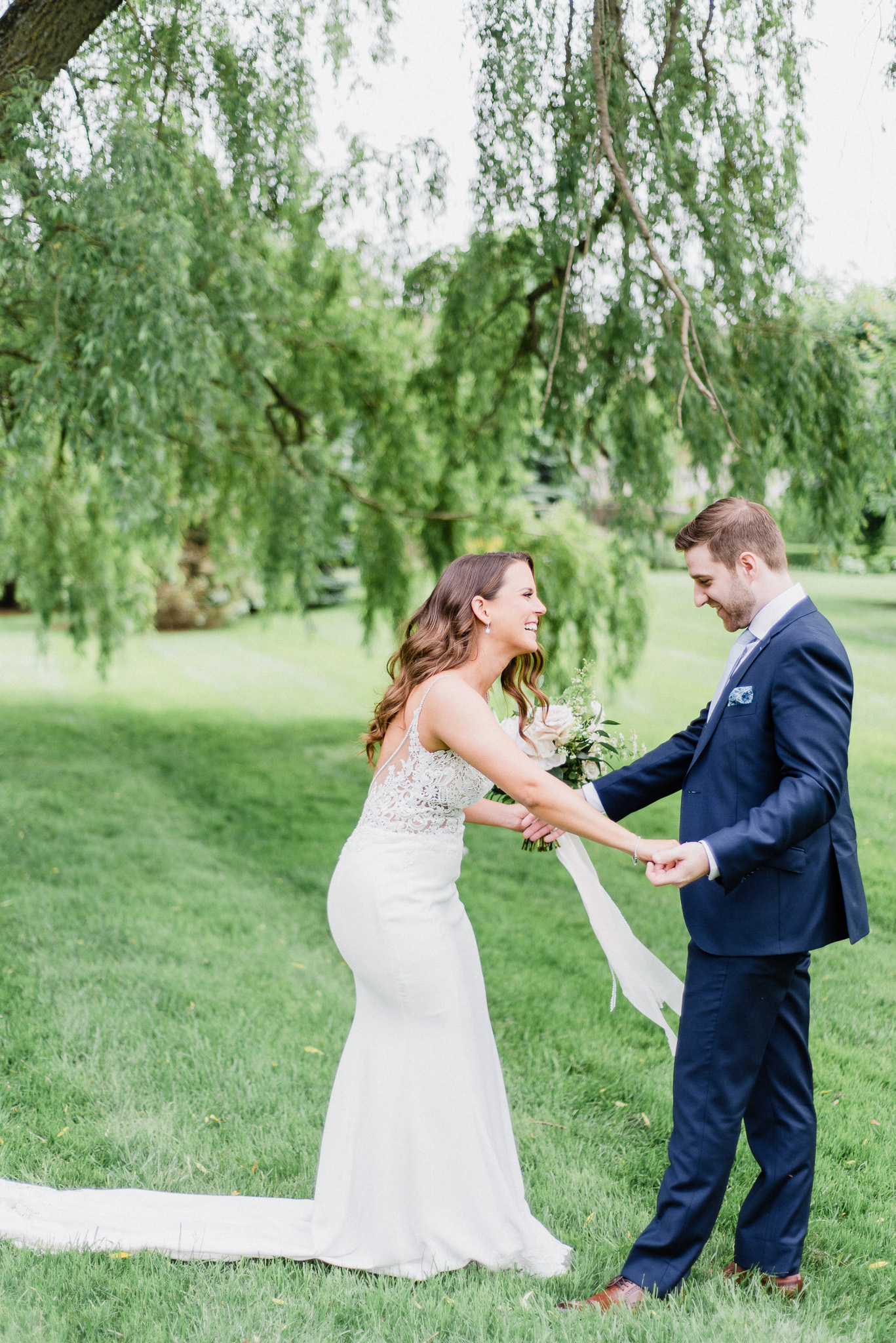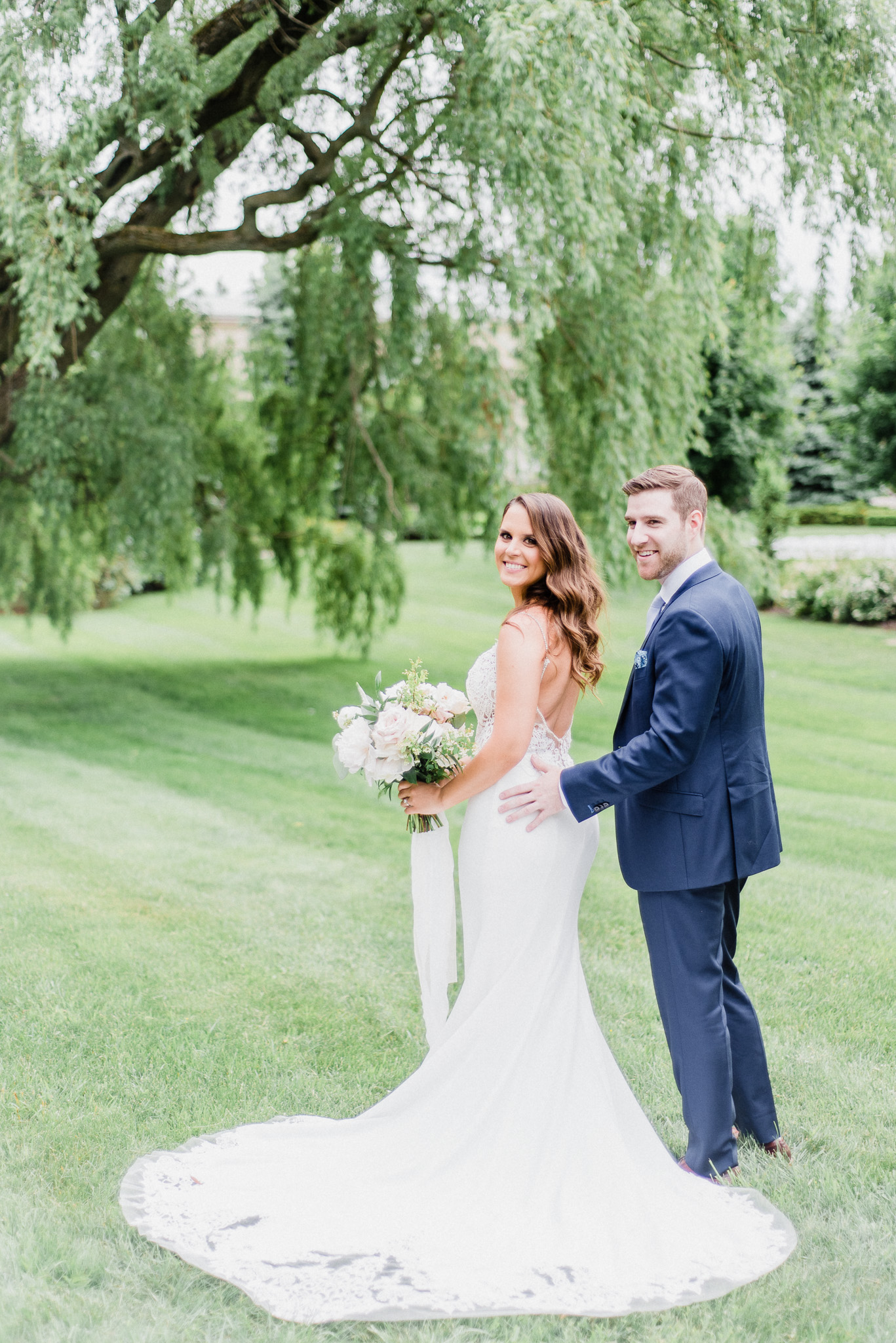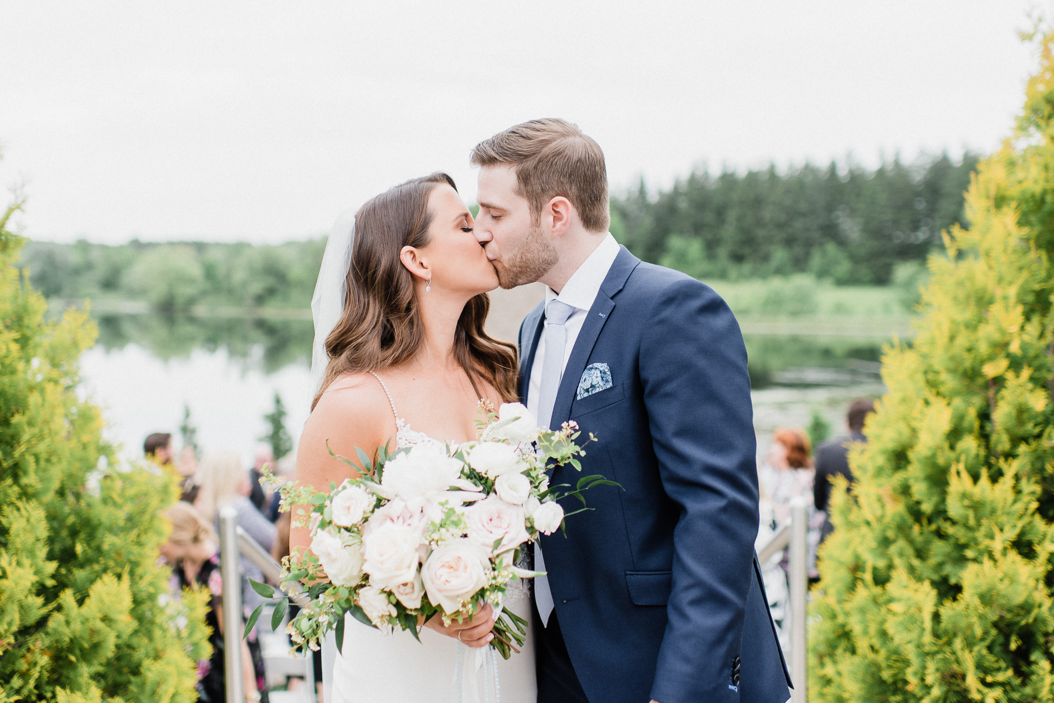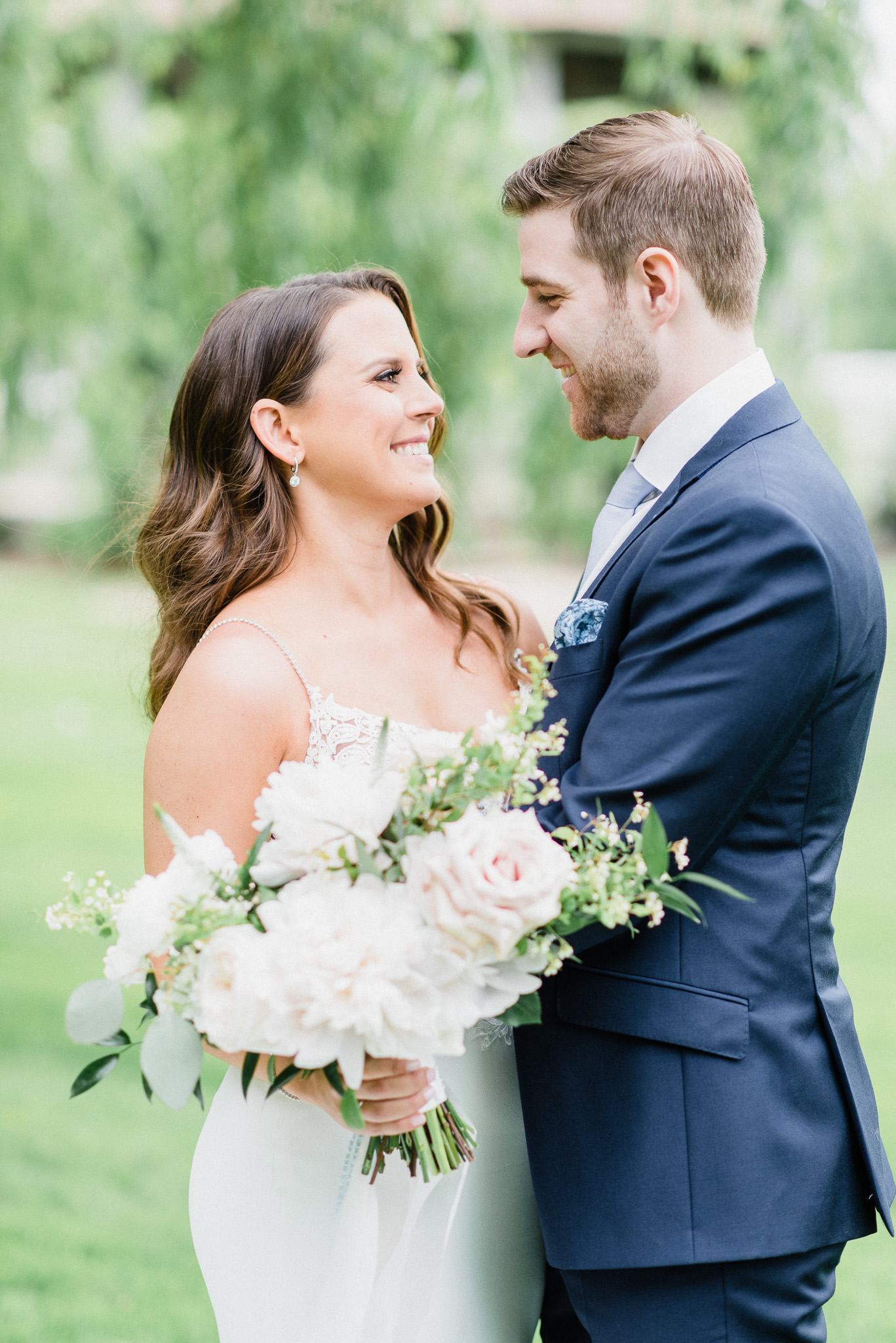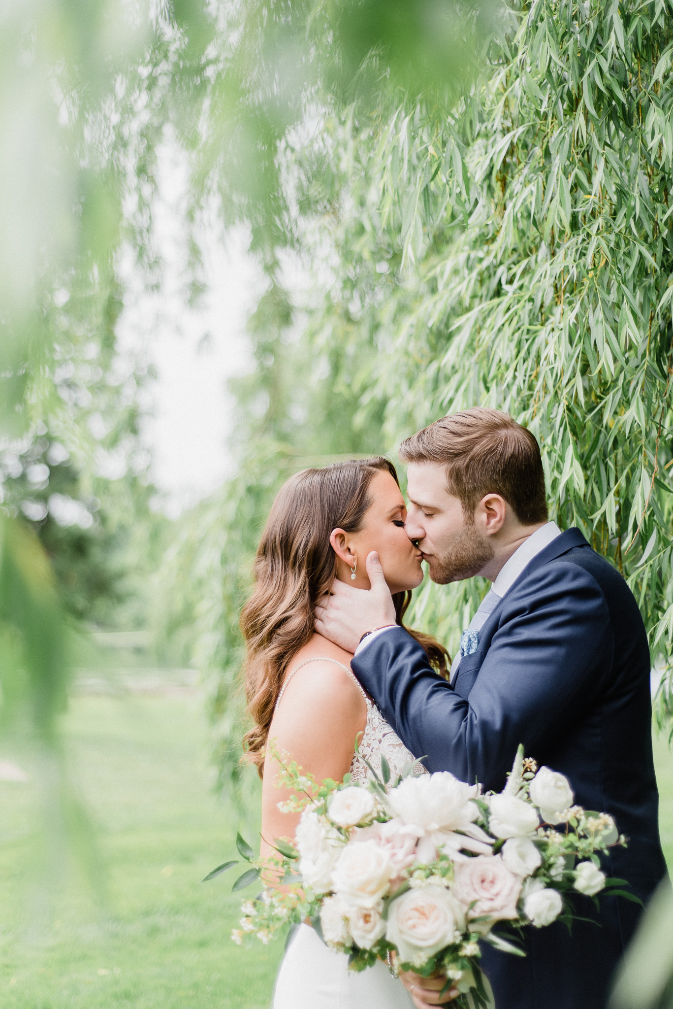 Now, onto our little chat about wedding day timelines. Kyla and Phil made a great choice and made sure to have a wedding planner on board, which is a huge step towards making sure your day goes smoothy and all the nitty gritty details can be handled by someone else on the day of. Jackie Penner Events and her associate Alicia did a magnificent job of handling the coordination of the day, and ensured everything looked perfect. They also took my requests and suggestions prior to the wedding in stride, making sure I had enough time to capture the memories and portraits that I knew Kyla and Phil wanted. Not all of my weddings have a planner to help them out with this, so that’s where I am happy to step in and assist in the timeline management! I certainly cannot do the job of a planner, but I love helping out pre-wedding to make sure we are setting ourselves up for success with a realistic timeline and one that allows my couples to really enjoy their day. Often, this means doing a First Look and portraits all before the ceremony. Kyla and Phil opted for this structure, and it meant that they could be at their entire cocktail hour and also to avoid feeling rushed on their big day. I could go on and on about First Looks and the advantages they offer, but I feel like I talk about it all the time so I won’t say anything more on that specifically! In the morning, as hair and makeup were wrapping up, I realized that Kyla was the last gal in the makeup chair and that things were starting to look a little tight on our ‘getting ready’ timeline. She still had about 10-15 minutes left of makeup, and we were due to be leaving in 25 minutes. We had wanted to get a photo of Kyla and her girls all in their matching robes and shirts once they were all done hair and makeup, but I knew we had to prioritize. We decided together to scrap that photo so we could maximize our time, and we instead got the bridesmaids all dressed and ready so we could quickly get Kyla dressed and have those nice moments with her girls and her parents. We even had enough time to grab a few quick portraits outside of her family home, in the beautiful greenery covered archway! We ended up leaving her parents’ house 15 minutes later than planned, but in the end I knew we didn’t need to stress because we had padded the timeline for portraits a bit and we still had hours until the ceremony. I think the main takeaway from an experience like this is that it’s important for couples to recognize that even with the most careful planning, things just happen and the timeline can start to run behind schedule, but we need to be flexible and make decisions on the fly sometimes. This obviously isn’t an extreme example but I’m confident that an even greater delay still could have been managed and dealt with, with very little added stress and we still would have had a wonderful wedding day!