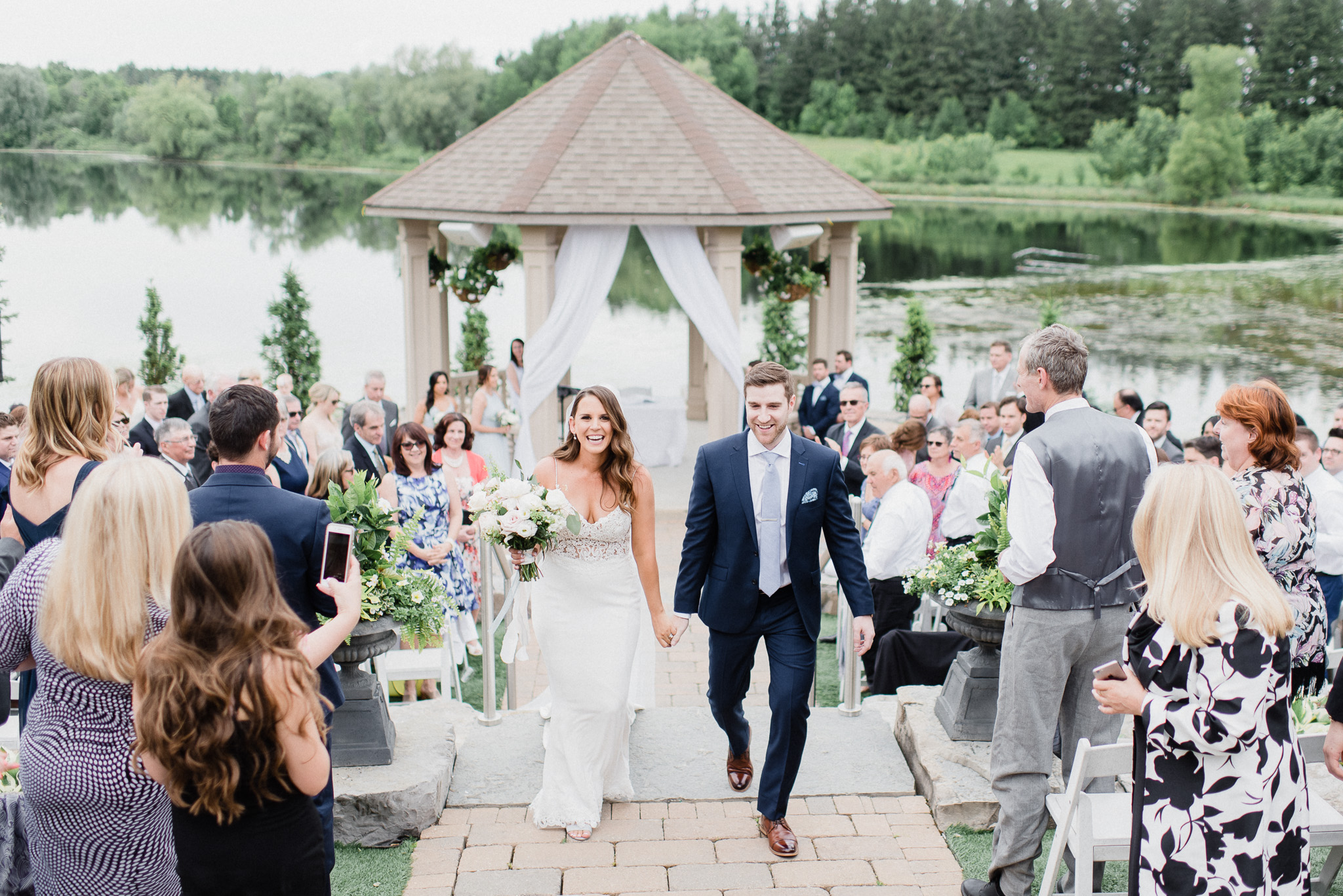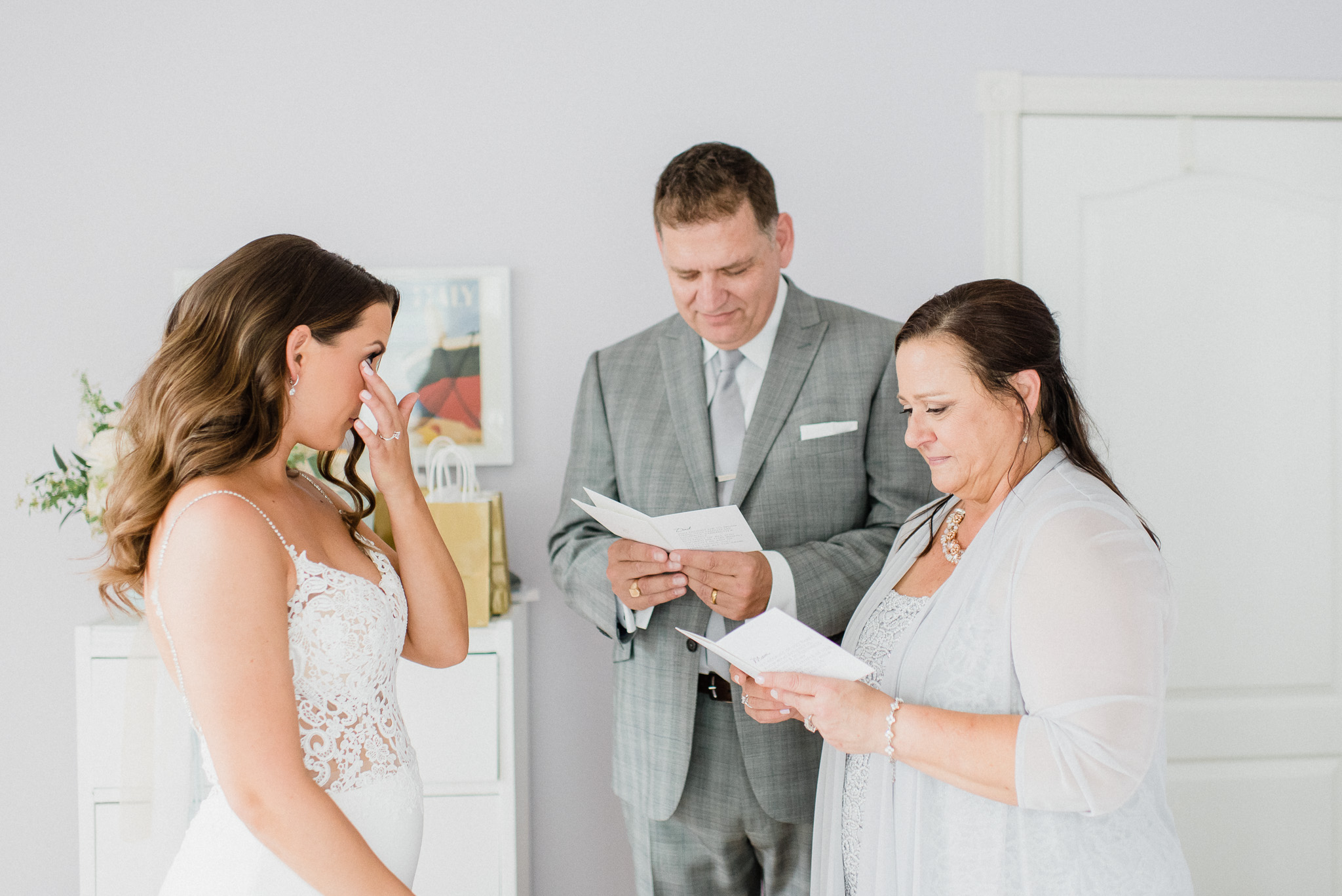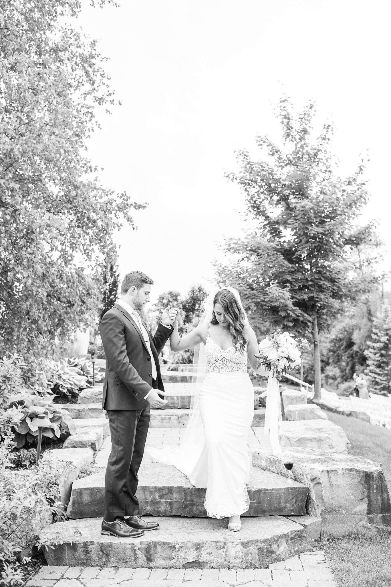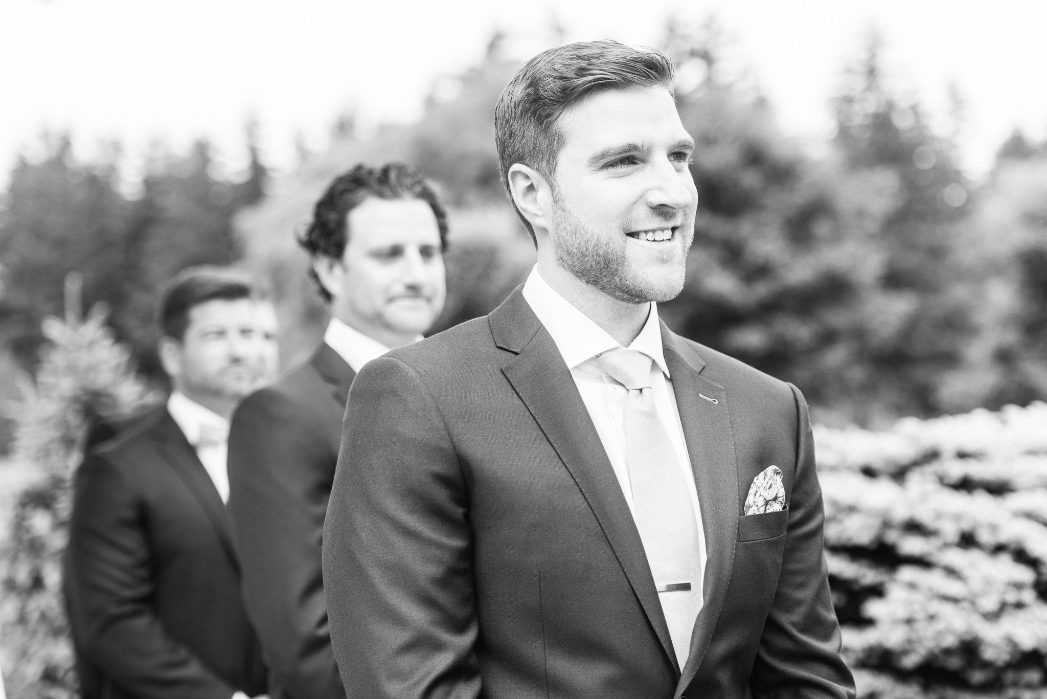 Now, onto our little chat about wedding day timelines. Kyla and Phil made a great choice and made sure to have a wedding planner on board, which is a huge step towards making sure your day goes smoothy and all the nitty gritty details can be handled by someone else on the day of. Jackie Penner Events and her associate Alicia did a magnificent job of handling the coordination of the day, and ensured everything looked perfect. They also took my requests and suggestions prior to the wedding in stride, making sure I had enough time to capture the memories and portraits that I knew Kyla and Phil wanted. Not all of my weddings have a planner to help them out with this, so that’s where I am happy to step in and assist in the timeline management! I certainly cannot do the job of a planner, but I love helping out pre-wedding to make sure we are setting ourselves up for success with a realistic timeline and one that allows my couples to really enjoy their day. Often, this means doing a First Look and portraits all before the ceremony. Kyla and Phil opted for this structure, and it meant that they could be at their entire cocktail hour and also to avoid feeling rushed on their big day. I could go on and on about First Looks and the advantages they offer, but I feel like I talk about it all the time so I won’t say anything more on that specifically! In the morning, as hair and makeup were wrapping up, I realized that Kyla was the last gal in the makeup chair and that things were starting to look a little tight on our ‘getting ready’ timeline. She still had about 10-15 minutes left of makeup, and we were due to be leaving in 25 minutes. We had wanted to get a photo of Kyla and her girls all in their matching robes and shirts once they were all done hair and makeup, but I knew we had to prioritize. We decided together to scrap that photo so we could maximize our time, and we instead got the bridesmaids all dressed and ready so we could quickly get Kyla dressed and have those nice moments with her girls and her parents. We even had enough time to grab a few quick portraits outside of her family home, in the beautiful greenery covered archway! We ended up leaving her parents’ house 15 minutes later than planned, but in the end I knew we didn’t need to stress because we had padded the timeline for portraits a bit and we still had hours until the ceremony. I think the main takeaway from an experience like this is that it’s important for couples to recognize that even with the most careful planning, things just happen and the timeline can start to run behind schedule, but we need to be flexible and make decisions on the fly sometimes. This obviously isn’t an extreme example but I’m confident that an even greater delay still could have been managed and dealt with, with very little added stress and we still would have had a wonderful wedding day!