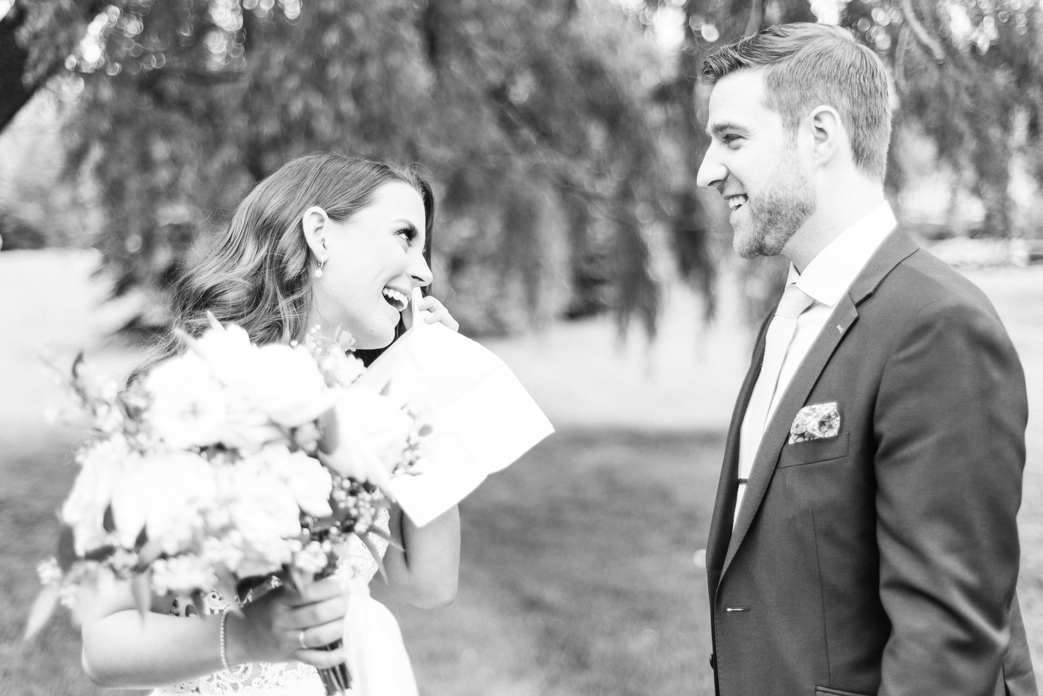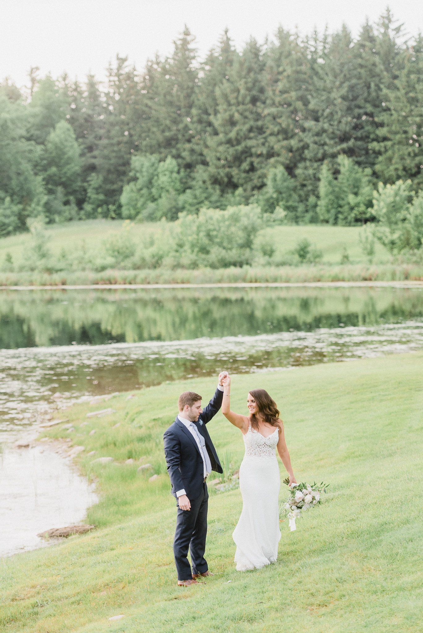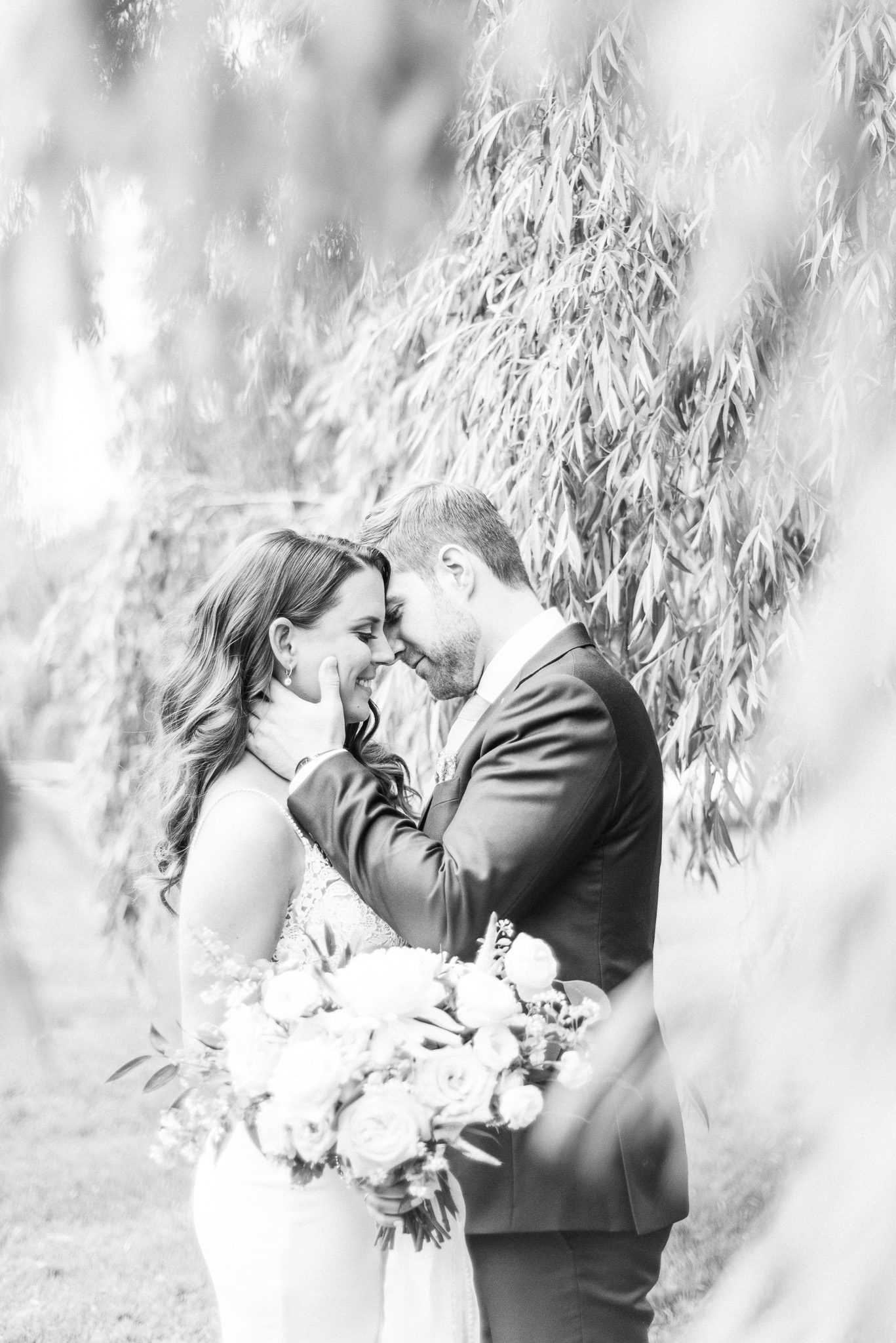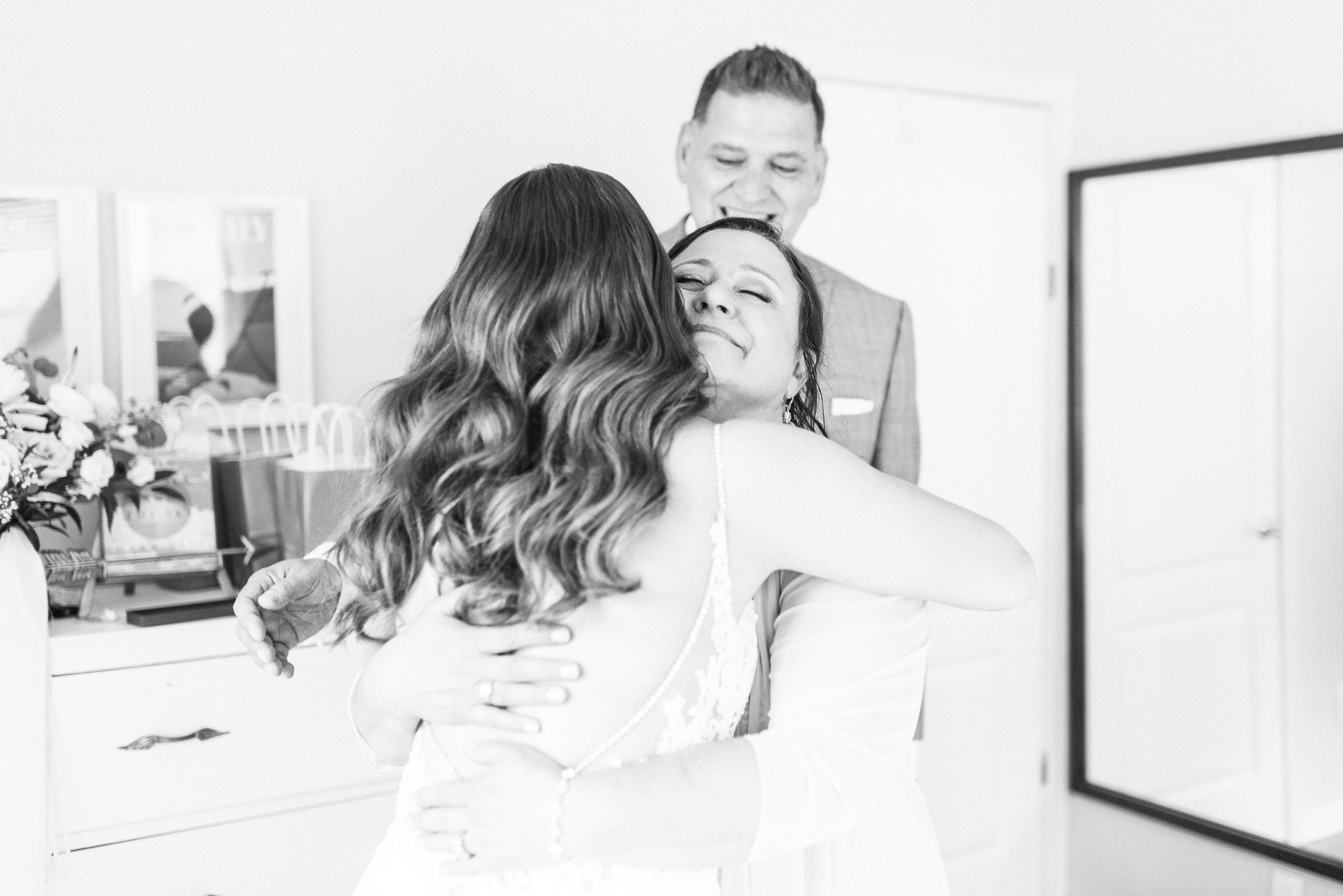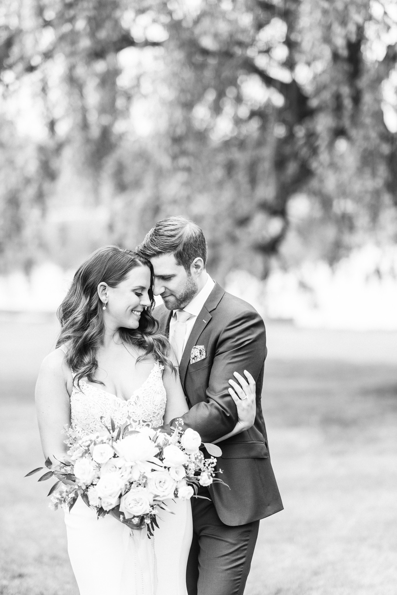 Now, onto our little chat about wedding day timelines. Kyla and Phil made a great choice and made sure to have a wedding planner on board, which is a huge step towards making sure your day goes smoothy and all the nitty gritty details can be handled by someone else on the day of. Jackie Penner Events and her associate Alicia did a magnificent job of handling the coordination of the day, and ensured everything looked perfect. They also took my requests and suggestions prior to the wedding in stride, making sure I had enough time to capture the memories and portraits that I knew Kyla and Phil wanted. Not all of my weddings have a planner to help them out with this, so that’s where I am happy to step in and assist in the timeline management! I certainly cannot do the job of a planner, but I love helping out pre-wedding to make sure we are setting ourselves up for success with a realistic timeline and one that allows my couples to really enjoy their day. Often, this means doing a First Look and portraits all before the ceremony. Kyla and Phil opted for this structure, and it meant that they could be at their entire cocktail hour and also to avoid feeling rushed on their big day. I could go on and on about First Looks and the advantages they offer, but I feel like I talk about it all the time so I won’t say anything more on that specifically! In the morning, as hair and makeup were wrapping up, I realized that Kyla was the last gal in the makeup chair and that things were starting to look a little tight on our ‘getting ready’ timeline. She still had about 10-15 minutes left of makeup, and we were due to be leaving in 25 minutes. We had wanted to get a photo of Kyla and her girls all in their matching robes and shirts once they were all done hair and makeup, but I knew we had to prioritize. We decided together to scrap that photo so we could maximize our time, and we instead got the bridesmaids all dressed and ready so we could quickly get Kyla dressed and have those nice moments with her girls and her parents. We even had enough time to grab a few quick portraits outside of her family home, in the beautiful greenery covered archway! We ended up leaving her parents’ house 15 minutes later than planned, but in the end I knew we didn’t need to stress because we had padded the timeline for portraits a bit and we still had hours until the ceremony. I think the main takeaway from an experience like this is that it’s important for couples to recognize that even with the most careful planning, things just happen and the timeline can start to run behind schedule, but we need to be flexible and make decisions on the fly sometimes. This obviously isn’t an extreme example but I’m confident that an even greater delay still could have been managed and dealt with, with very little added stress and we still would have had a wonderful wedding day!