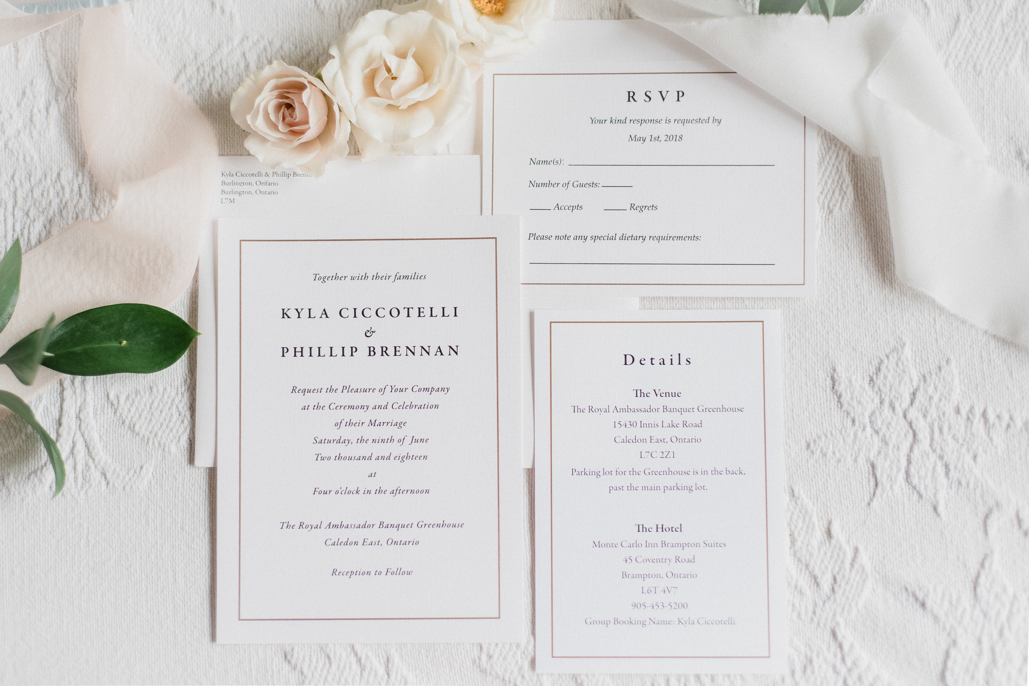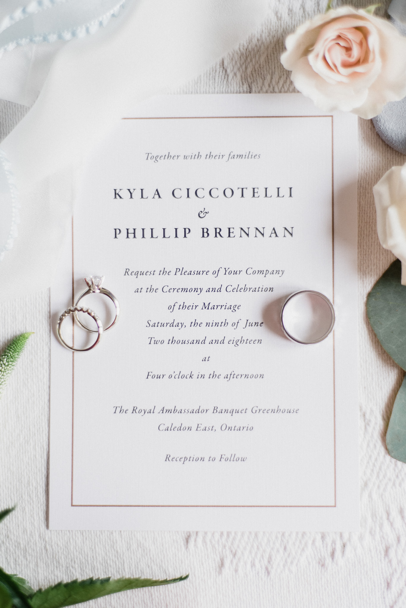 Planning + Coordination: Jackie Penner Events | Florals: Mint and Magnolia Floral Design Co. | Makeup: Beauty by Alana | Hair: Hair by Day Inc. | Cake: Kyla’s Mom Mara! | Signage + Invitation Suite: Safari Marketing Communications Inc. | Cocktail Hour Jazz: Frank Adriano, 12 String Music | Dinner + Dance Music: Box Social | Officiant: Kelley Potter, Celebrant | Bridal Gown: Enzoani, Promises and Lace | Bridesmaid Gowns: The Dessy Group from Promises and Lace | Suits: Moores | Rings: Ryan Daniels Jewellery Design | Venue: The Royal Ambassador Event Centre