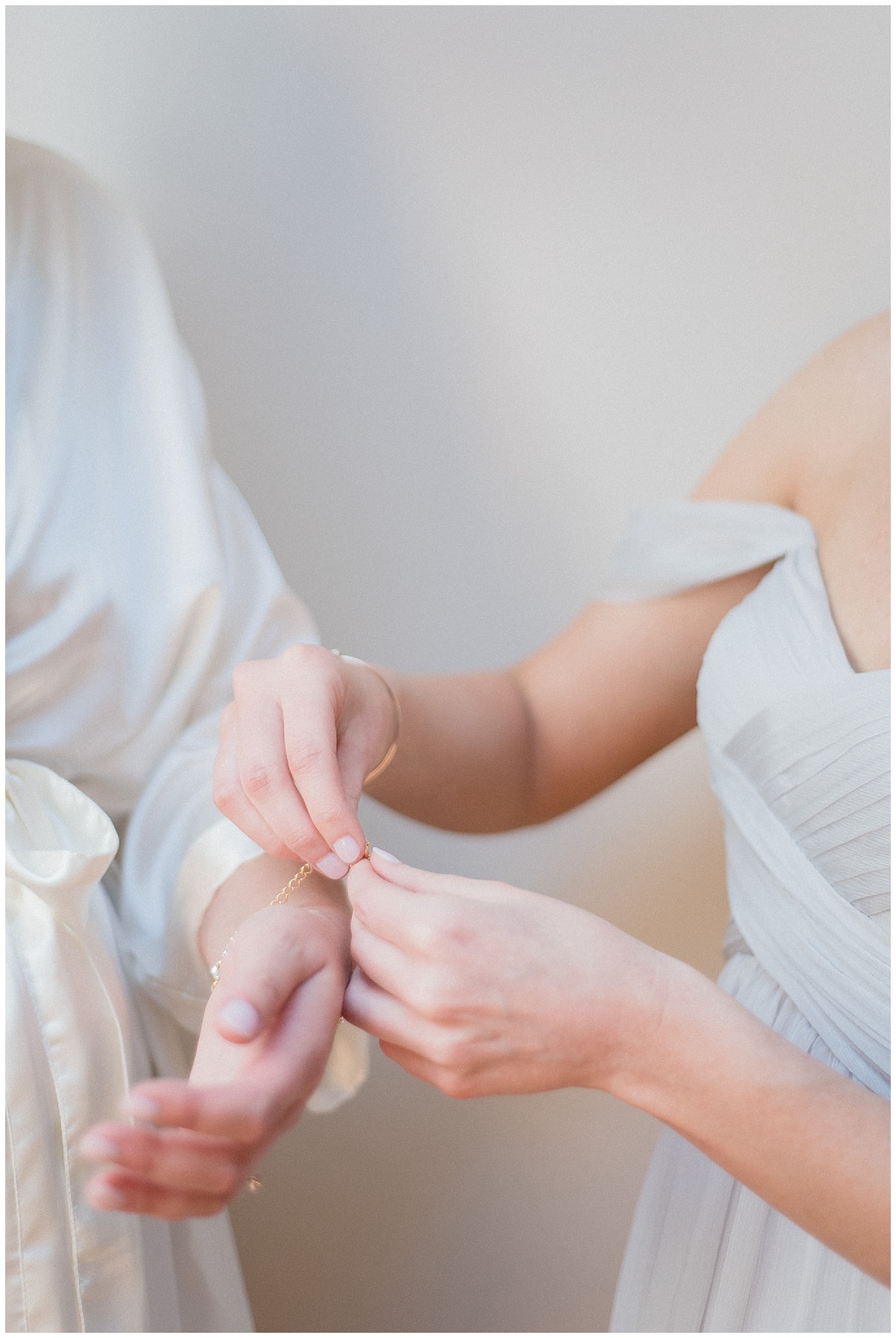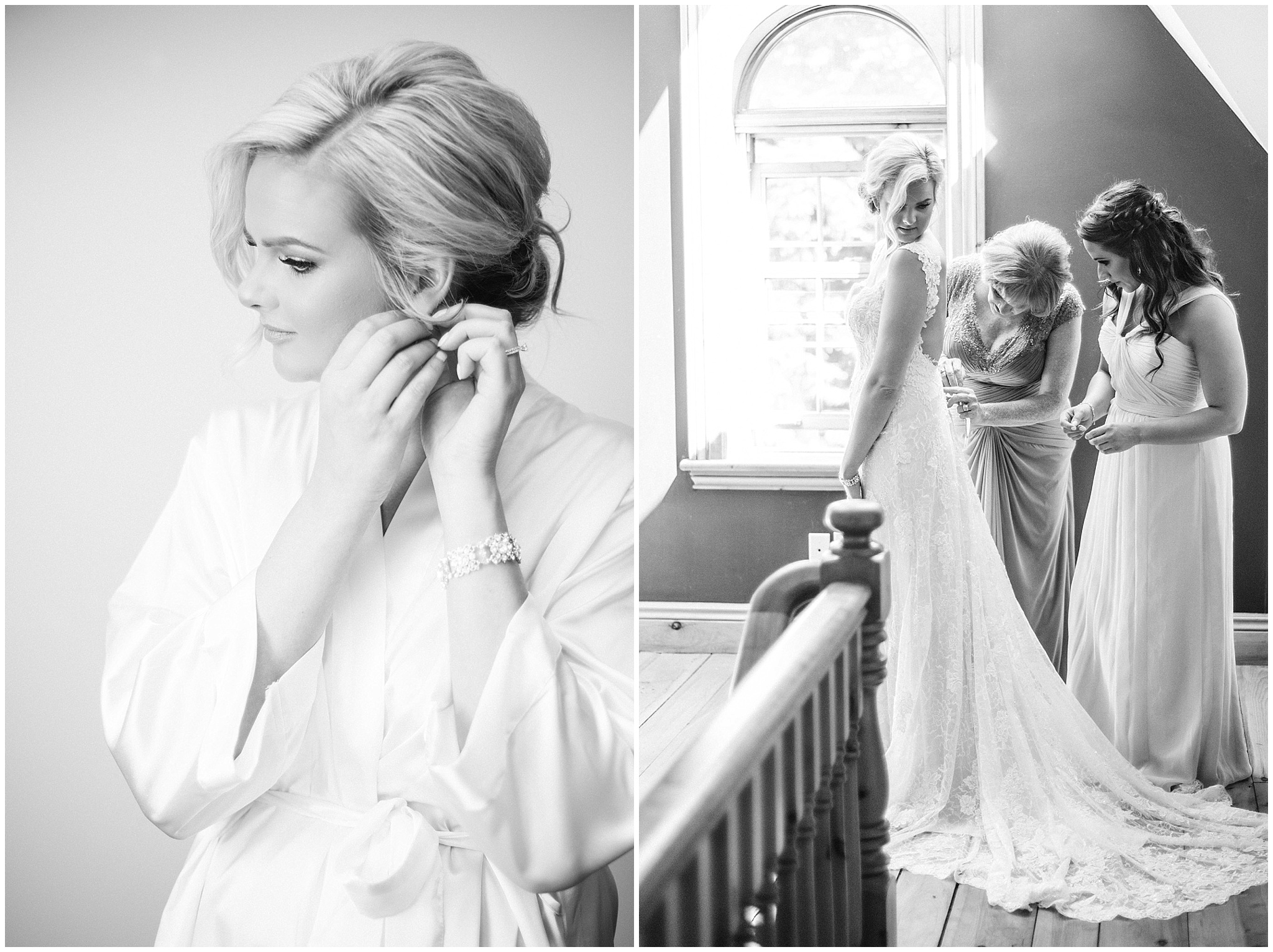 The last few moments before heading down the aisle, Christine’s ladies helping her get prepped!