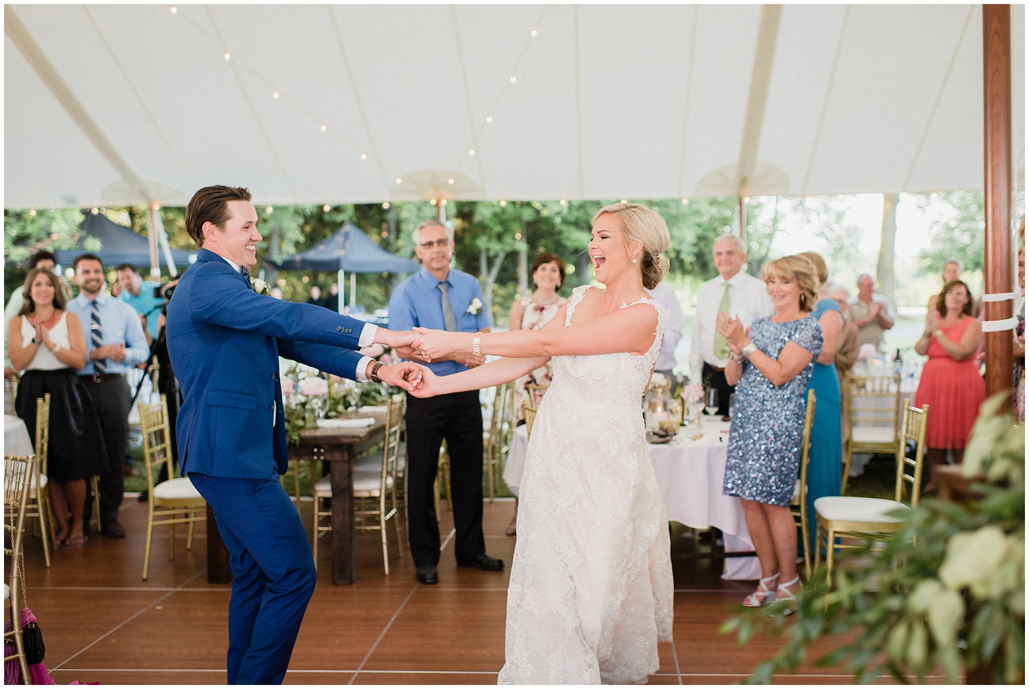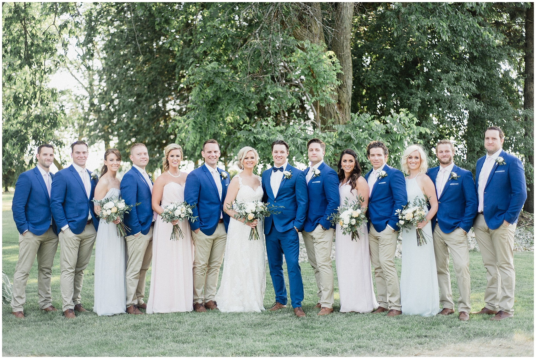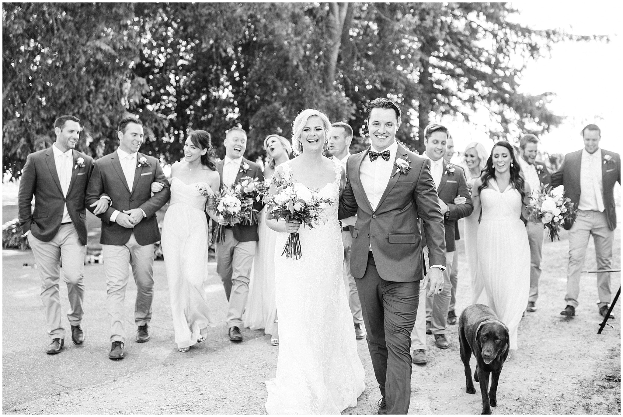 Christine and Dean pulled together the most incredible tent wedding on Dean’s Dad’s farm in Guelph, Ontario. Rustic hand tied florals, garlands on harvest tables, a ceremony on the lawn under some beautiful trees, I could go on! But more importantly- they surrounded themselves with their nearest and dearest (and a bridal party that was ready to party!) and had a beautiful day to kickstart their marriage. Their cute as heck chocolate lab pup walked with Dean down the aisle, and the sweetest post-ceremony moment I’ve ever witnessed happened as soon as Christine and Dean were on their own for the first time as husband and wife (scroll down to see what I’m talking about!)