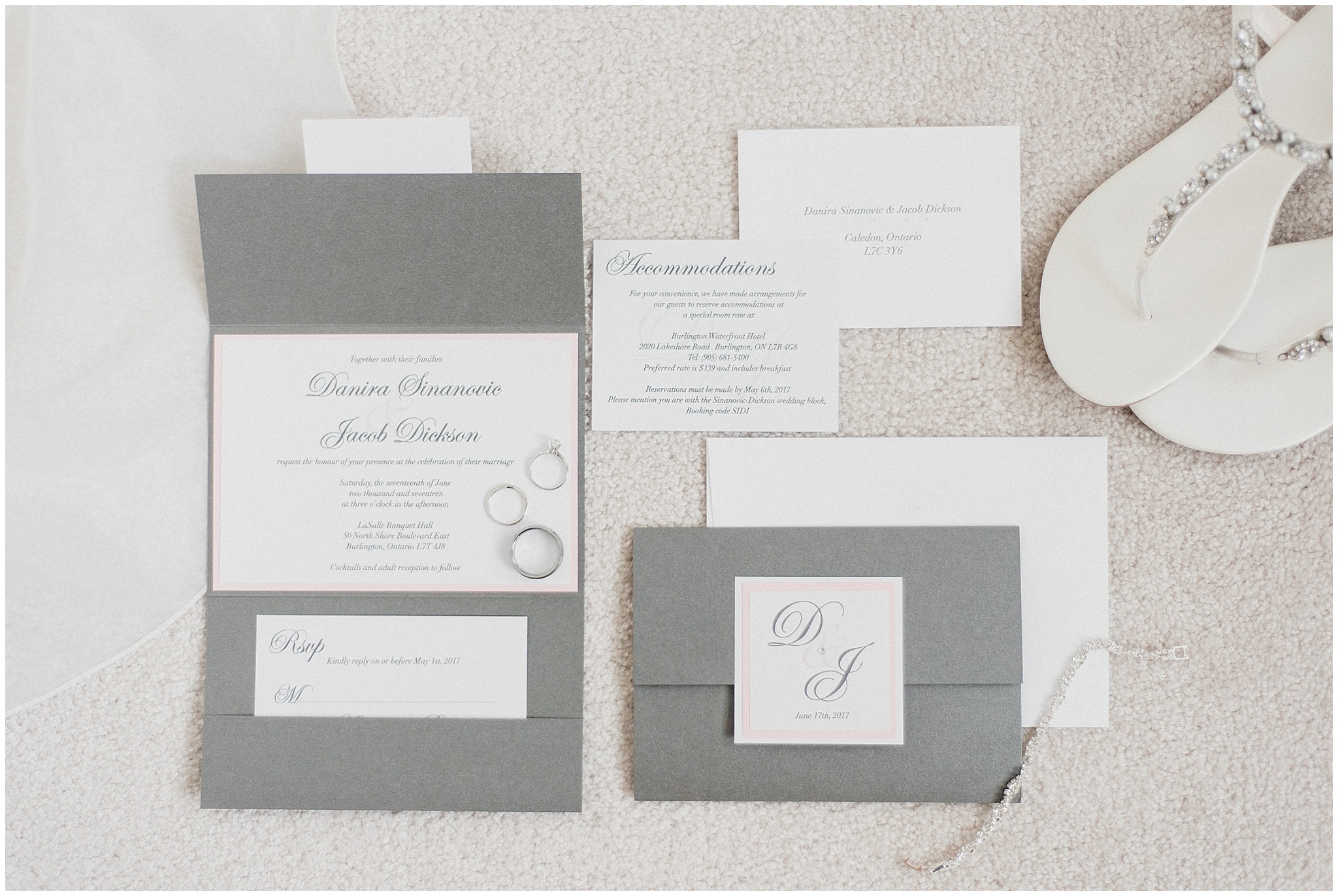 Pink and grey invitation suite by Jenn Kavanagh Photography