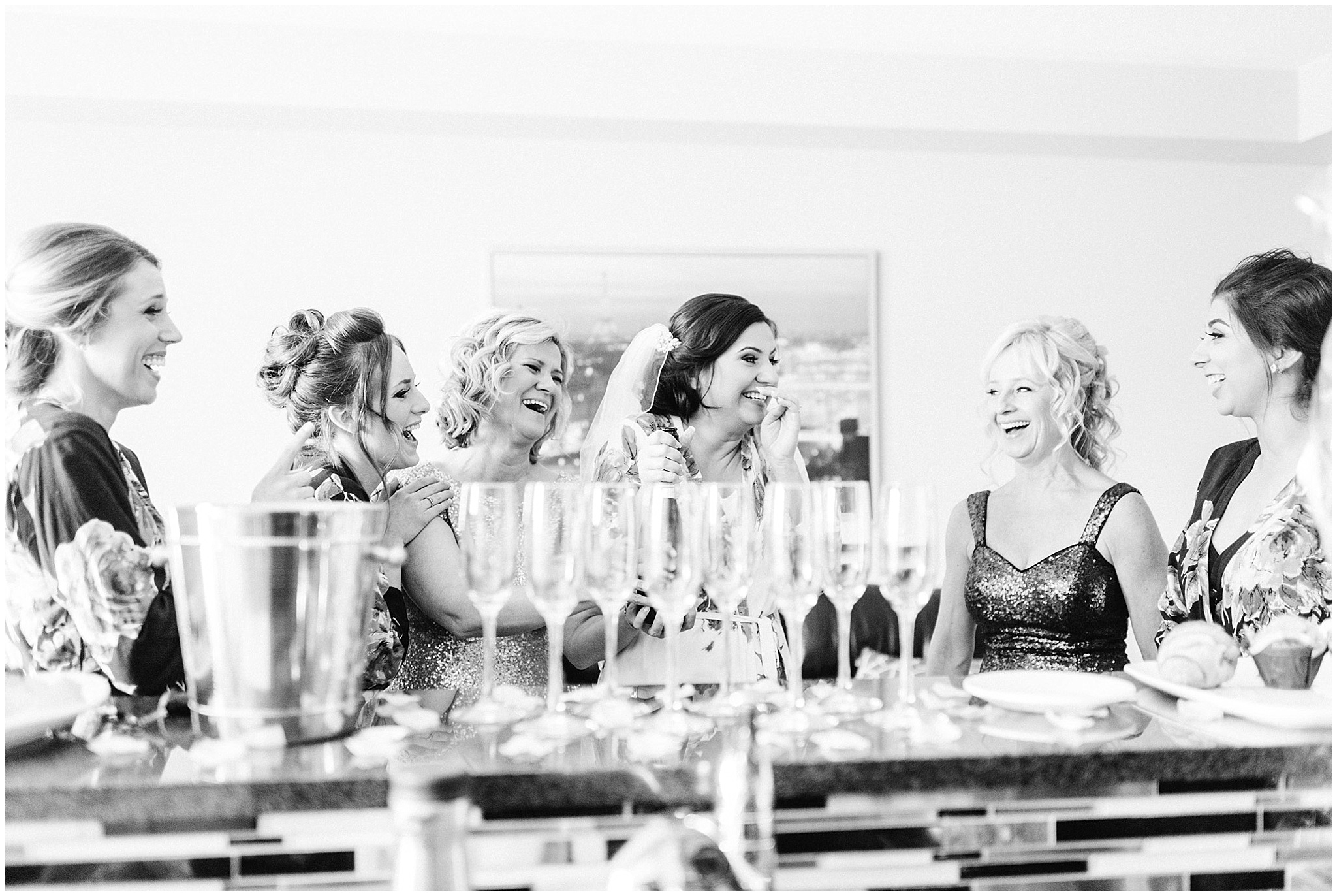 Bride and bridesmaids popping champagne by Jenn Kavanagh Photography