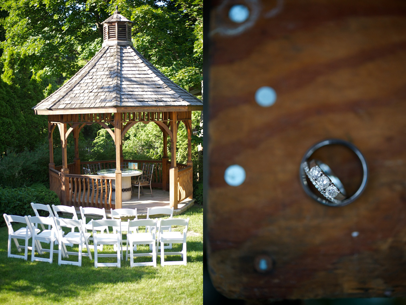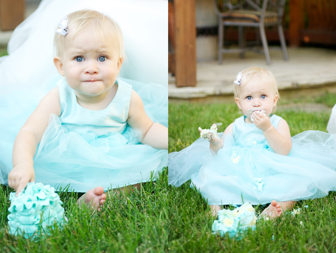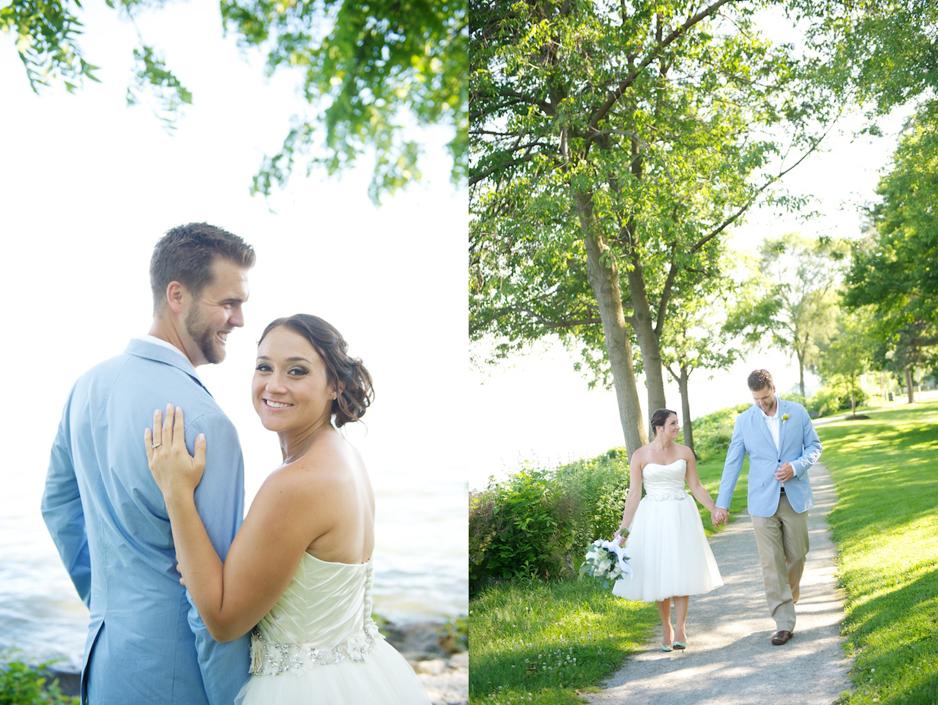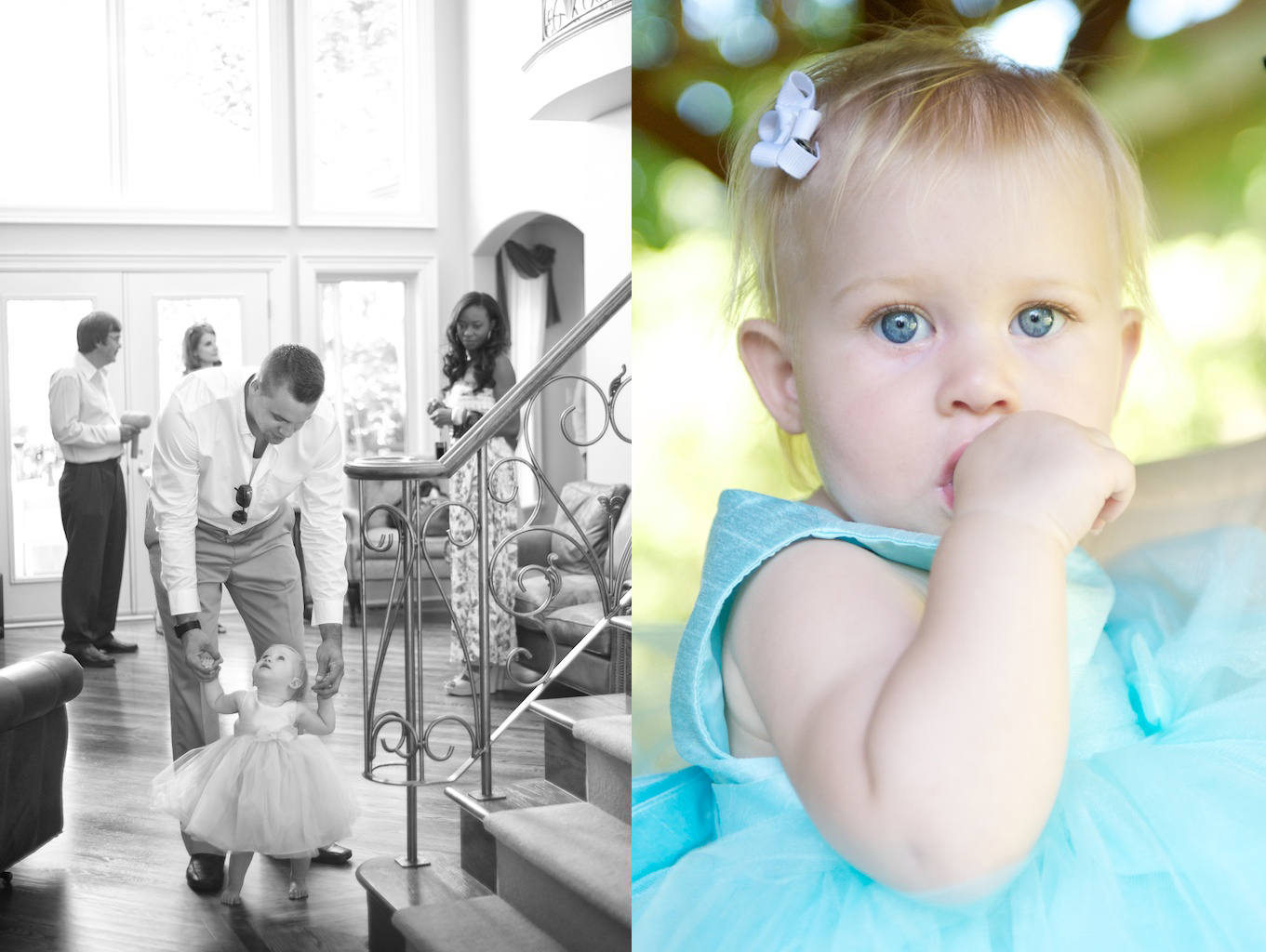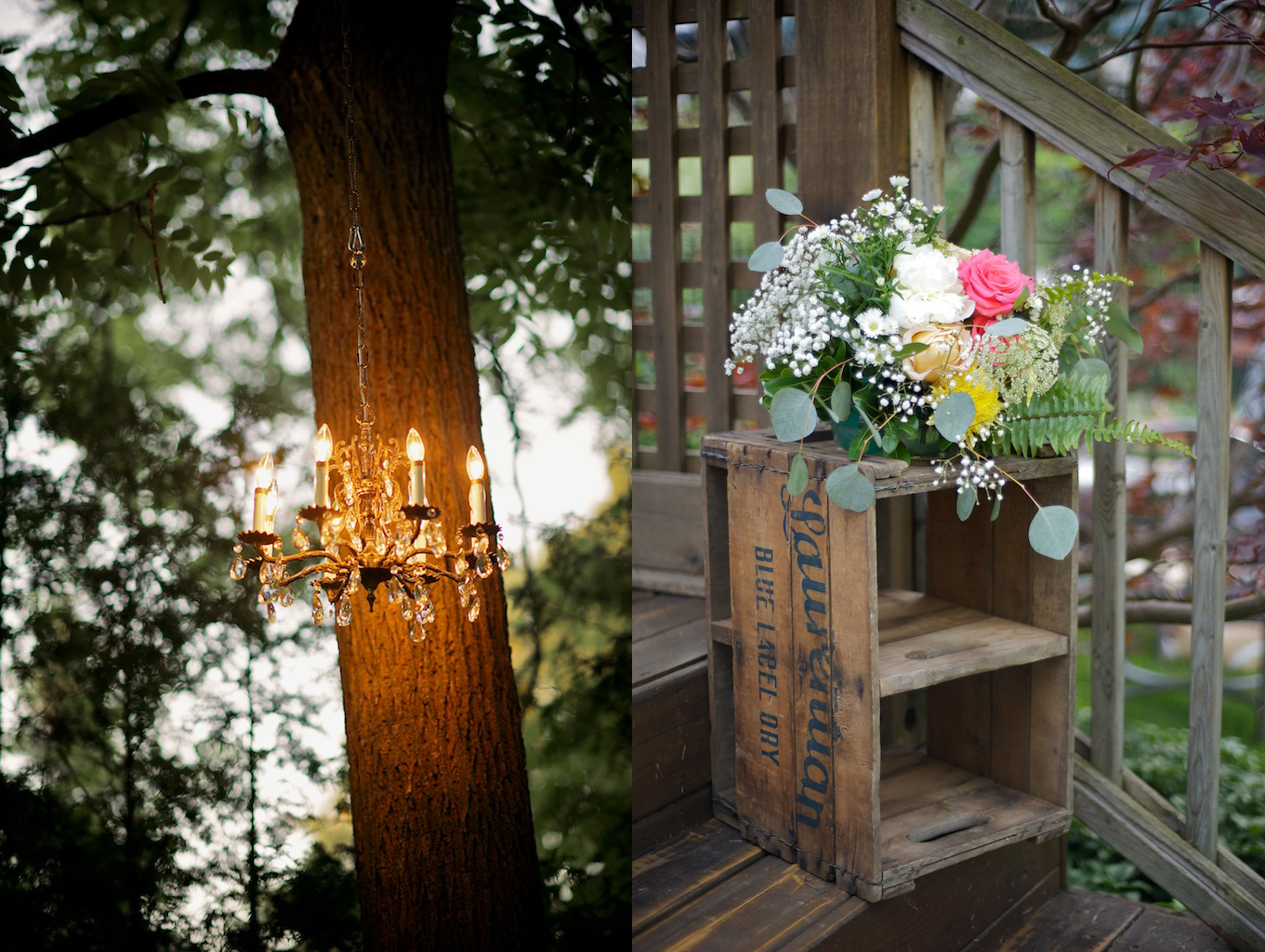 I had been looking forward to Stephanie and Chris’ wedding for months. All along, their closest friends and family thought they’d be celebrating their daughter Evi’s 1st birthday, all the while Steph and Chris has been planning to surprise them with a wedding celebration instead. The day turned out beautifully- I am such a fan of these kinds of weddings! Hosted in Steph’s parents’ backyard, the day was thoughtfully planned out and styled by the uber talented KJ & Co, and Hamilton based Niche Catering kept everyone satisfied with their tasty apps. Pretty in Pink did a great job getting Steph’s hair and makeup ready for her big day, and Setting Stylist made sure she had a beautiful bouquet in hand. Steph wore a beautiful cocktail length Alfred Sung dress, and her mint and gold Kate Spade shoes were the inspiration for the colour palette for the whole day. The happy couple opted to do a First Look, which worked out fabulously because it allowed them to get rid of their pre-ceremony jitters, and it gave us the chance to sneak out of the house to do some photos while the guests were arriving. The ceremony was so special- all of their closest friends and family stood and watched in a circle as Steph and Chris said their tearful vows. The look on Chris’ face (and his brother’s!) as Steph was walking towards him says it all! After Evi had her 1st birthday cake smash, the evening was spent outside with cocktails and hilarious speeches, a chandelier twinkling in the trees and lots of kids running around with bubbles. And of course, lots of love!