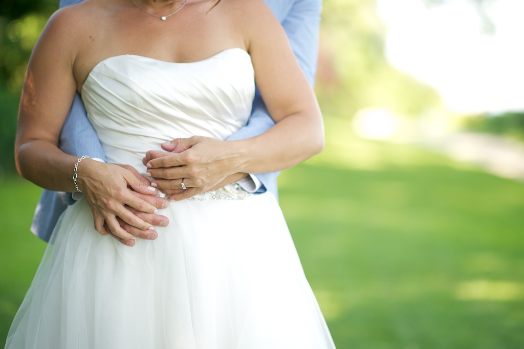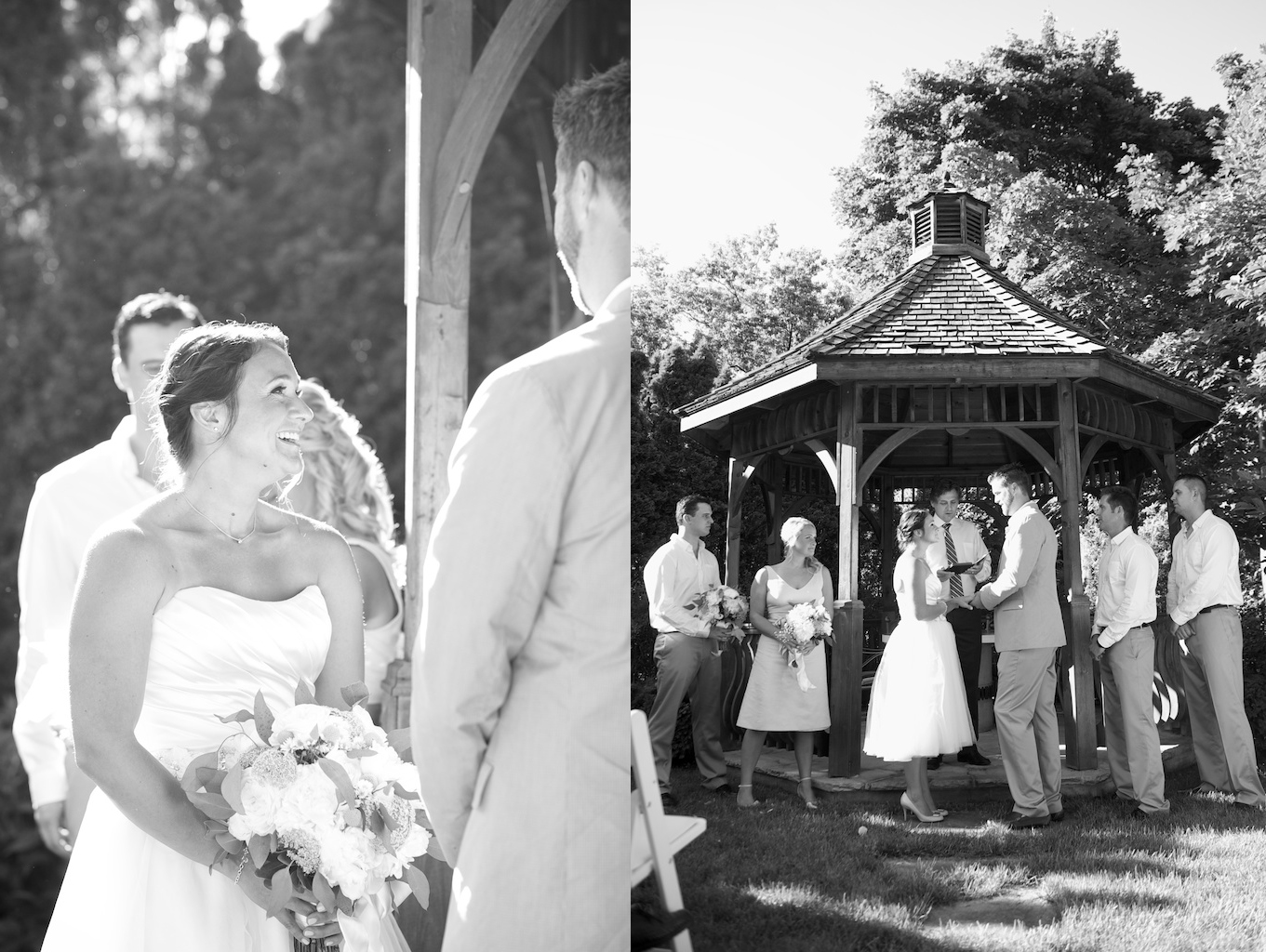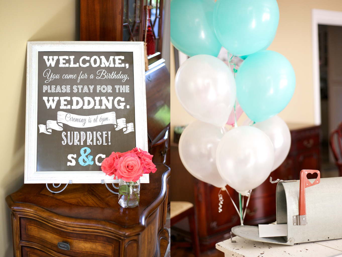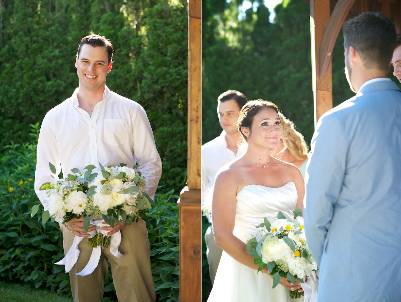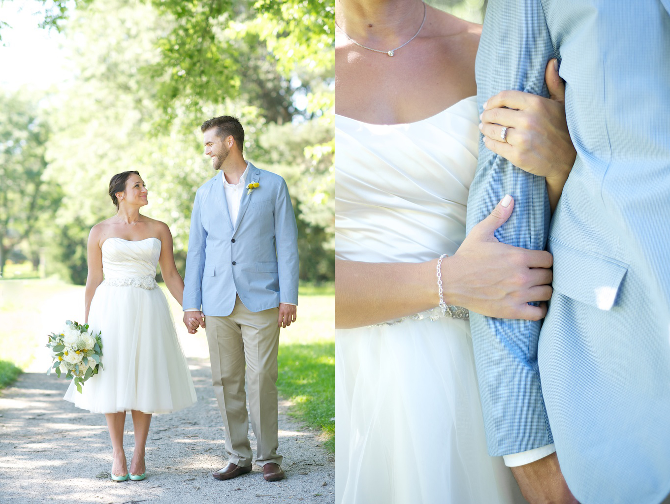 I had been looking forward to Stephanie and Chris’ wedding for months. All along, their closest friends and family thought they’d be celebrating their daughter Evi’s 1st birthday, all the while Steph and Chris has been planning to surprise them with a wedding celebration instead. The day turned out beautifully- I am such a fan of these kinds of weddings! Hosted in Steph’s parents’ backyard, the day was thoughtfully planned out and styled by the uber talented KJ & Co, and Hamilton based Niche Catering kept everyone satisfied with their tasty apps. Pretty in Pink did a great job getting Steph’s hair and makeup ready for her big day, and Setting Stylist made sure she had a beautiful bouquet in hand. Steph wore a beautiful cocktail length Alfred Sung dress, and her mint and gold Kate Spade shoes were the inspiration for the colour palette for the whole day. The happy couple opted to do a First Look, which worked out fabulously because it allowed them to get rid of their pre-ceremony jitters, and it gave us the chance to sneak out of the house to do some photos while the guests were arriving. The ceremony was so special- all of their closest friends and family stood and watched in a circle as Steph and Chris said their tearful vows. The look on Chris’ face (and his brother’s!) as Steph was walking towards him says it all! After Evi had her 1st birthday cake smash, the evening was spent outside with cocktails and hilarious speeches, a chandelier twinkling in the trees and lots of kids running around with bubbles. And of course, lots of love!