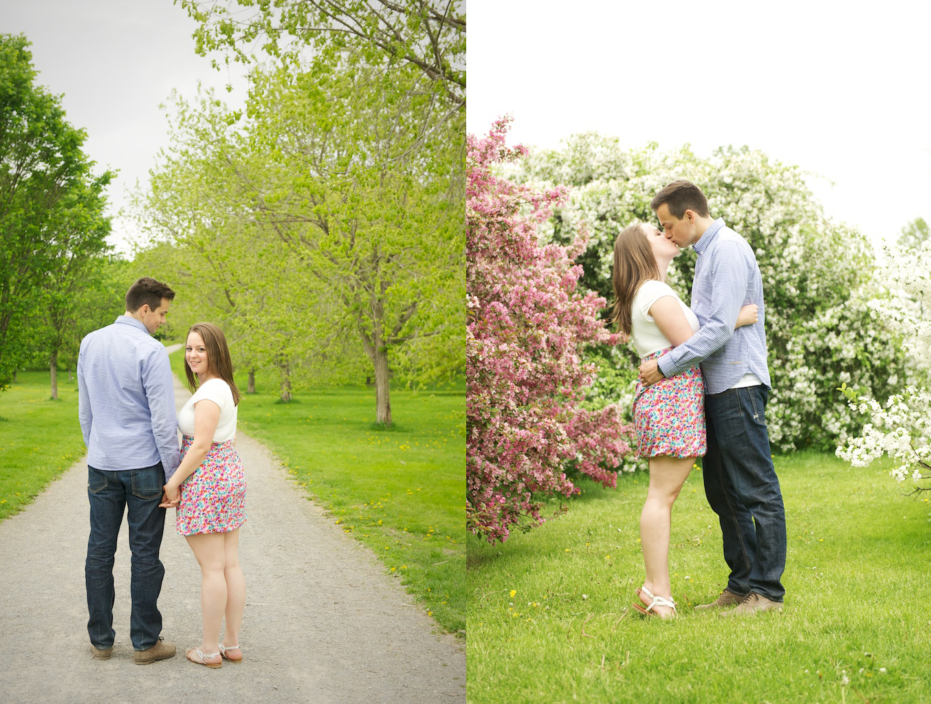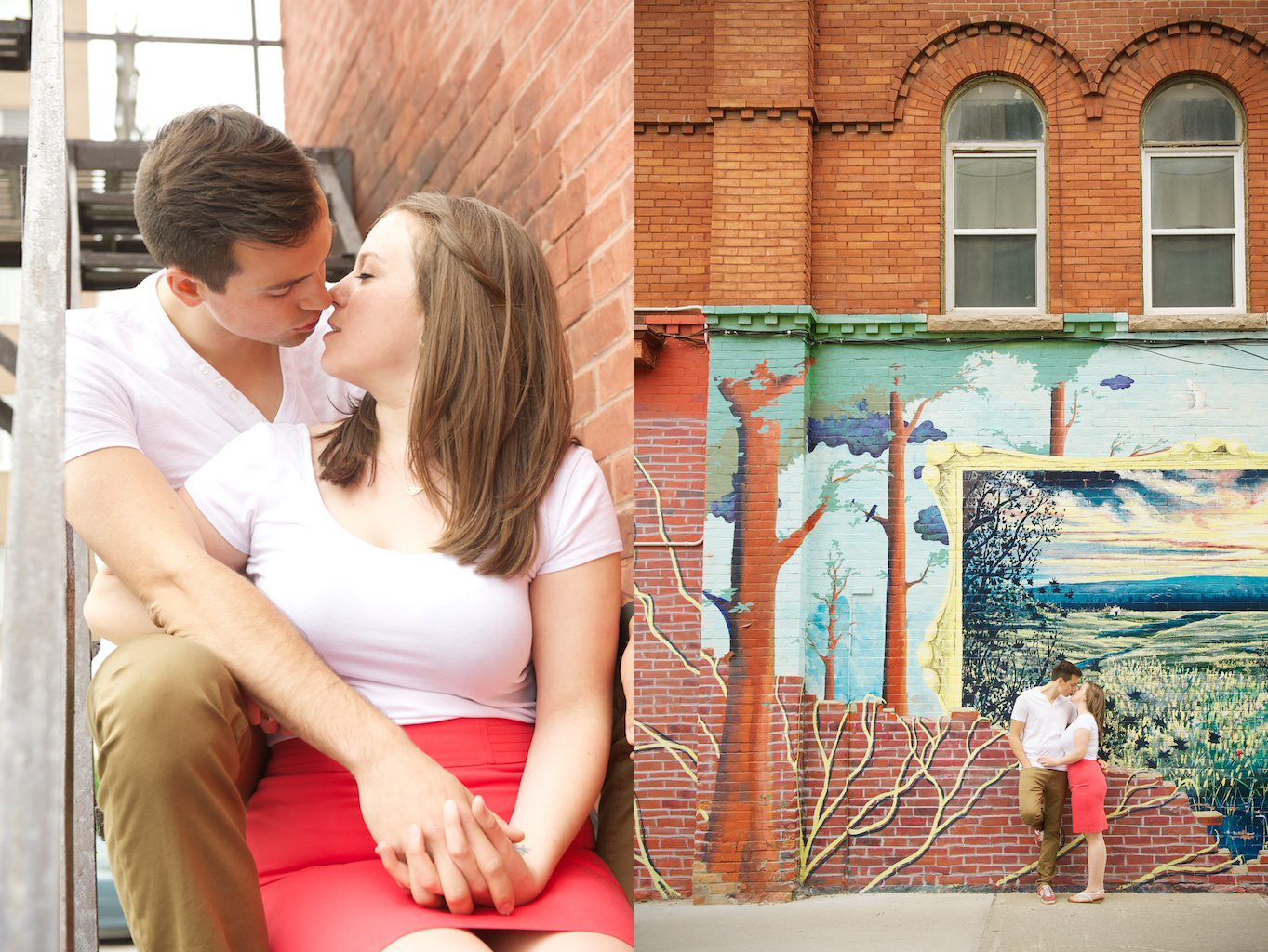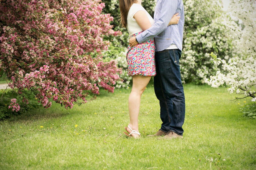 Steph and Lance are one more couple that I’ll be making the road trip back to Ottawa for their wedding in September, and I can’t wait! This engagement session had it all- blossoms on the trees, their dog Max that looks just like my dog, and plenty of good old fashioned love! There was even a kite but Lance wasn’t impressed with the idea of ‘pretending’ to fly it near the trees. At the end of our session, we stopped by their very first apartment and took some photos in front of the mural- I was loving all the colours!