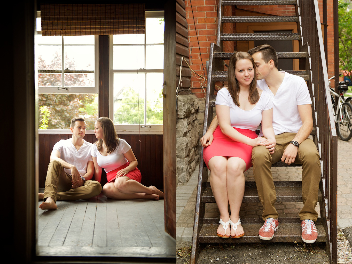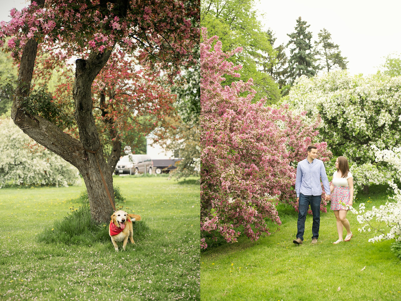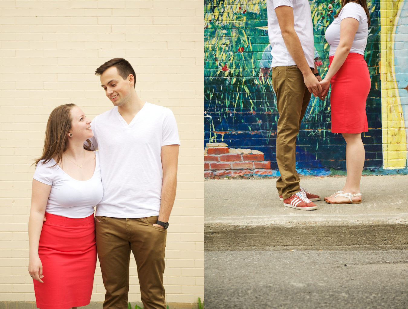 Steph and Lance are one more couple that I’ll be making the road trip back to Ottawa for their wedding in September, and I can’t wait! This engagement session had it all- blossoms on the trees, their dog Max that looks just like my dog, and plenty of good old fashioned love! There was even a kite but Lance wasn’t impressed with the idea of ‘pretending’ to fly it near the trees. At the end of our session, we stopped by their very first apartment and took some photos in front of the mural- I was loving all the colours!