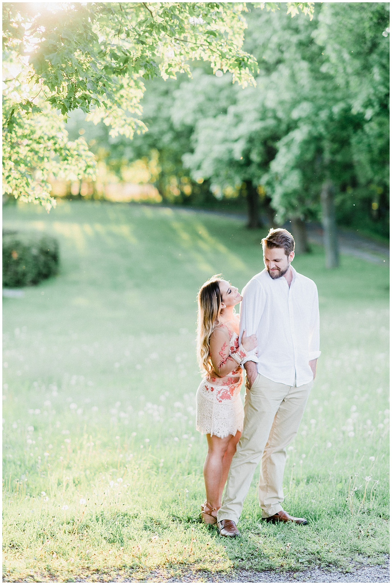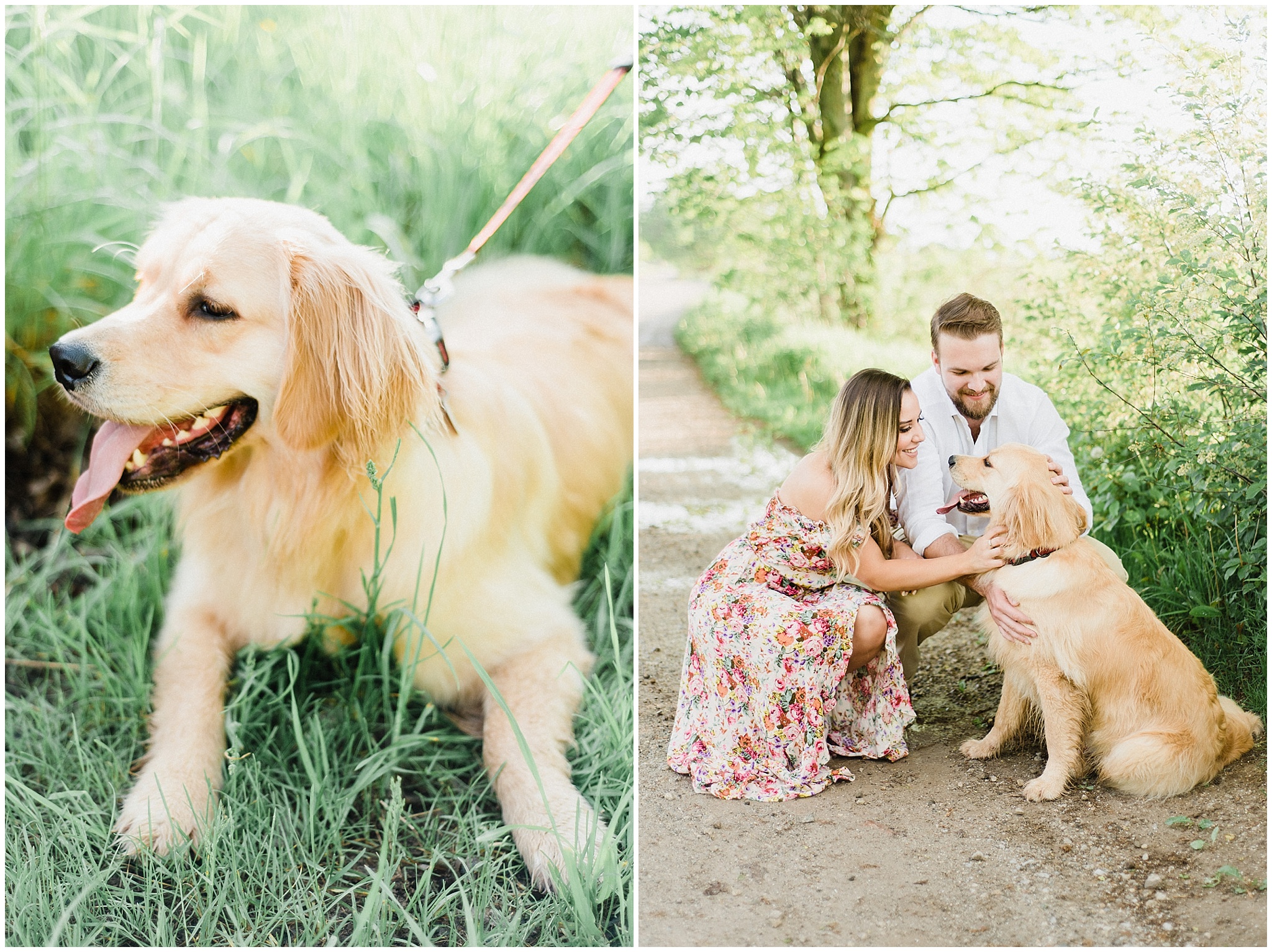 Louie, their golden retriever pup also came along, and we had Chiara’s mom there to help us wrangle him when he wasn’t in the photos. This is one little rule I have for these sessions: if your fur baby is coming, you need to have someone else be there to be their babysitter! They aren’t going to be in every photo, so it’s helpful to have someone else with us who can take your dog for a walk, drive them home, etc. I had a bulldog on a leash on my arm during almost an entire session once, and since then I got wise and made the ‘dog sitter’ thing a rule! I always love meeting my couples’ fur babies and they are always welcome at our sessions!