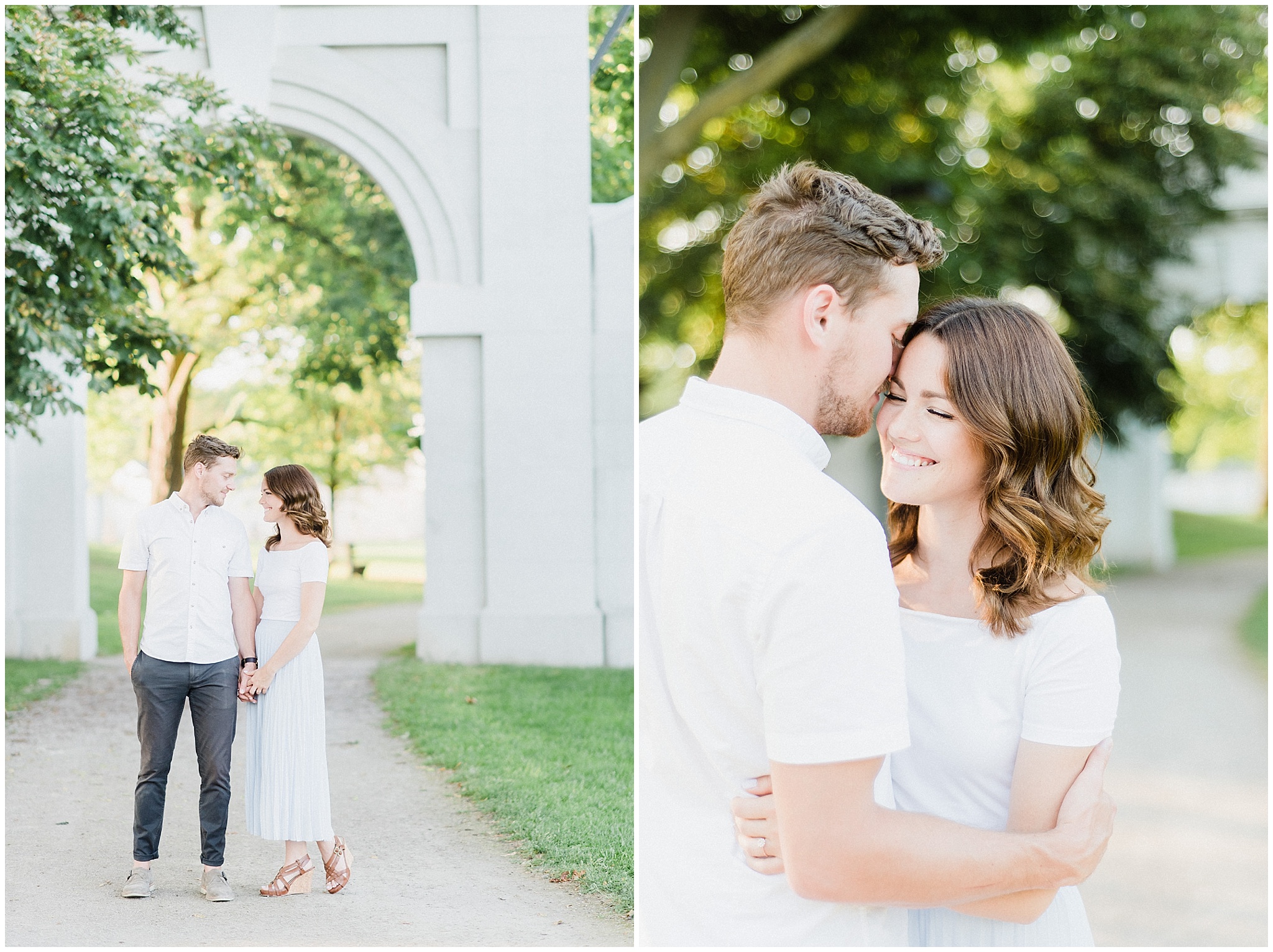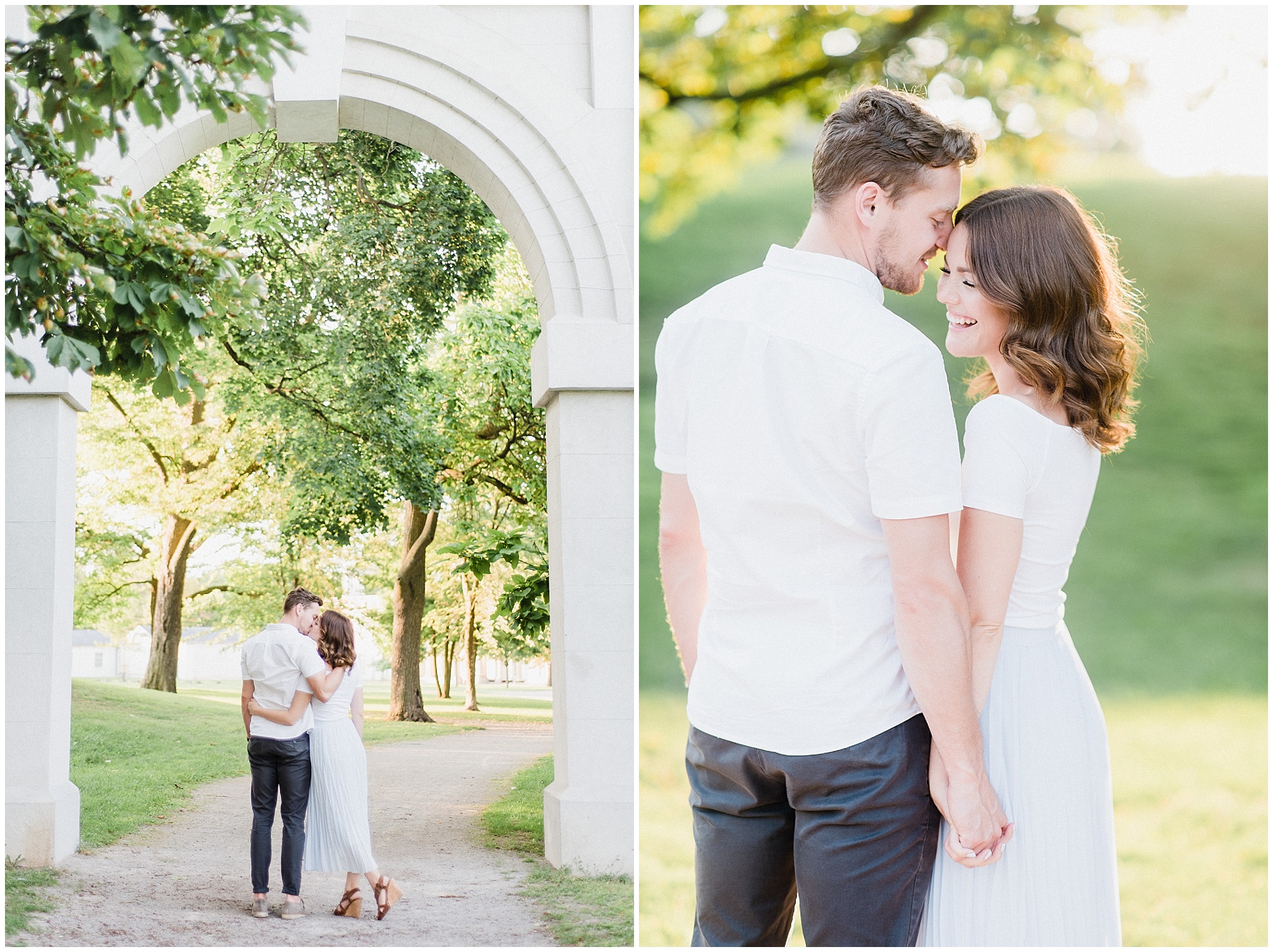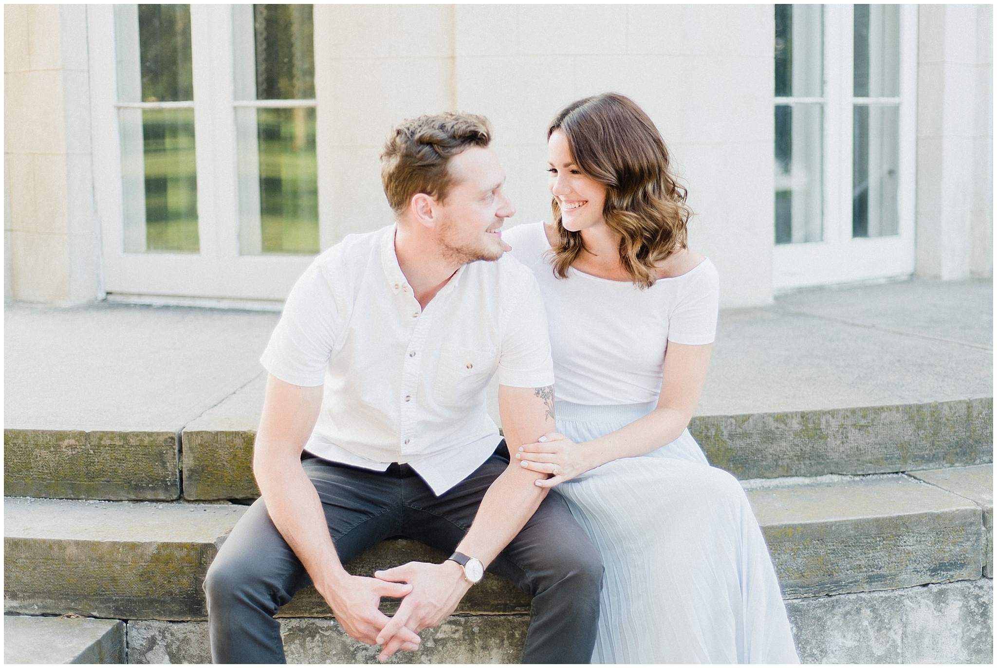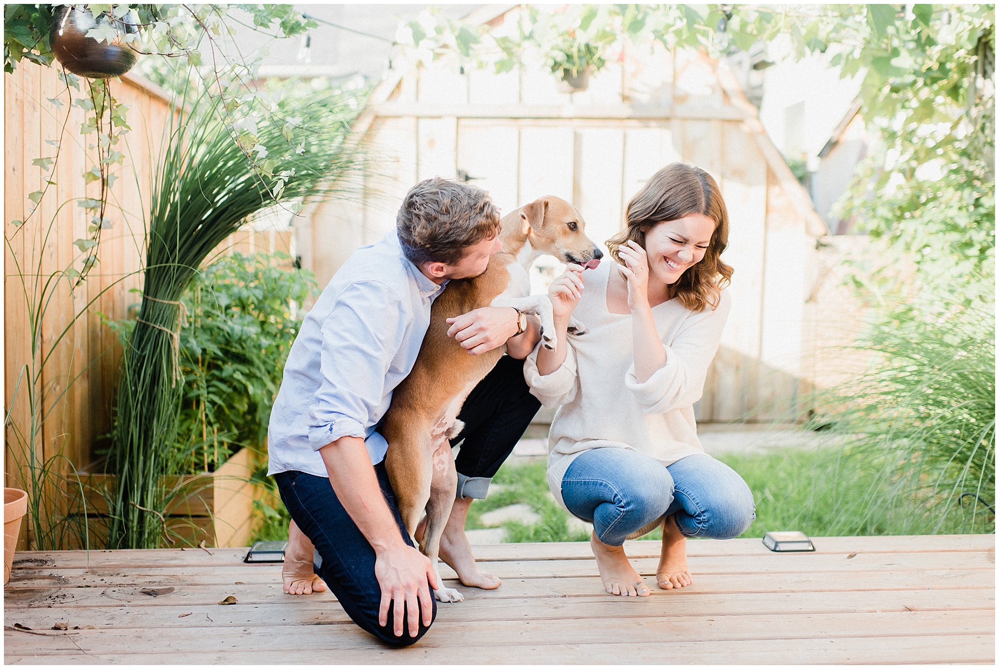 Dundurn Castle was the perfect backdrop for Deanne and Rob’s sweet summertime engagement session. The beautiful detailing, gorgeous arches, incredible light peaking through the trees, and white walls are a dream to shoot with. These guys are such a short drive away from here, so it’s practically in their neighbourhood (and it’s only like 10 minutes away for me too!) I popped by their place beforehand, to grab some shots of them with their adopted pup Bernie. He is my BFF and is such a gentle little soul.
