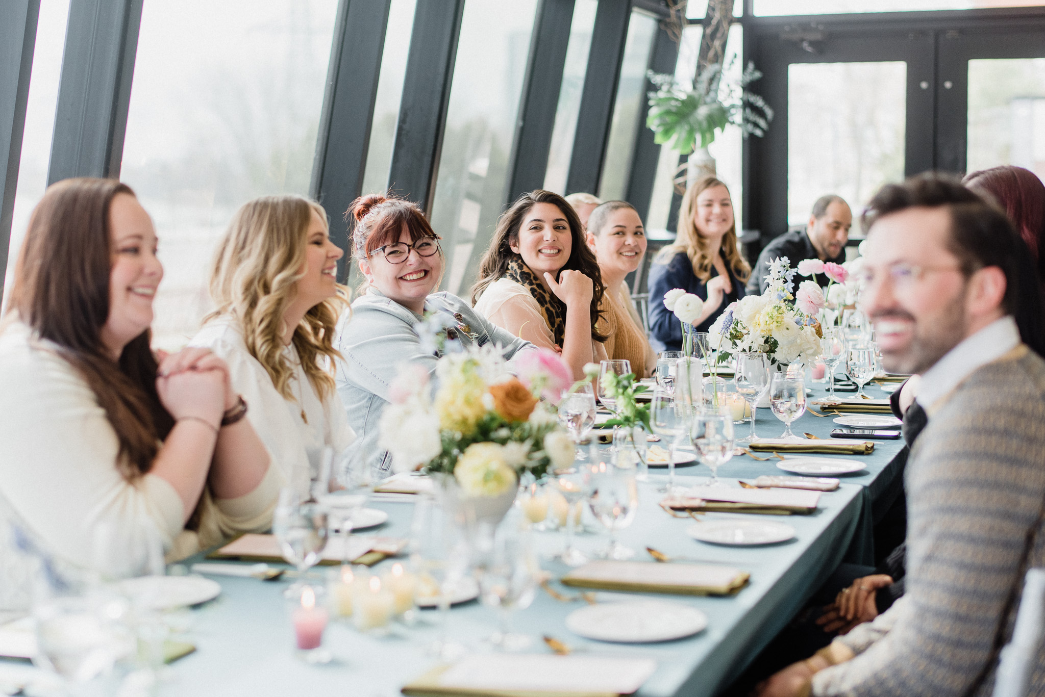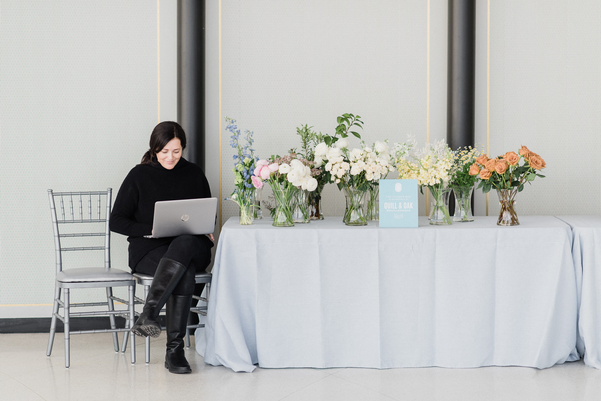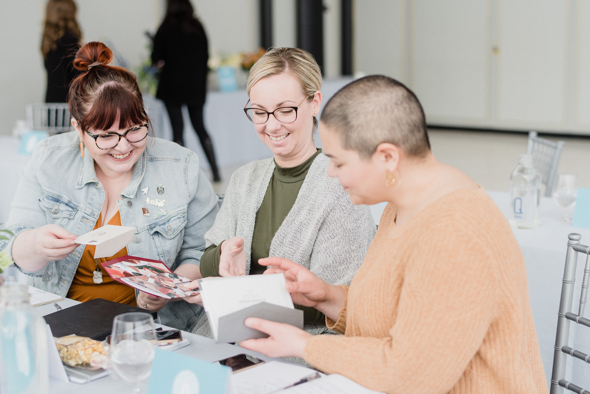 Attendees spent the morning in the bright and beautiful atrium at Spencer’s At The Waterfront, learning from the guest speakers, and getting hands on with styling in the afternoon. Spencer’s, which is a Pearle Events venue, served up an incredible three-course lunch with wine pairing. My floral pal Quill + Oak rocked the flower bar, and my fave album company Dekora supplied some sweet styling boards! See below for a complete list of vendors.