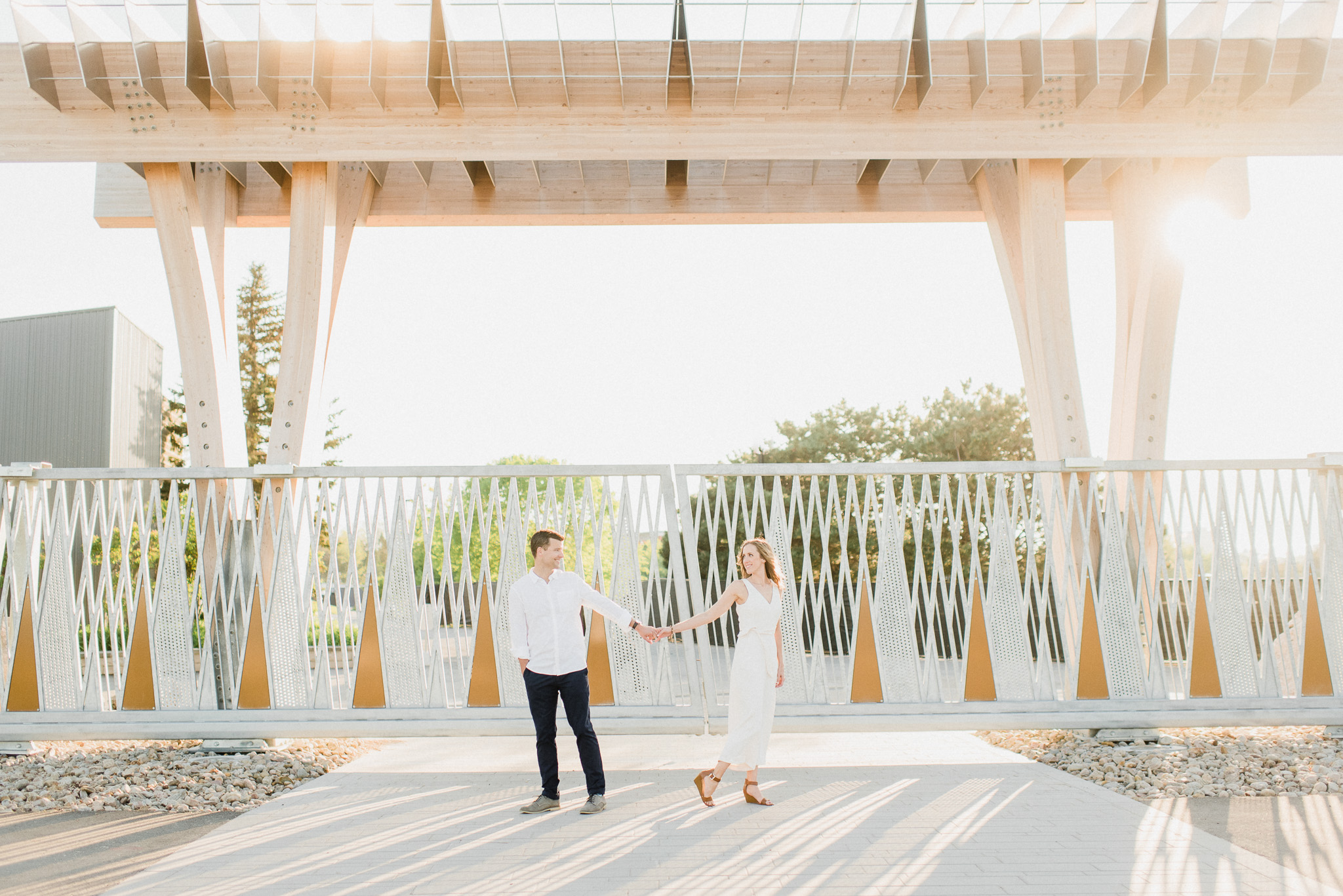 Michelle and Simon are to be wed later this year, in early September at a gorgeous Niagara vineyard. We spent an evening together this week on a trail that runs along Lake Ontario, with beautiful Toronto skyline views and tons of pretty sunlight beaming in! We had a pretty comical ambience surrounding us though, as the lakeside trail runs quite close to the Molson Amphitheatre and while we were shooting our session, a Slayer concert was getting going. It wasn’t exactly the most romantic music to set the tone, but it made for some good laughs and funny interactions with fans. I definitely can’t complain that this job is dull- there’s always somewhere new I get to explore, and new people to get to know!