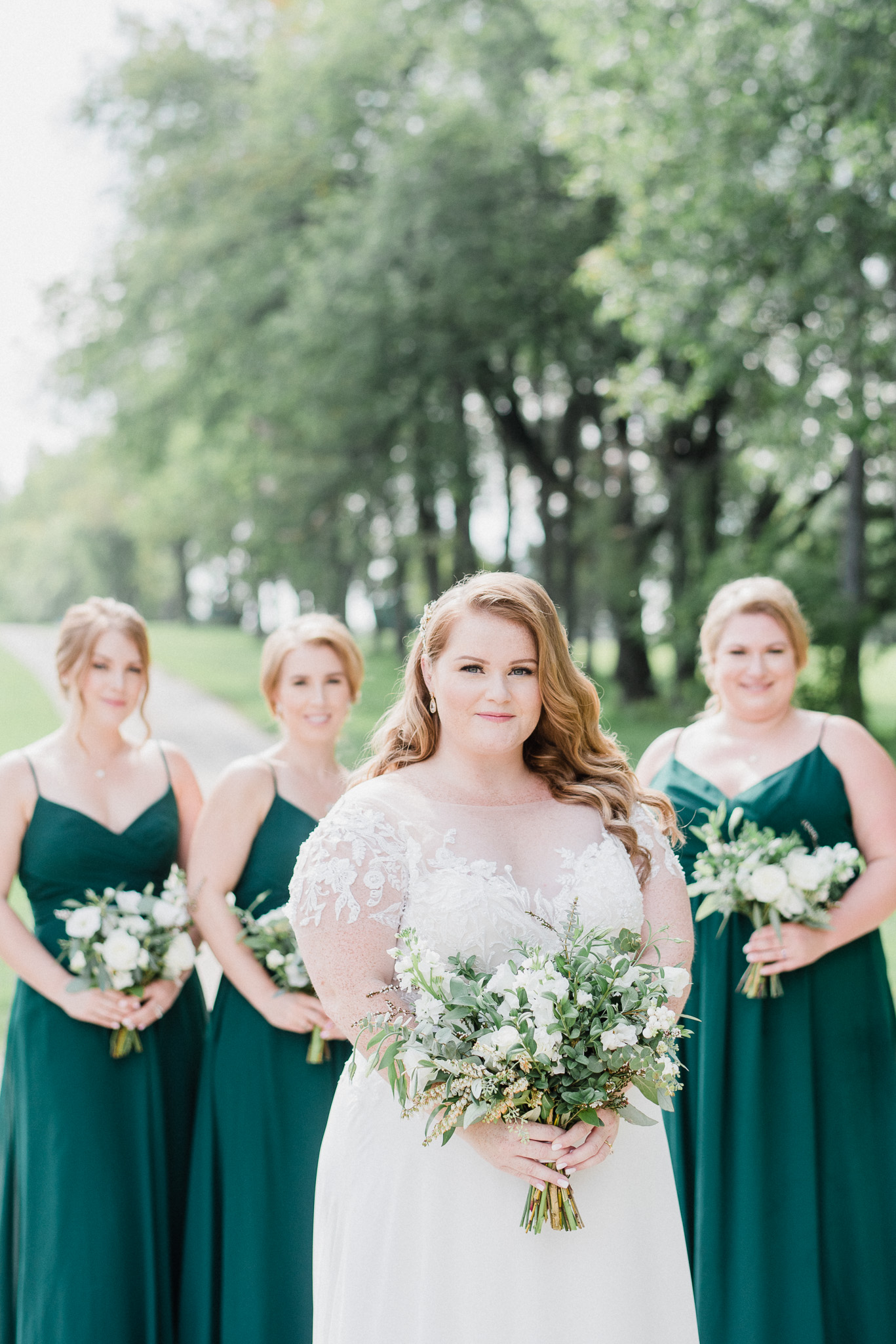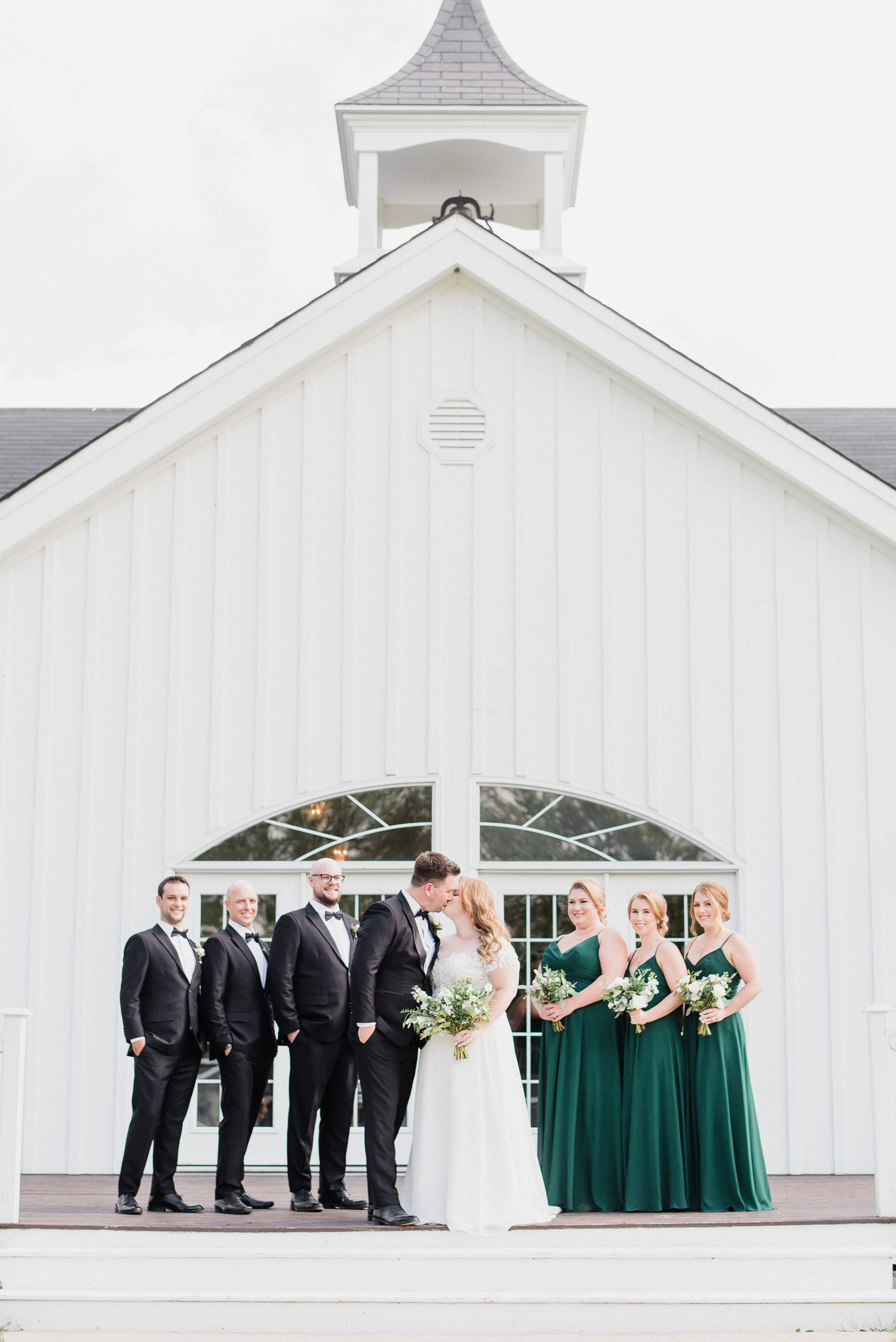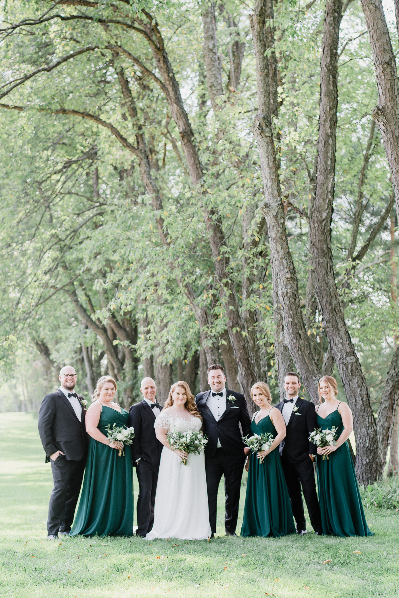 Venue: Tralee Wedding Facility, by Rural Roots Catering | Beauty: A Glow by Joan | Florals: Cedar & Stone | Cake: Crumb & Berry | Gown: Rebecca Ingram via Sophie’s Gown Shoppe Tuxedo: Tolo Clothier | Bridesmaids Gowns: Sorella Vita via Elizabeth’s Fashions |DJ: Johnny DJ Service | Boxwood Greenery Backdrop: Make Your Memories | Gold Crest: Designed by Plume Calligraphy, crafted by Straight Laser