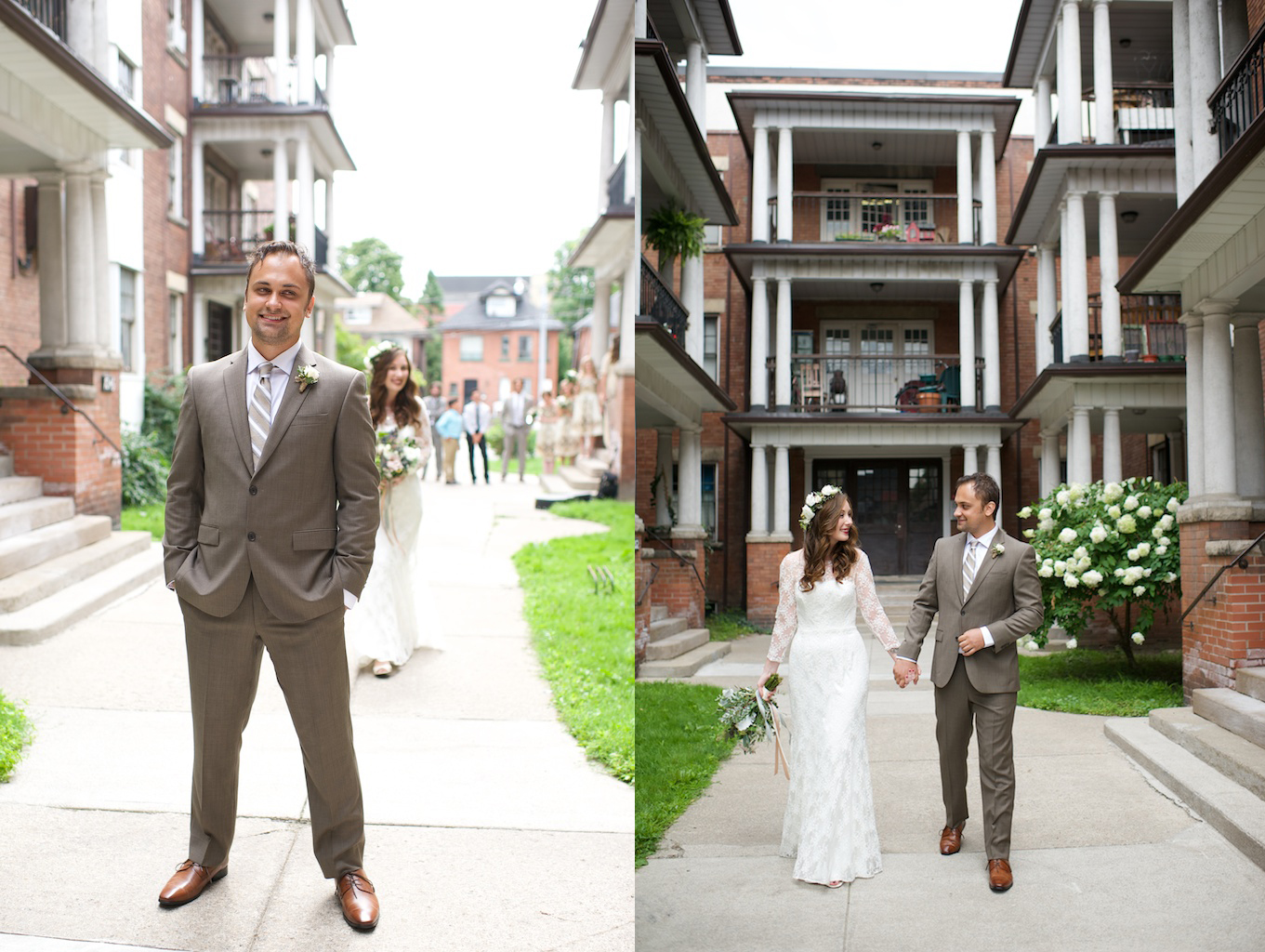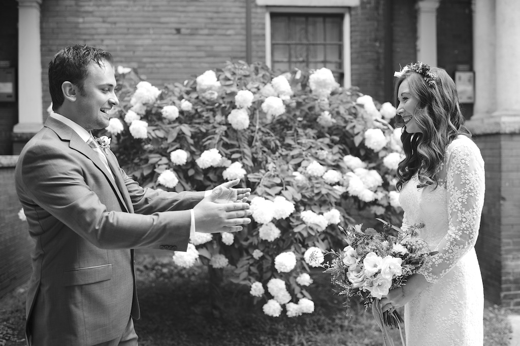 Illya and I decided we’d be together for the whole wedding day. We got ready in our apartment together with our entire wedding party. We then had a ‘First Look’ in the courtyard. Waking up in the morning with my husband to be and getting to spend the ENTIRE day with him was so special to me. The first look allowed us to get lots of great photos before the ceremony. Afterwards we had lots of time to spend with our family and friends. Looking back on the First Look I felt so much raw emotion and energy seeing Illya in our courtyard. I also still had so much excitement seeing him at the ceremony. It was like we got a two for one deal!
