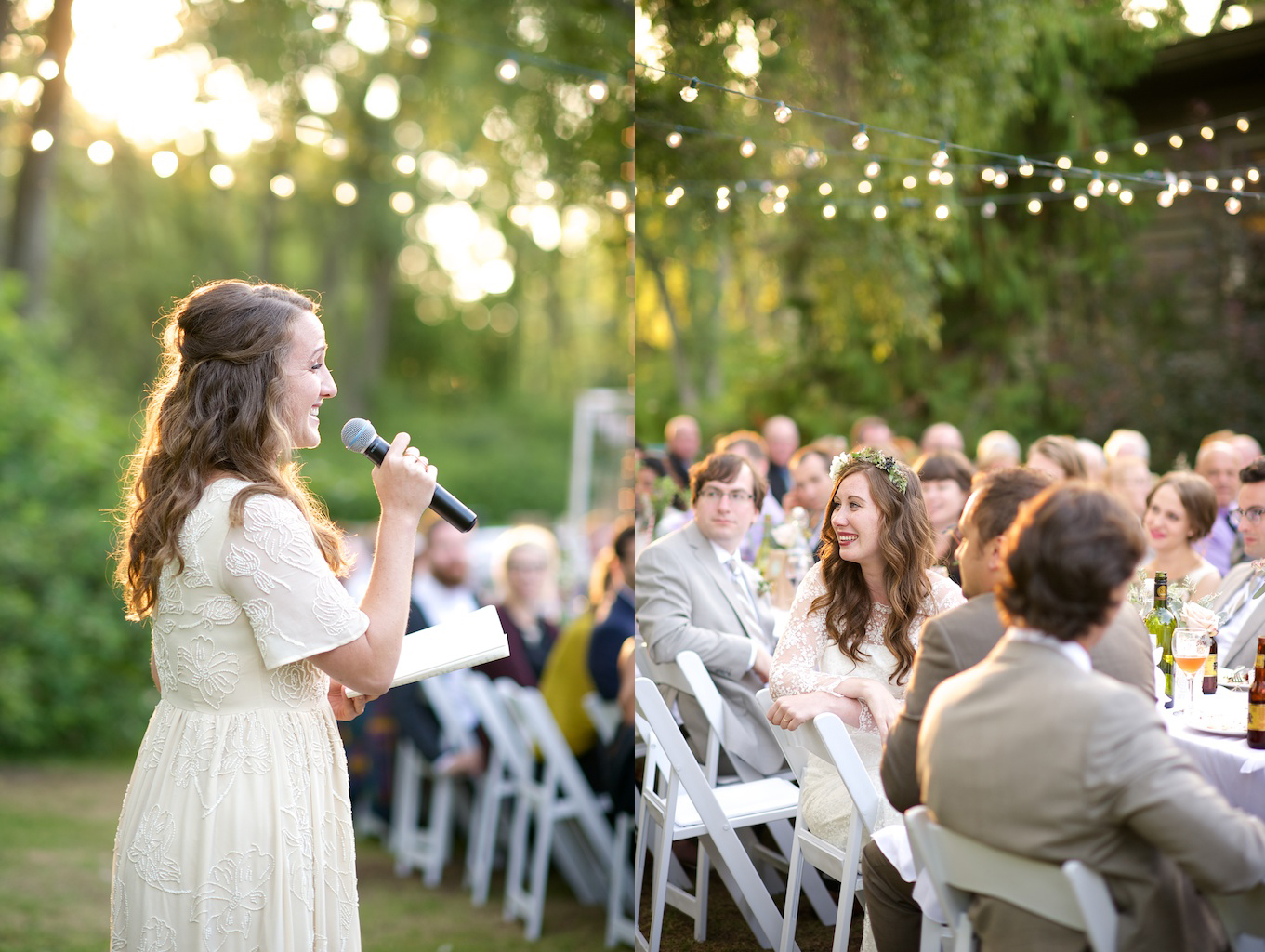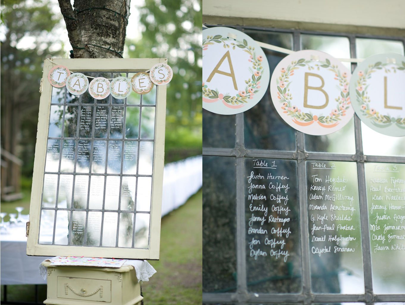 We definitely wanted some DIY projects on our wedding day. Our wedding party was full of a lot of really talented people and their help was immeasurable to making the day so wonderful. My bridesmaid and best friend Chelsey designed all of our invitations, menus, place cards & table numbers. My maid of honour and sister Amanda found an amazing old windowpane at a thrift store and wrote our seating plan on it. My bridesman Ben wrote us an original poem and made us wedding programs. Illya’s brother Adam, the best man, wrote us a Flight Of The Conchords inspired song for the ceremony. My bridesmaid Steph and her boyfriend Erik made our caramel popcorn party favours. Our good friend Andy created a signature cocktail for us, The Sammy Slammer, named after our flat-faced cat. Finally my sister, my mom and I scoured the entire GTA in search of vintage and craft beer bottles for our floral arrangements. We got a lot of our supplies from thrift stores. All of the paper for our signage was from The Paper Place. I also splurged a little bit and bought monogrammed garland and floral confetti from BHLDN. The personal touches were so meaningful to us and our guests really seemed to notice them and take them in.